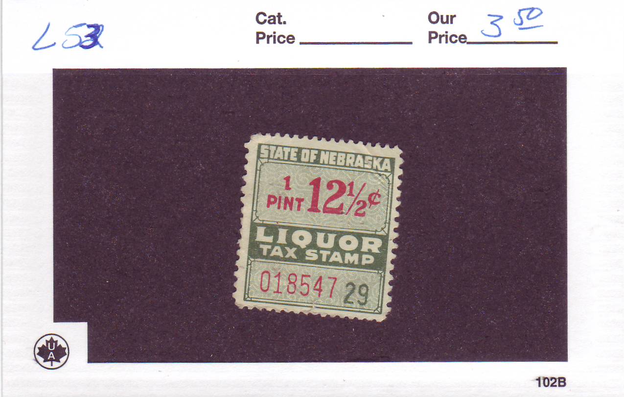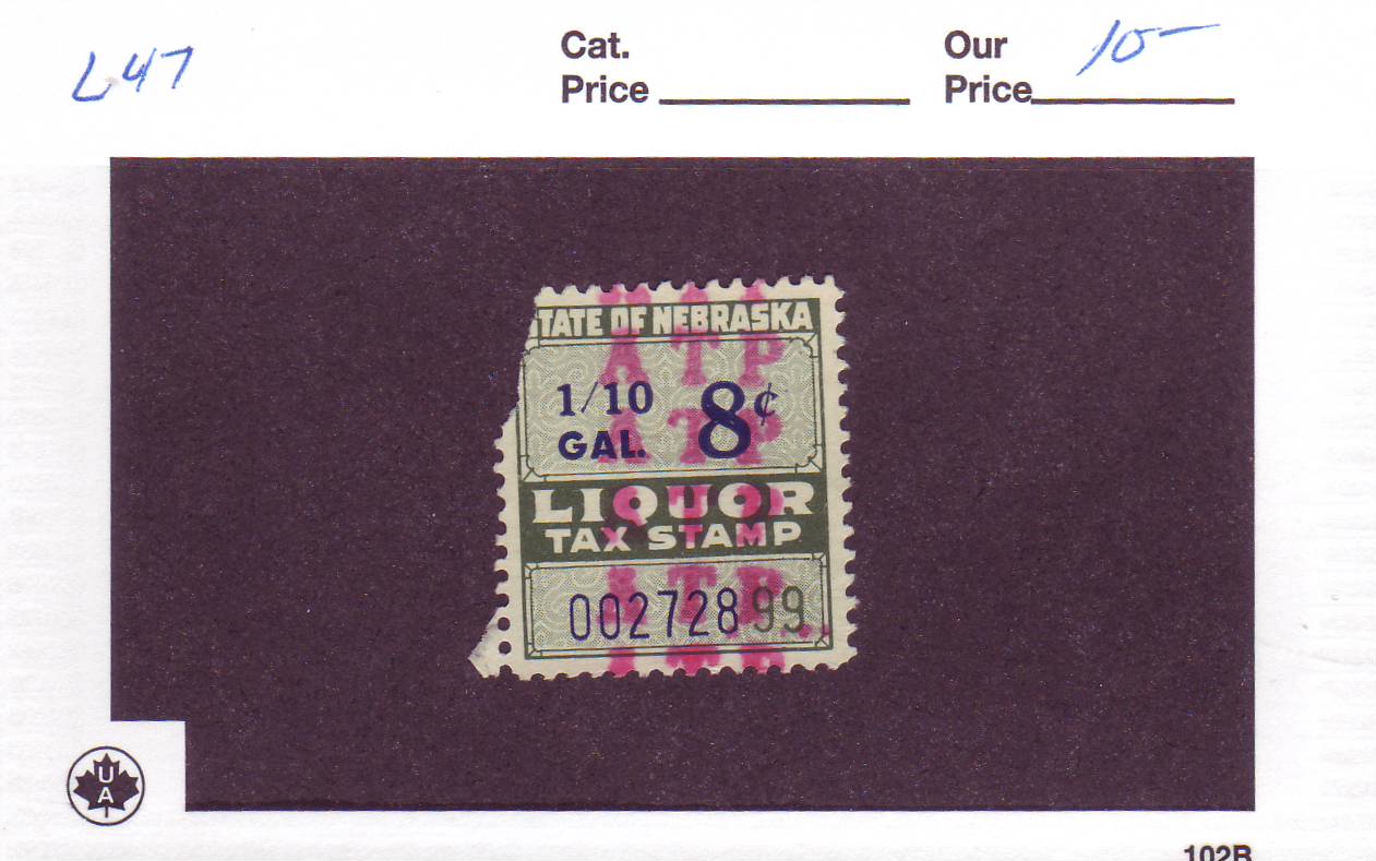| Nebraska: Liquor Tax Stamp, #L47. | Price: $5.00