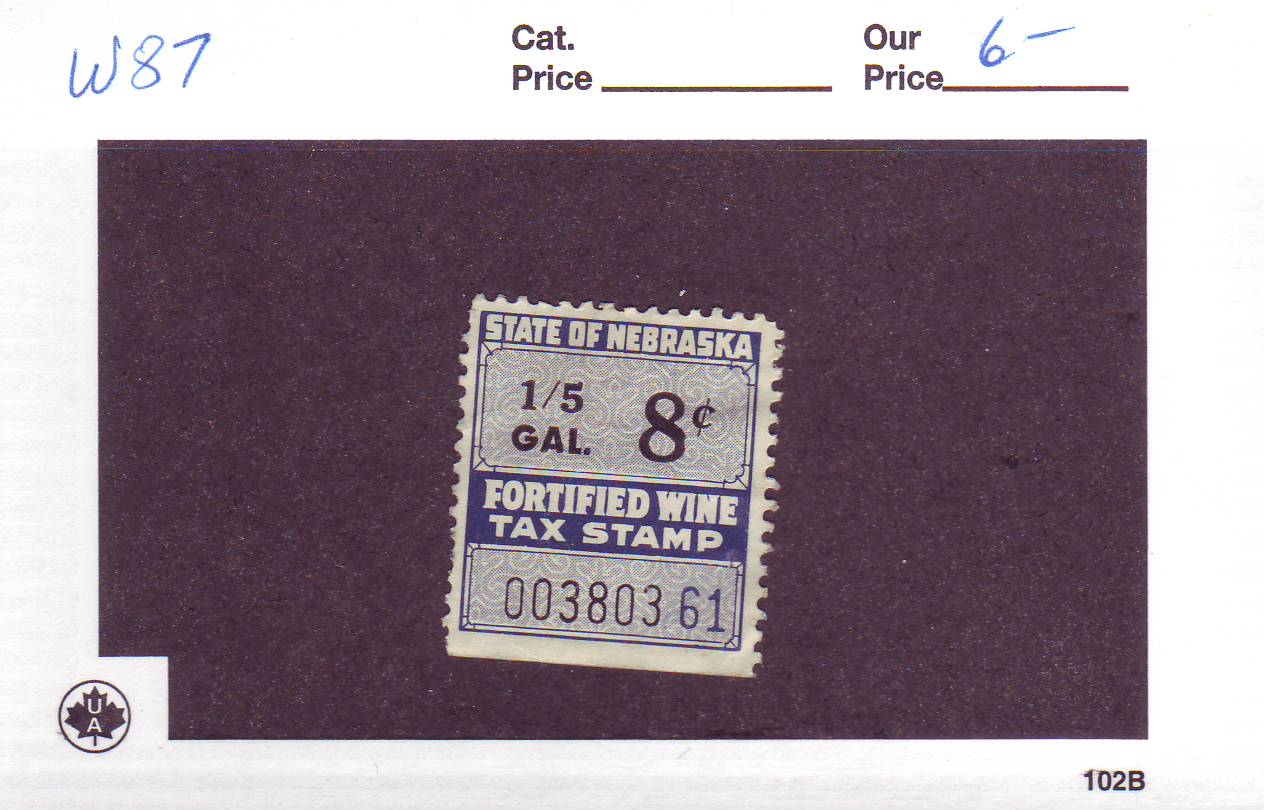| Nebraska: 8c 1/5 Gal Fortified Wine Tax Stamp, W87. | Price: $6.00