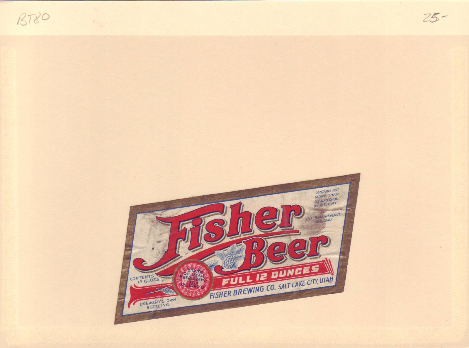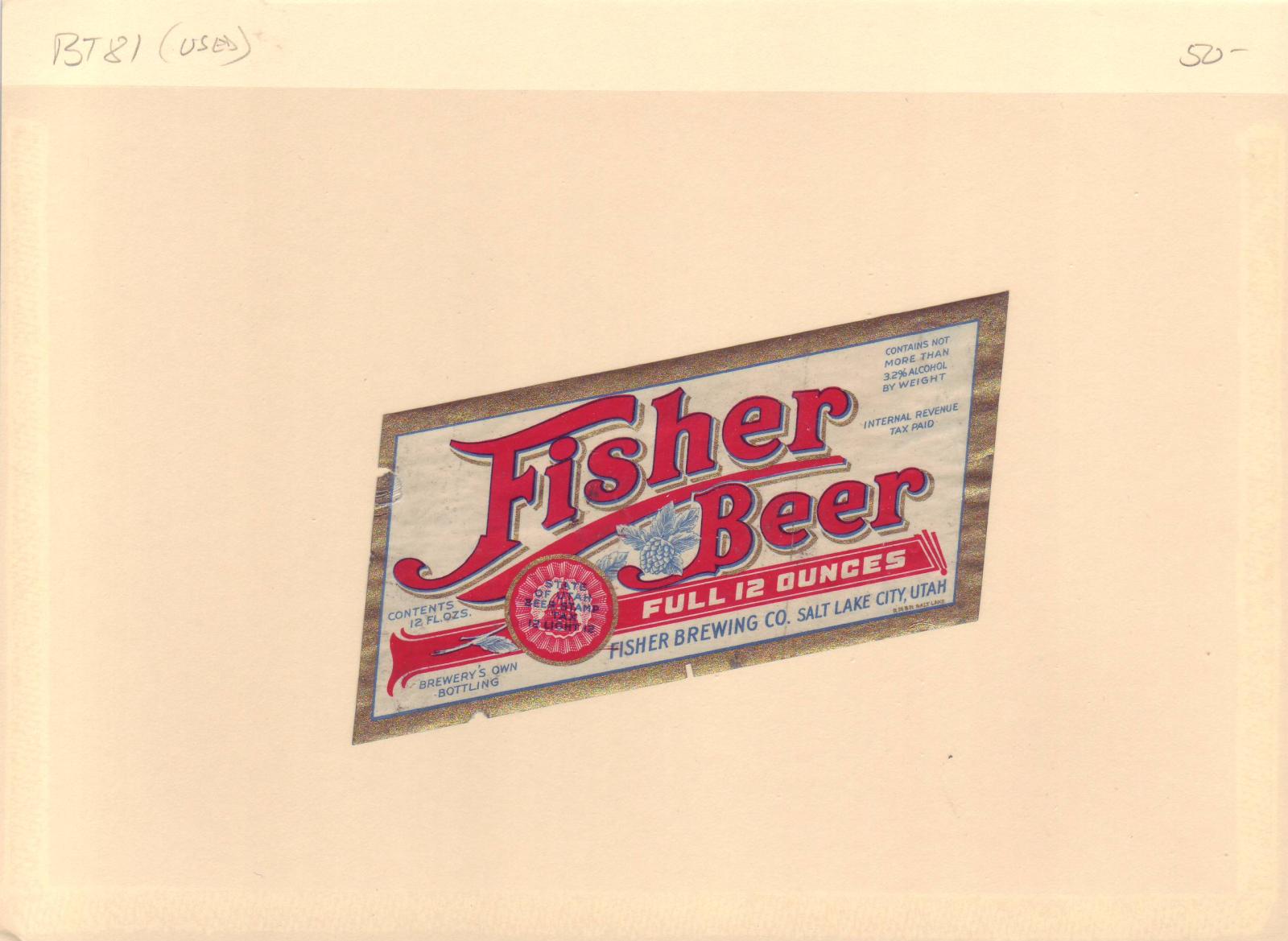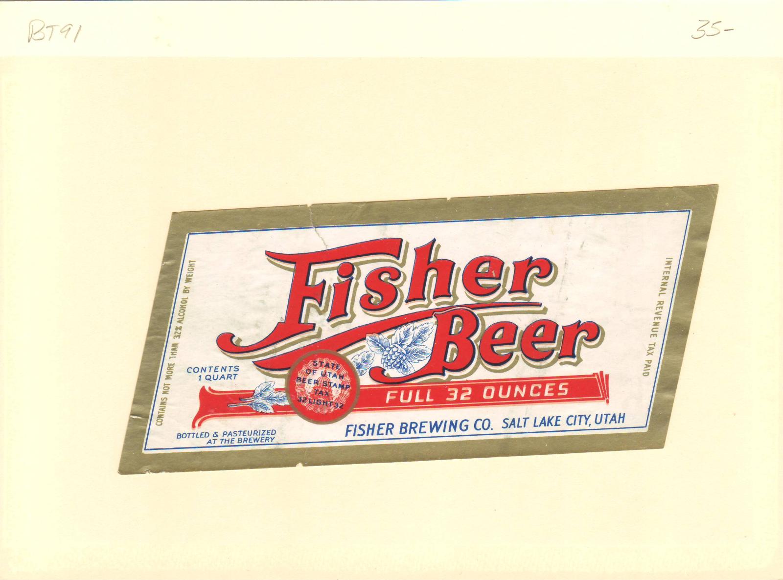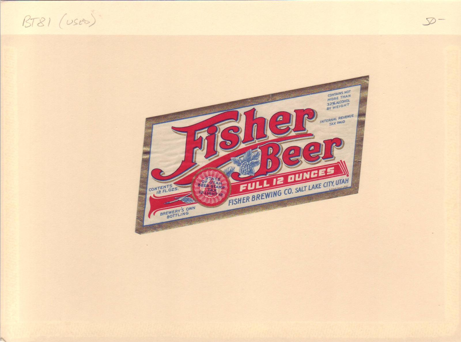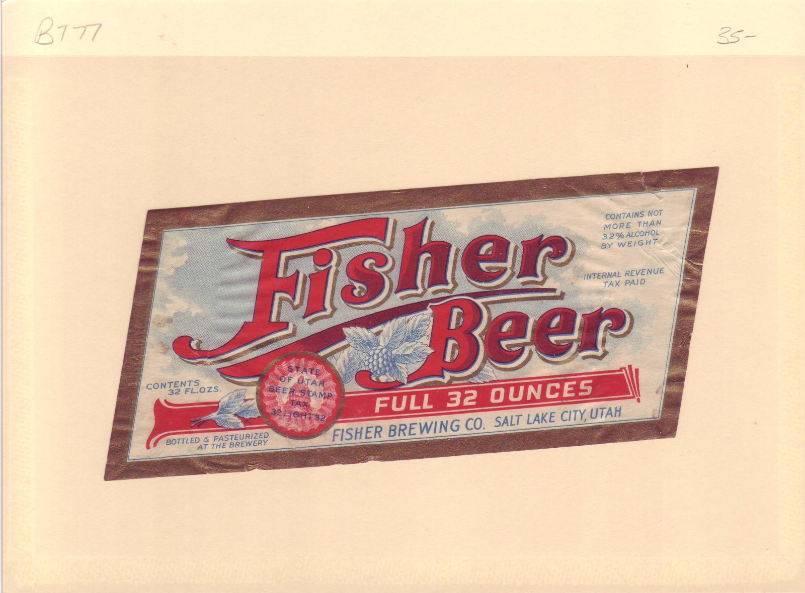 | Utah: Fisher Brewing Co, Beer Tax Stamp, #BL74. | Price: $20.00