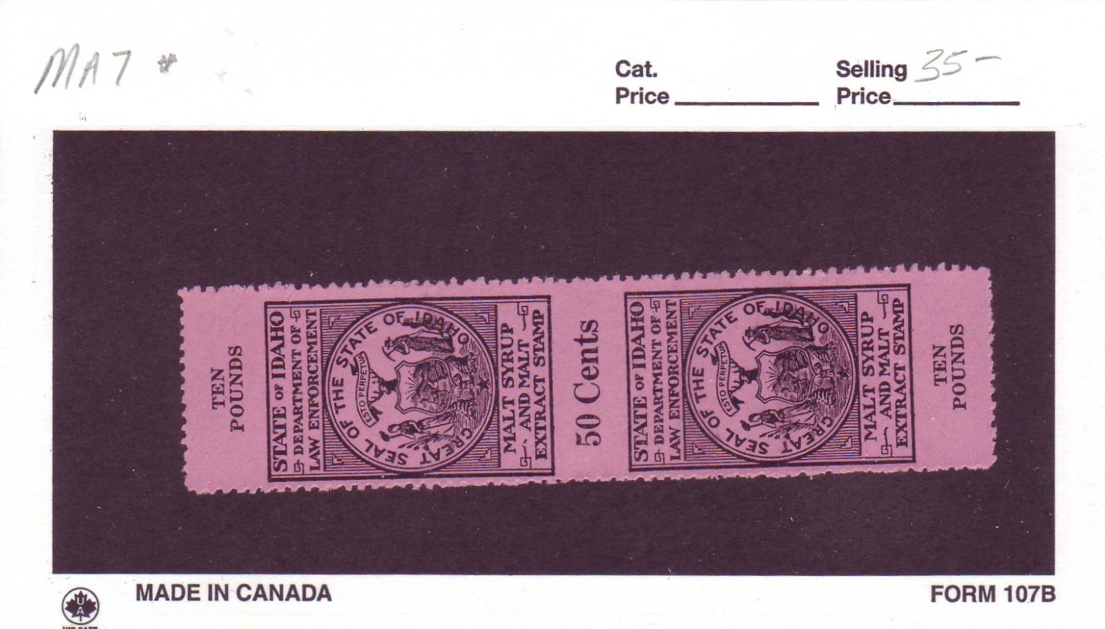 | Idaho: 50c Malt Syrup Tax Stamp, # MA7. | Price: $35.00