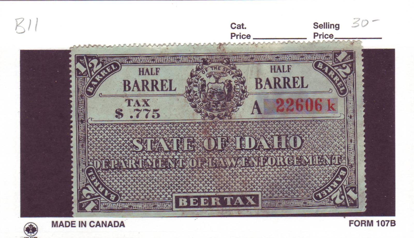 | Idaho: .775c Beer Tax Stamp, #B11. | Price: $30.00
