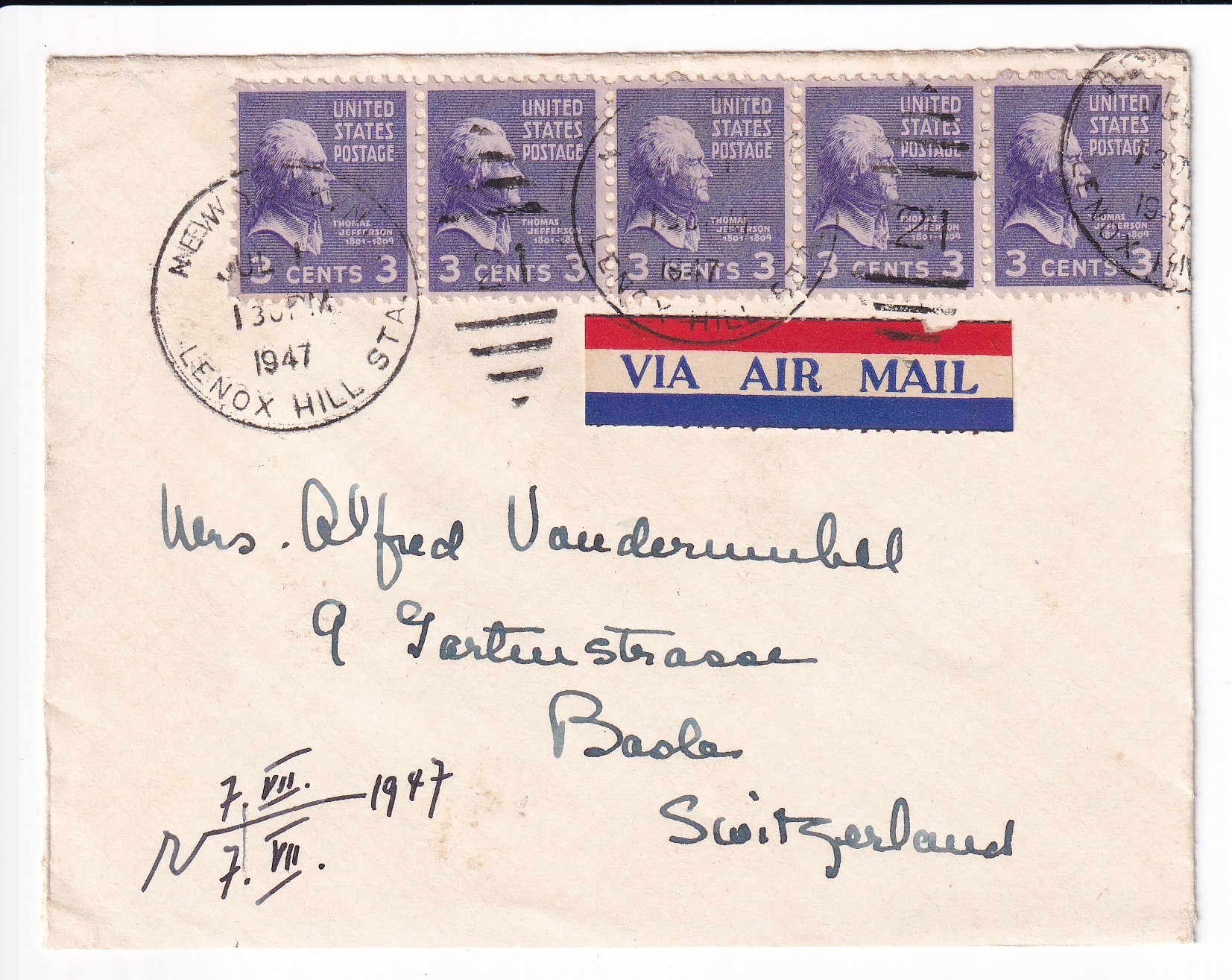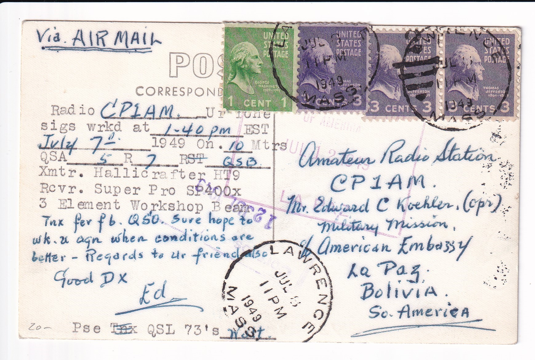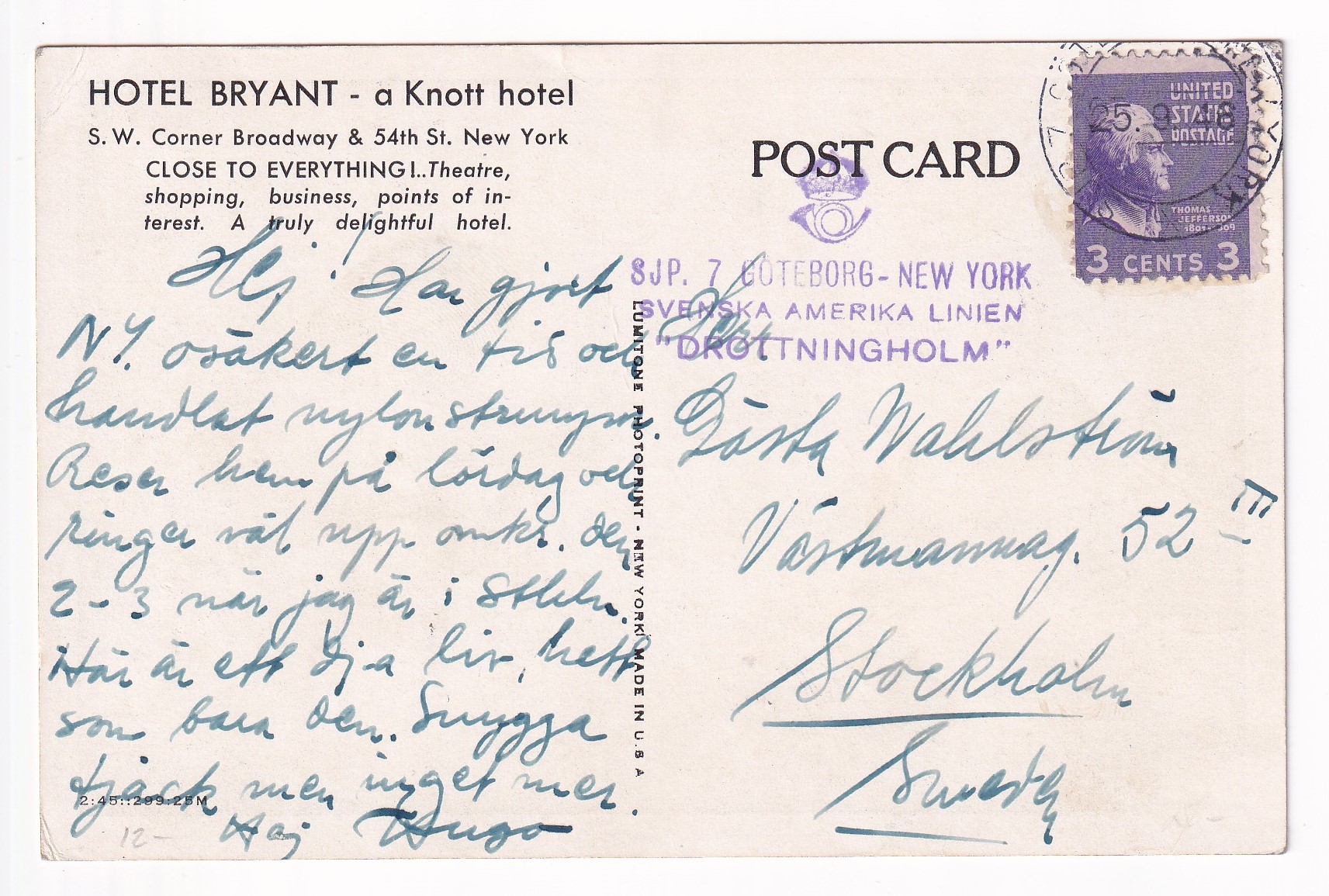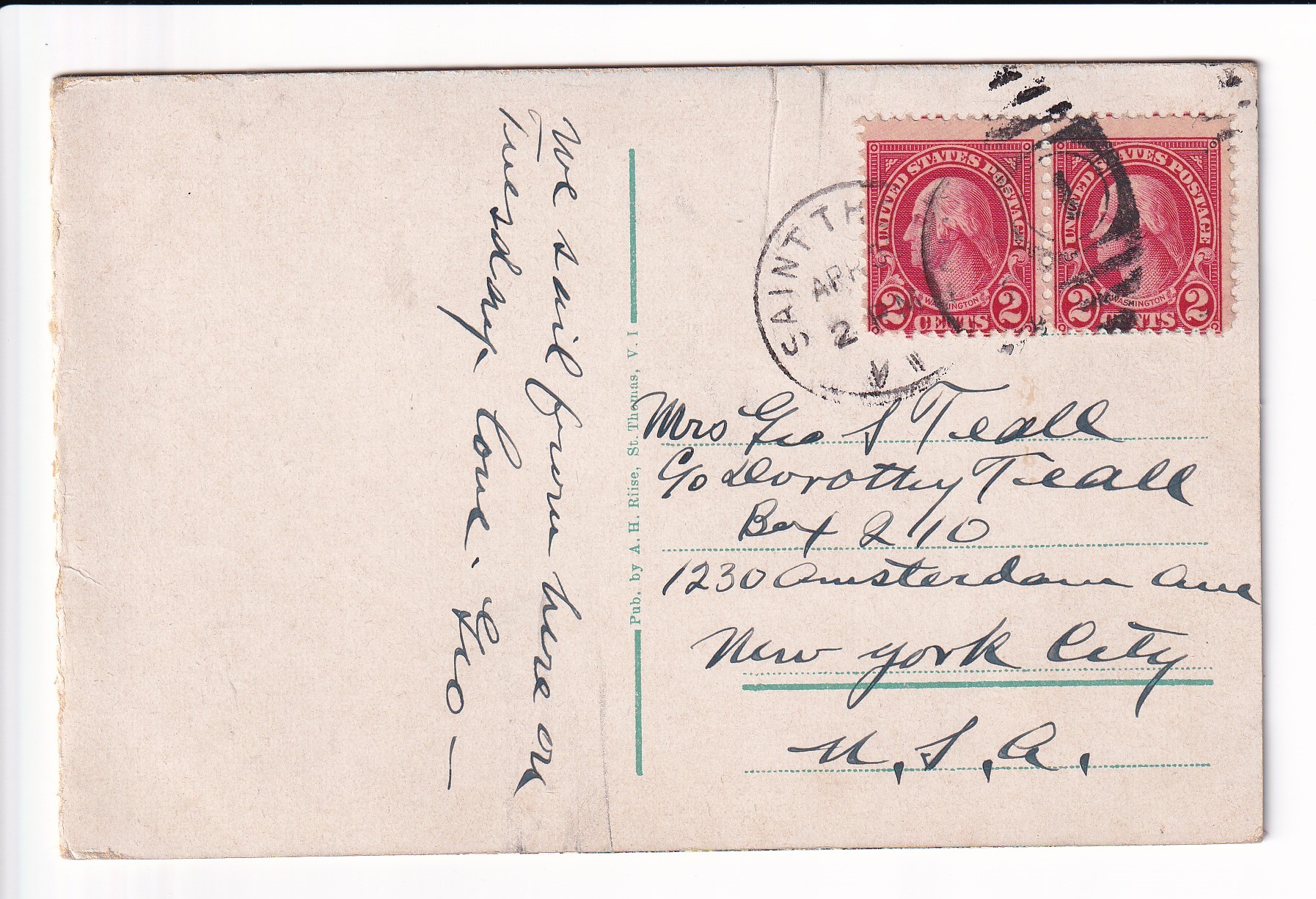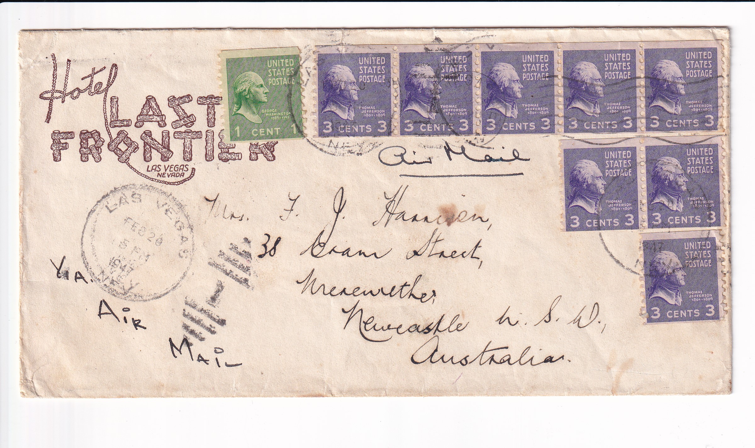 Covers :: United States Postal History Advertising: Union R.R. & Transportation St Louis, Mo to Boston, Ma. Price: $50.00 Item #65988 1c War Dept PSE Specimen, Sc #WO46, mint. Price: $40.00 Item #65991 3c War Dept PSE, Sc # UO36, mint. Price: $30.00 Item #65992 3c PSE Specimen, Sc #U58, mint. Price: $40.00 Item #65993 1925 New York, NY to Ventura, Ca Airmail Sc #C4 x 3. back stamped San Franicsco. Price: $40.00 Item #65995 1926 New York, NY to Ventura, Ca Airmail Sc #C4 x 3. back stamped San Francisco. Price: $25.00 Item #65996 1926 Boston, Ma to Pasadena, Ca Airmail, Postage Due. Price: $50.00 Item #65997 1926 New York, NY to San Francisco Airmail, solo Sc #C6 w/Letter. back stamped San Francisco. Price: $75.00 Item #65998 1926 New York, NY to Ventura Airmail Special Delivery Sc #C6 & 10c SD. back stamped San Francisco. Price: $50.00 Item #65999 193x Clinton Heights, Pa to Webster, MA Certificate of Mailing. Price: $10.00 Item #66059 1928 New York, NY to Nurnberg, Germany Airmail Express. Price: $12.00 Item #66060 1935 Washington DC Present Roosevelt Welcomes Adm Byrd & Men, Hand Colored Cachet. Price: $50.00 Item #66062 1935 Midway Island to Philadelphia, Pa. Price: $150.00 Item #66067 1929 Saint Thomas, Virgin Islands to Unadilla, NY. Price: $25.00 Item #66068 1882 Wells Fargo, Seattle, Washington Territory to Darby Center, VT via Sidney & Ogden RPO w/Letter. Price: $150.00 Item #66332 1990 Monroe, La FDC of 40c Chennault Definitive signed by Roland Sperry (A Flying Tiger). Price: $30.00 Item #66333 1933 Portland, Or to Sacramento, Ca 1st Flight signed by Pilot Alan Smith on Reverse. Price: $25.00 Item #66339 1929 Portland, Or to Poste Restante, Curacao via 1st Flight Cristobal, CZ to Curacao. back stamped Cristobal & Curacao. Price: $75.00 Item #66342 1928 Miami, Fl to Melbourne, Australia via 1st Flight to Atlanta, Ga, RTS Unclaimed. back stamped New York San Francisco & Melbourne. Price: $75.00 Item #66343 1935 Philadelphia, Pa to Honolulu, Hawaii 1st Trans-Pacific Flight solo 25c 4th Bureau Issue. back stamped Honolulu. Price: $35.00 Item #66345 1935 Honolulu, Hawaii to San Francisco, Ca to Philadelphia, Pa 1st Clipper Flight Special Delivery. Price: $150.00 Item #66346 1935 Honolulu, Hawaii to San Francisco, Ca 1st Clipper Flight Special Delivery. back stamped San Francisco. Price: $150.00 Item #66347 1947 San Jose to San Jose, Ca 3c Prexie Bi-sect. Price: $25.00 Item #66352 1845 Mineral Piont, Wisconsin Territory to New York, NY Folded lettter. Price: $150.00 Item #66353 1937 Miami, Fl to Hong Kong Pacific Clipper. 1st Passenger Service of the "Hong Kong" Clipper. Price: $300.00 Item #66385 1969 Barrow - Spitsbergen, AK British Trans-Arctic Expedition signed by Sqd Leader. Price: $30.00 Item #66387 1939 3c Baseball FDC Cooperstown, NY cacheted. Price: $40.00 Item #66388 1939 3c Baseball FDC Cooperstown, NY cacheted. Price: $40.00 Item #66389 1939 3c Baseball FDC Cooperstown, NY cacheted. Price: $35.00 Item #66390 1939 3c Baseball FDC Cooperstown, NY cacheted. Price: $40.00 Item #66392 1832 Columbus, Ga to Hamburg, South Carolina Folded Letter. Price: $200.00 Item #66404 Stampless: 184x Washington City to Cleveland, OH. Price: $25.00 Item #66405 194x Presidio to Oroville, Ca Shipping Tag w/ 5c & 30 c Prexie. Price: $25.00 Item #66406 1950 Greenville, TN to Drexel Hills, Pa Missent to Bremen, Germany solo 3c Prexie. back stamped Bremen. Price: $25.00 Item #66423 1950 Camden to Camden, NJ solo 3c Prexie Officially Sealed (Damaged by Equipment). Price: $35.00 Item #66424 1953 Long Beach, Ca to Pretoria, South Africa Airmail Prexies. back stamped Glendale. Price: $25.00 Item #66425 1907 Jamestown Exposition, Norfolk, Va to Rutland, Vt Expo Canx. Price: $25.00 Item #66452 1952 USS Wedderburn DD-684 to Los Alamitos, Ca Registered Airmail 3c Prexies x 28, 1c Prexie & 6c Cargo. back stamped USS Wedderburn & Los Alamitos. Price: $25.00 Item #66456 1953 Illinois to Litton, Germany Russian Zone Airmail 3c Prexie Horizontal Line Pair. Price: $25.00 Item #66457 186x Wells Fargo Mok Hill to San Andres, Ca. Price: $125.00 Item #66462 1893 Wells Fargo to Stockton, Ca. Price: $30.00 Item #66463 1871 Wells Fargo San Francisco, Ca to New York, NY via Overland Mail w/Letter. Price: $75.00 Item #66464 186x Wells Fargo Jamestown to San Francisco, Ca. Price: $75.00 Item #66465 1873 Wells Fargo Kansas City, Mo to Meadville, Pa. Price: $35.00 Item #66466 186x Wells Fargo New York, NY to San Francisco, Ca via Overland Mail. Price: $100.00 Item #66467 186x Wells Fargo Sacramento to Yreka City, Ca. Price: $55.00 Item #66469 1890 Wells Fargo Stockton to San Francisco, Ca. Price: $50.00 Item #66470 187x Wells Fargo San Francisco t Barry Vale, Ca. Price: $40.00 Item #66472 Advertising: 192x Cremo Cigars, Bethlehem to Bethlehem, Pa. Price: $30.00 Item #66496 Advertising: 186x Patterns & Dress Making, New York, NY to Wisconsin w/Enclosures. Price: $100.00 Item #66497 Advertising: 1941 Village Blacksmith Hand Made Butcher Knives & Tool, Watertown, Wis solo 2c Prexie. Price: $30.00 Item #66498 1887 Gettysburg, Pa to USS Omaha, Yokohama, Japan. back stamped Baltimore Transit, Washington DC, Yokohama. Price: $195.00 Item #66508 1947 La Cross, Wis to Wheaton, IL solo 1 1/2c Prexie, 4th Class Mail. Price: $35.00 Item #66510 Advertising: 1954 New York Tribune to Tucson, AZ Airmail 3c Prexie & 3c Prexie Horizontal Coil. Price: $10.00 Item #66522 1954 Victoria, British Columbia to Seattle, Wa 3c Prexie Horizontal Coil & 10c Postage Due. Price: $10.00 Item #66523 1952 Tyler, Tx to St Louis, Mo 75th Anniv of Cotton Belt Route 3c Prexie Perfin. Price: $10.00 Item #66524 1953 Whittier, Ca to Dallas, Tx Special Delivery 3c Prexie x 2 & 20c Special Delivery. back stamped Dallas. Price: $20.00 Item #66525 Advertising: 1953 Du Quesnay Motion Pictures, El Paso to Dallas, TX 3c Prexie. Price: $12.00 Item #66527 1952 Boston, Ma to Geneva, Switzerland Airmail 3c Prexie Horizontal Coil x 5. Price: $15.00 Item #66528 1951 Guilford to 