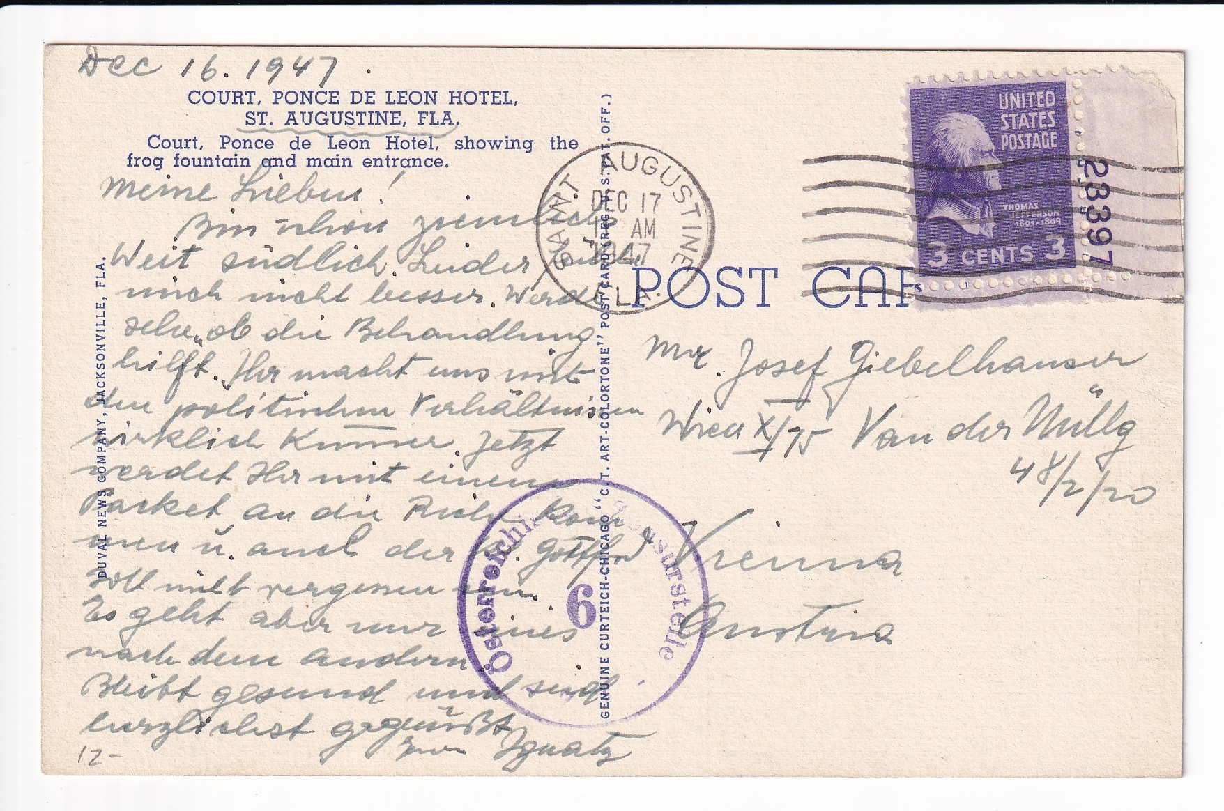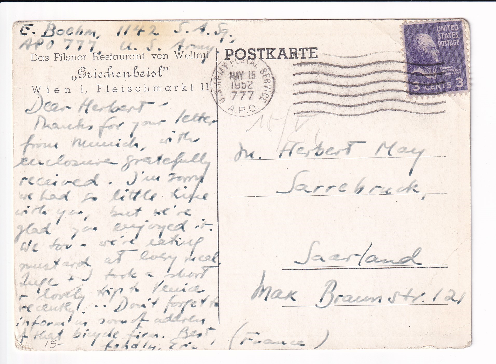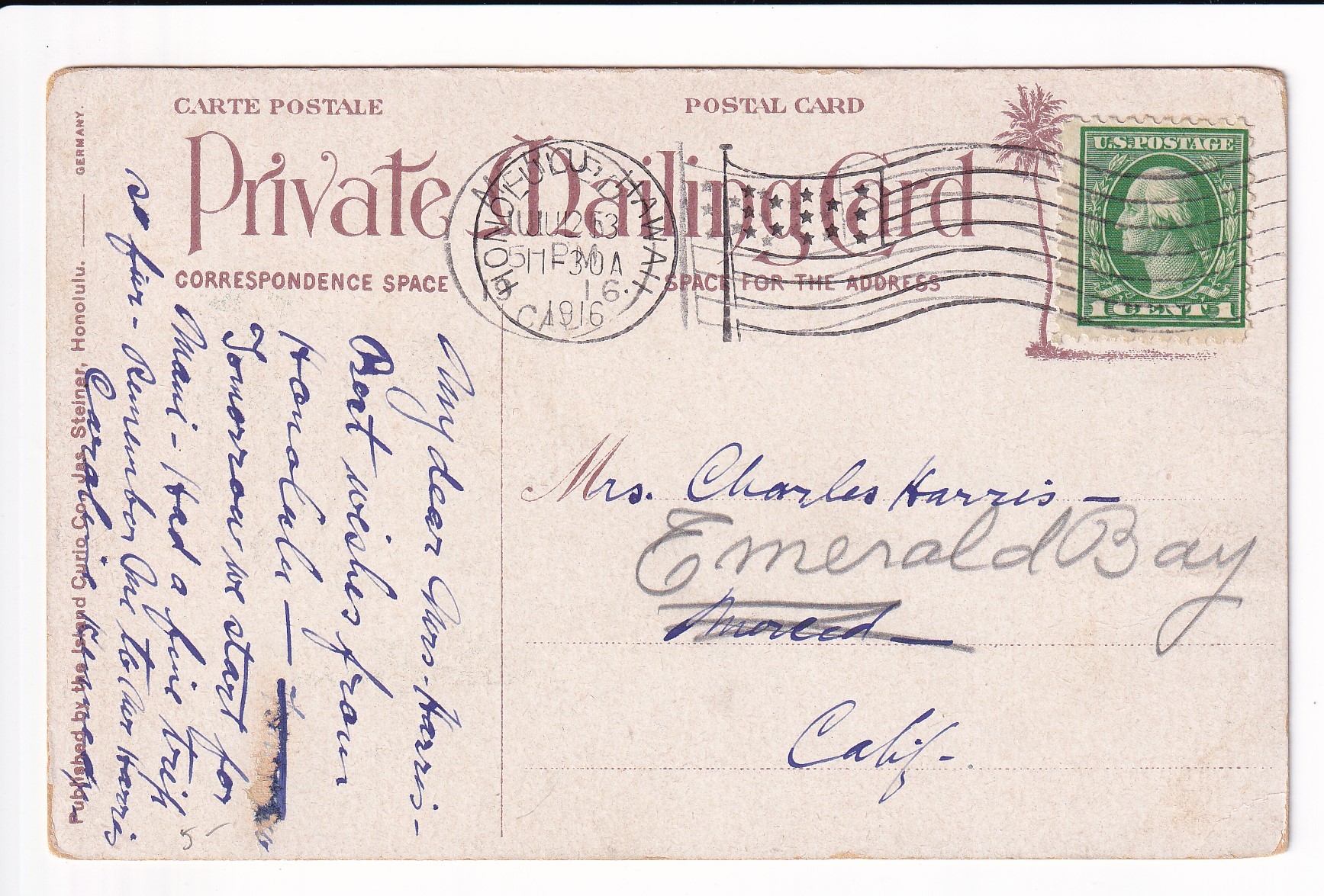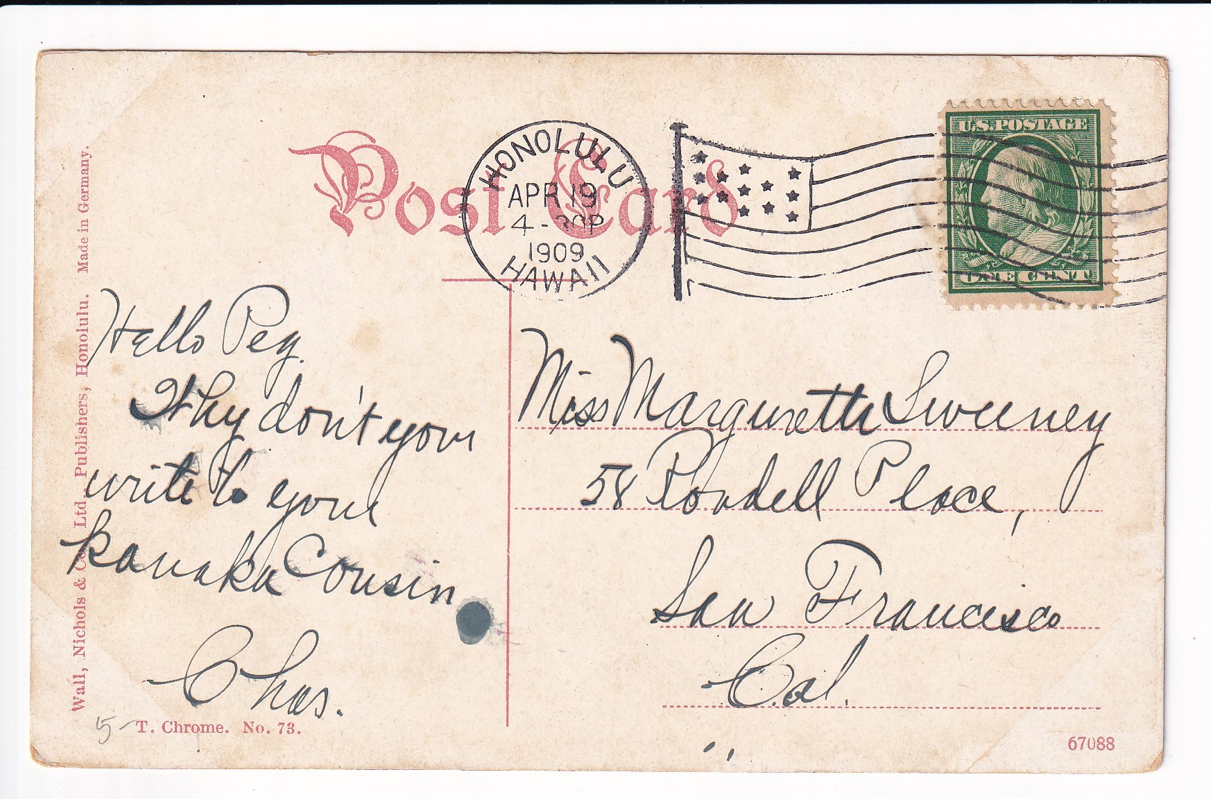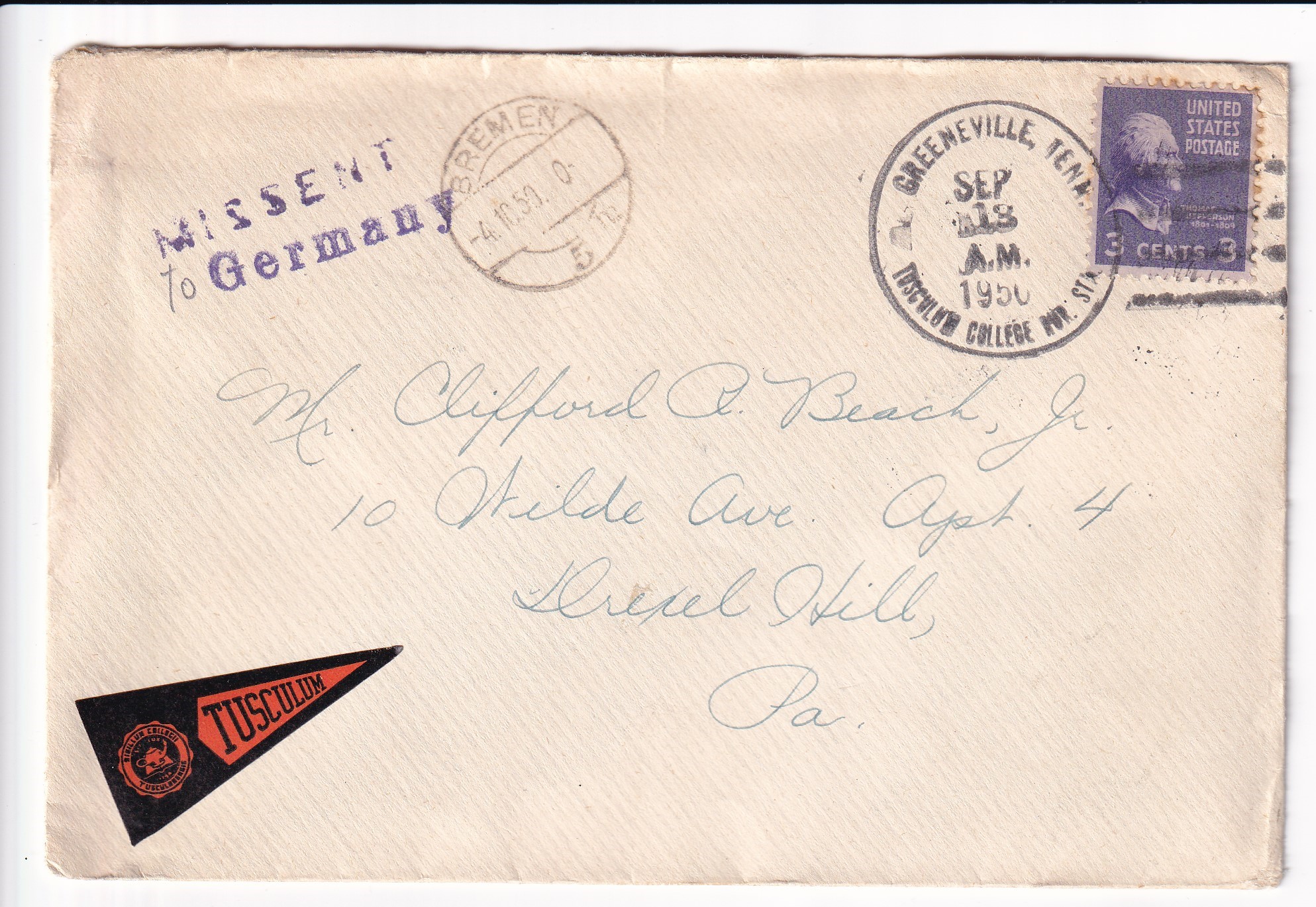Covers :: United States Postal History Advertising: Union R.R. & Transportation St Louis, Mo to Boston, Ma. Price: $50.00 Item #65988 1c War Dept PSE Specimen, Sc #WO46, mint. Price: $40.00 Item #65991 3c War Dept PSE, Sc # UO36, mint. Price: $30.00 Item #65992 3c PSE Specimen, Sc #U58, mint. Price: $40.00 Item #65993 1925 New York, NY to Ventura, Ca Airmail Sc #C4 x 3. back stamped San Franicsco. Price: $40.00 Item #65995 1926 New York, NY to Ventura, Ca Airmail Sc #C4 x 3. back stamped San Francisco. Price: $25.00 Item #65996 1926 Boston, Ma to Pasadena, Ca Airmail, Postage Due. Price: $50.00 Item #65997 1926 New York, NY to San Francisco Airmail, solo Sc #C6 w/Letter. back stamped San Francisco. Price: $75.00 Item #65998 1926 New York, NY to Ventura Airmail Special Delivery Sc #C6 & 10c SD. back stamped San Francisco. Price: $50.00 Item #65999 193x Clinton Heights, Pa to Webster, MA Certificate of Mailing. Price: $10.00 Item #66059 1928 New York, NY to Nurnberg, Germany Airmail Express. Price: $12.00 Item #66060 1935 Washington DC Present Roosevelt Welcomes Adm Byrd & Men, Hand Colored Cachet. Price: $50.00 Item #66062 1935 Midway Island to Philadelphia, Pa. Price: $150.00 Item #66067 1929 Saint Thomas, Virgin Islands to Unadilla, NY. Price: $25.00 Item #66068 1882 Wells Fargo, Seattle, Washington Territory to Darby Center, VT via Sidney & Ogden RPO w/Letter. Price: $150.00 Item #66332 1990 Monroe, La FDC of 40c Chennault Definitive signed by Roland Sperry (A Flying Tiger). Price: $30.00 Item #66333 1933 Portland, Or to Sacramento, Ca 1st Flight signed by Pilot Alan Smith on Reverse. Price: $25.00 Item #66339 1929 Portland, Or to Poste Restante, Curacao via 1st Flight Cristobal, CZ to Curacao. back stamped Cristobal & Curacao. Price: $75.00 Item #66342 1928 Miami, Fl to Melbourne, Australia via 1st Flight to Atlanta, Ga, RTS Unclaimed. back stamped New York San Francisco & Melbourne. Price: $75.00 Item #66343 1935 Philadelphia, Pa to Honolulu, Hawaii 1st Trans-Pacific Flight solo 25c 4th Bureau Issue. back stamped Honolulu. Price: $35.00 Item #66345 1935 Honolulu, Hawaii to San Francisco, Ca to Philadelphia, Pa 1st Clipper Flight Special Delivery. Price: $150.00 Item #66346 1935 Honolulu, Hawaii to San Francisco, Ca 1st Clipper Flight Special Delivery. back stamped San Francisco. Price: $150.00 Item #66347 1947 San Jose to San Jose, Ca 3c Prexie Bi-sect. Price: $25.00 Item #66352 1845 Mineral Piont, Wisconsin Territory to New York, NY Folded lettter. Price: $150.00 Item #66353 1937 Miami, Fl to Hong Kong Pacific Clipper. 1st Passenger Service of the "Hong Kong" Clipper. Price: $300.00 Item #66385 1969 Barrow - Spitsbergen, AK British Trans-Arctic Expedition signed by Sqd Leader. Price: $30.00 Item #66387 1939 3c Baseball FDC Cooperstown, NY cacheted. Price: $40.00 Item #66388 1939 3c Baseball FDC Cooperstown, NY cacheted. Price: $40.00 Item #66389 1939 3c Baseball FDC Cooperstown, NY cacheted. Price: $35.00 Item #66390 1939 3c Baseball FDC Cooperstown, NY cacheted. Price: $40.00 Item #66392 1832 Columbus, Ga to Hamburg, South Carolina Folded Letter. Price: $200.00 Item #66404 Stampless: 184x Washington City to Cleveland, OH. Price: $25.00 Item #66405 194x Presidio to Oroville, Ca Shipping Tag w/ 5c & 30 c Prexie. Price: $25.00 Item #66406 1950 Greenville, TN to Drexel Hills, Pa Missent to Bremen, Germany solo 3c Prexie. back stamped Bremen. Price: $25.00 Item #66423 1950 Camden to Camden, NJ solo 3c Prexie Officially Sealed (Damaged by Equipment). Price: $35.00 Item #66424 1953 Long Beach, Ca to Pretoria, South Africa Airmail Prexies. back stamped Glendale. Price: $25.00 Item #66425 1907 Jamestown Exposition, Norfolk, Va to Rutland, Vt Expo Canx. Price: $25.00 Item #66452 1952 USS Wedderburn DD-684 to Los Alamitos, Ca Registered Airmail 3c Prexies x 28, 1c Prexie & 6c Cargo. back stamped USS Wedderburn & Los Alamitos. Price: $25.00 Item #66456 1953 Illinois to Litton, Germany Russian Zone Airmail 3c Prexie Horizontal Line Pair. Price: $25.00 Item #66457 186x Wells Fargo Mok Hill to San Andres, Ca. Price: $125.00 Item #66462 1893 Wells Fargo to Stockton, Ca. Price: $30.00 Item #66463 1871 Wells Fargo San Francisco, Ca to New York, NY via Overland Mail w/Letter. Price: $75.00 Item #66464 186x Wells Fargo Jamestown to San Francisco, Ca. Price: $75.00 Item #66465 1873 Wells Fargo Kansas City, Mo to Meadville, Pa. Price: $35.00 Item #66466 186x Wells Fargo New York, NY to San Francisco, Ca via Overland Mail. Price: $100.00 Item #66467 186x Wells Fargo Sacramento to Yreka City, Ca. Price: $55.00 Item #66469 1890 Wells Fargo Stockton to San Francisco, Ca. Price: $50.00 Item #66470 187x Wells Fargo San Francisco t Barry Vale, Ca. Price: $40.00 Item #66472 Advertising: 192x Cremo Cigars, Bethlehem to Bethlehem, Pa. Price: $30.00 Item #66496 Advertising: 186x Patterns & Dress Making, New York, NY to Wisconsin w/Enclosures. Price: $100.00 Item #66497 Advertising: 1941 Village Blacksmith Hand Made Butcher Knives & Tool, Watertown, Wis solo 2c Prexie. Price: $30.00 Item #66498 1887 Gettysburg, Pa to USS Omaha, Yokohama, Japan. back stamped Baltimore Transit, Washington DC, Yokohama. Price: $195.00 Item #66508 1947 La Cross, Wis to Wheaton, IL solo 1 1/2c Prexie, 4th Class Mail. Price: $35.00 Item #66510 Advertising: 1954 New York Tribune to Tucson, AZ Airmail 3c Prexie & 3c Prexie Horizontal Coil. Price: $10.00 Item #66522 1954 Victoria, British Columbia to Seattle, Wa 3c Prexie Horizontal Coil & 10c Postage Due. Price: $10.00 Item #66523 1952 Tyler, Tx to St Louis, Mo 75th Anniv of Cotton Belt Route 3c Prexie Perfin. Price: $10.00 Item #66524 1953 Whittier, Ca to Dallas, Tx Special Delivery 3c Prexie x 2 & 20c Special Delivery. back stamped Dallas. Price: $20.00 Item #66525 Advertising: 1953 Du Quesnay Motion Pictures, El Paso to Dallas, TX 3c Prexie. Price: $12.00 Item #66527 1952 Boston, Ma to Geneva, Switzerland Airmail 3c Prexie Horizontal Coil x 5. Price: $15.00 Item #66528 1951 Guilford to 