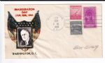 1942 Lincoln/Sun Yat Sen FDC, Denver, Co to Camp Luis Obispo Anderson cachet, Sc #906.