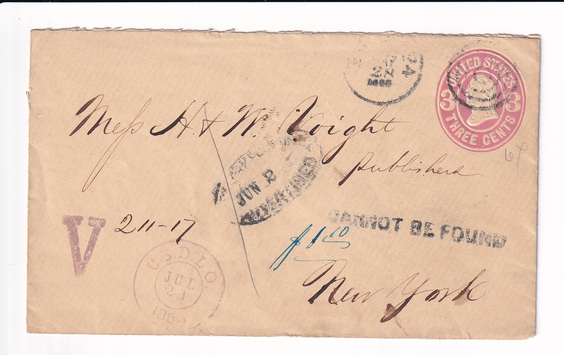 1890 New York, NY to Berlin, Germany. back stamped New York & Berlin.