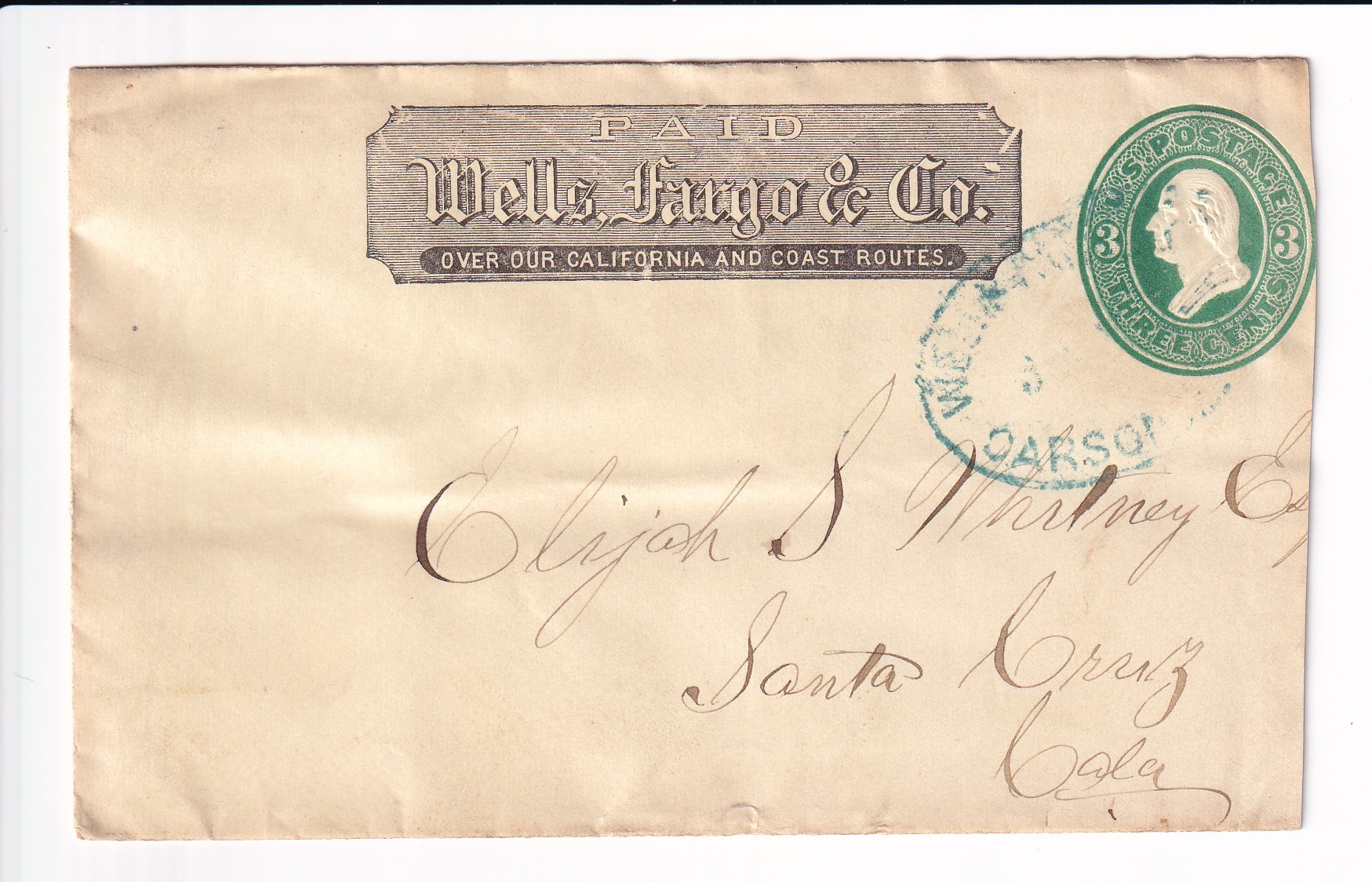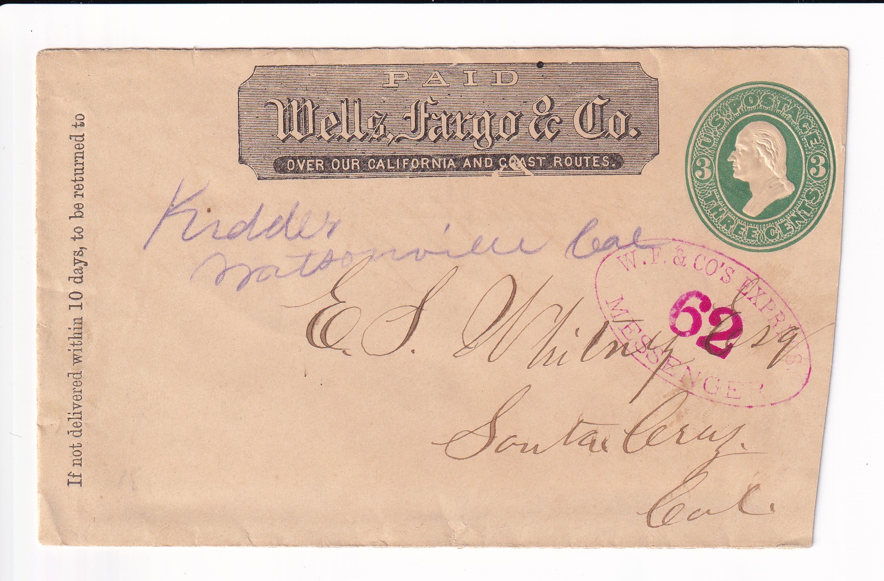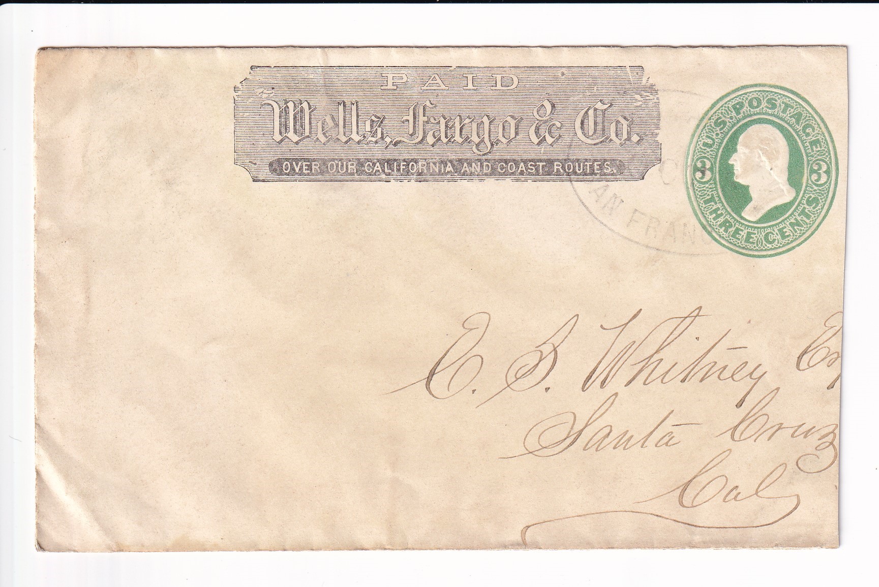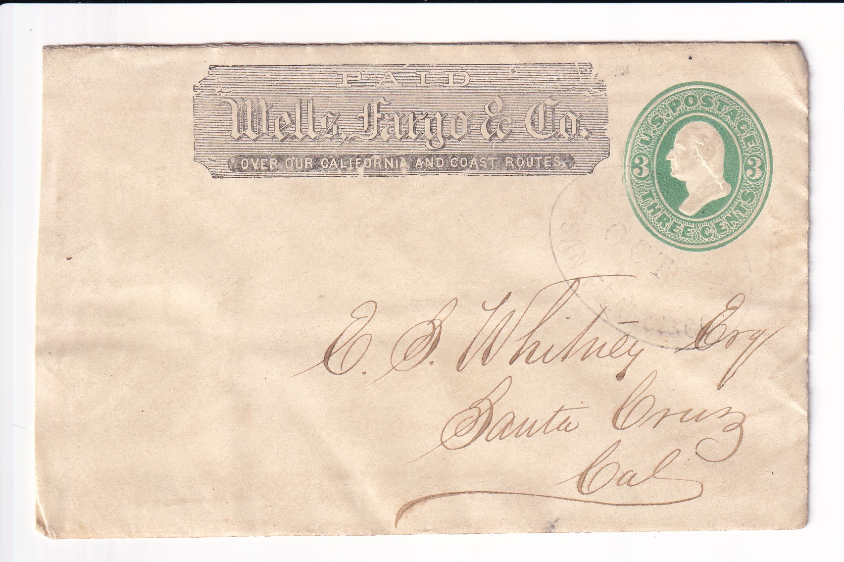 Advertising: 187x Palace Hotel San Francisco to Santa Cruz, Ca. back stamped Santa Cruz.