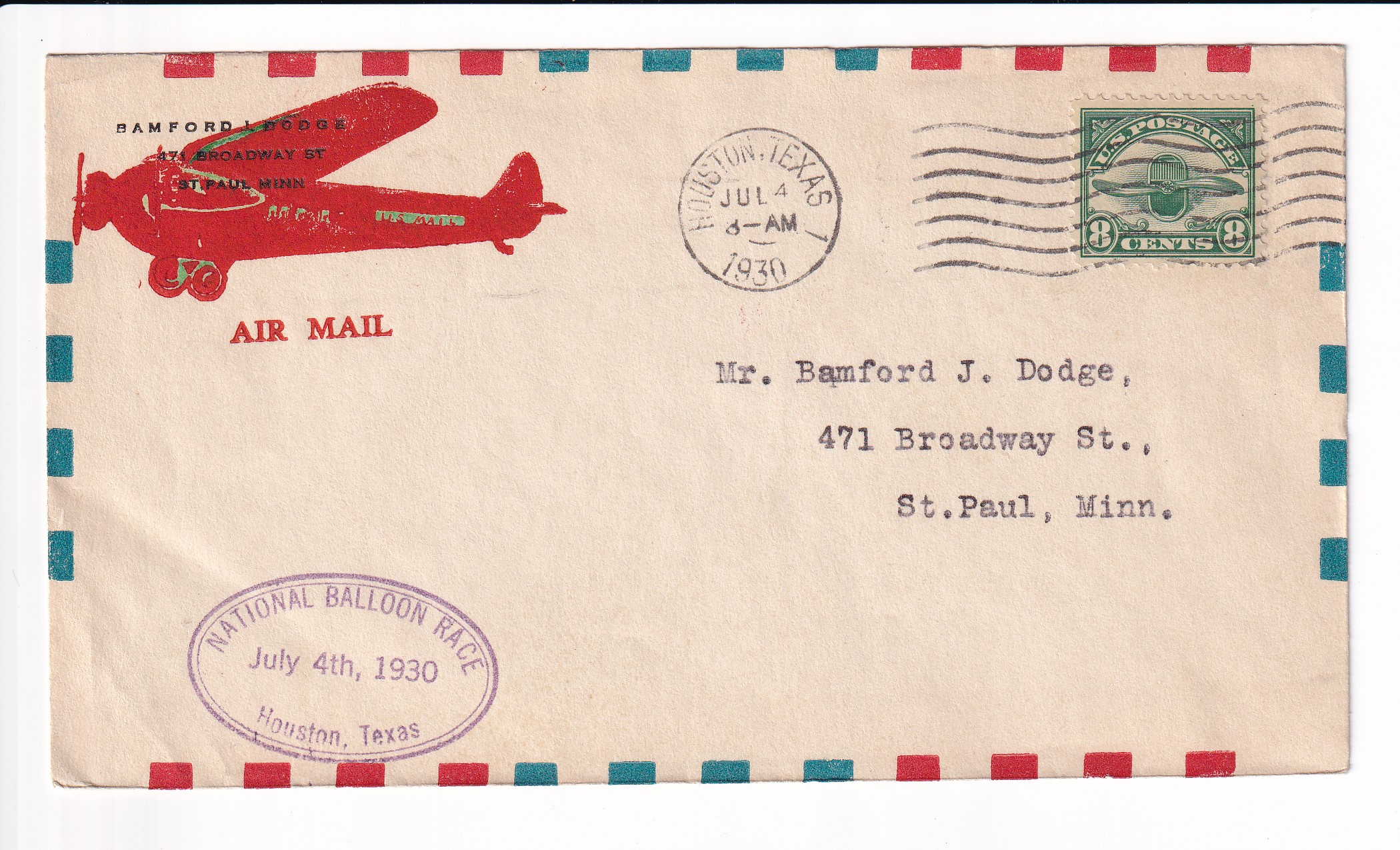 1939 University of Idaho Airport Dedication Pocatello, ID to Detroit, Mi signed by the Pilot Earl Hansen.