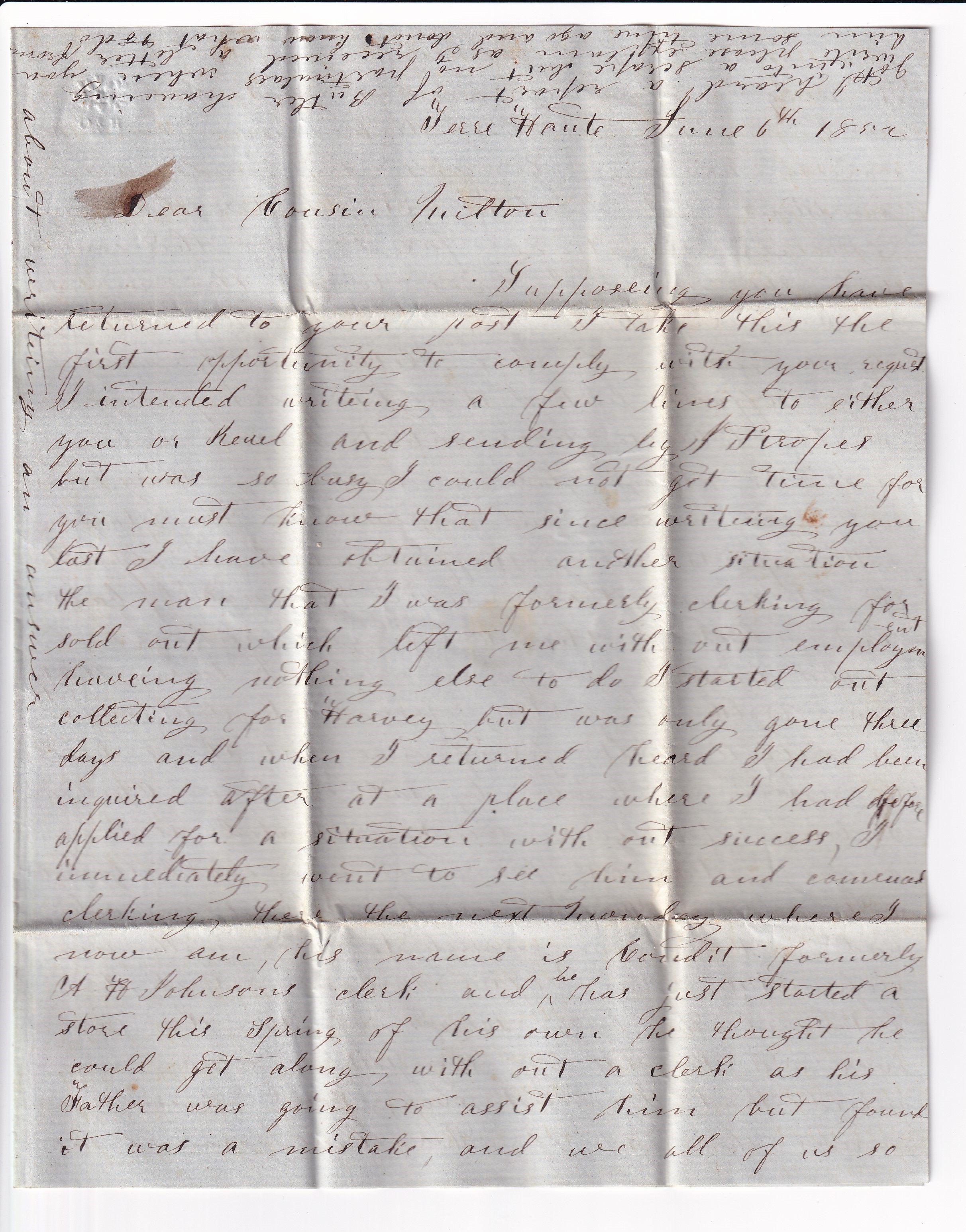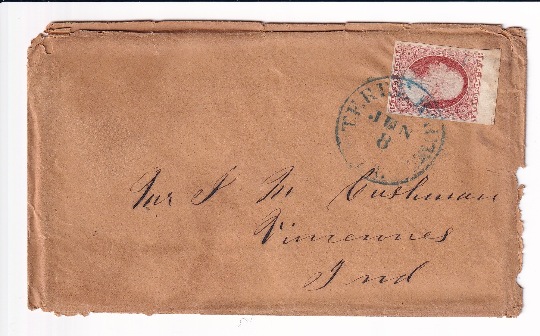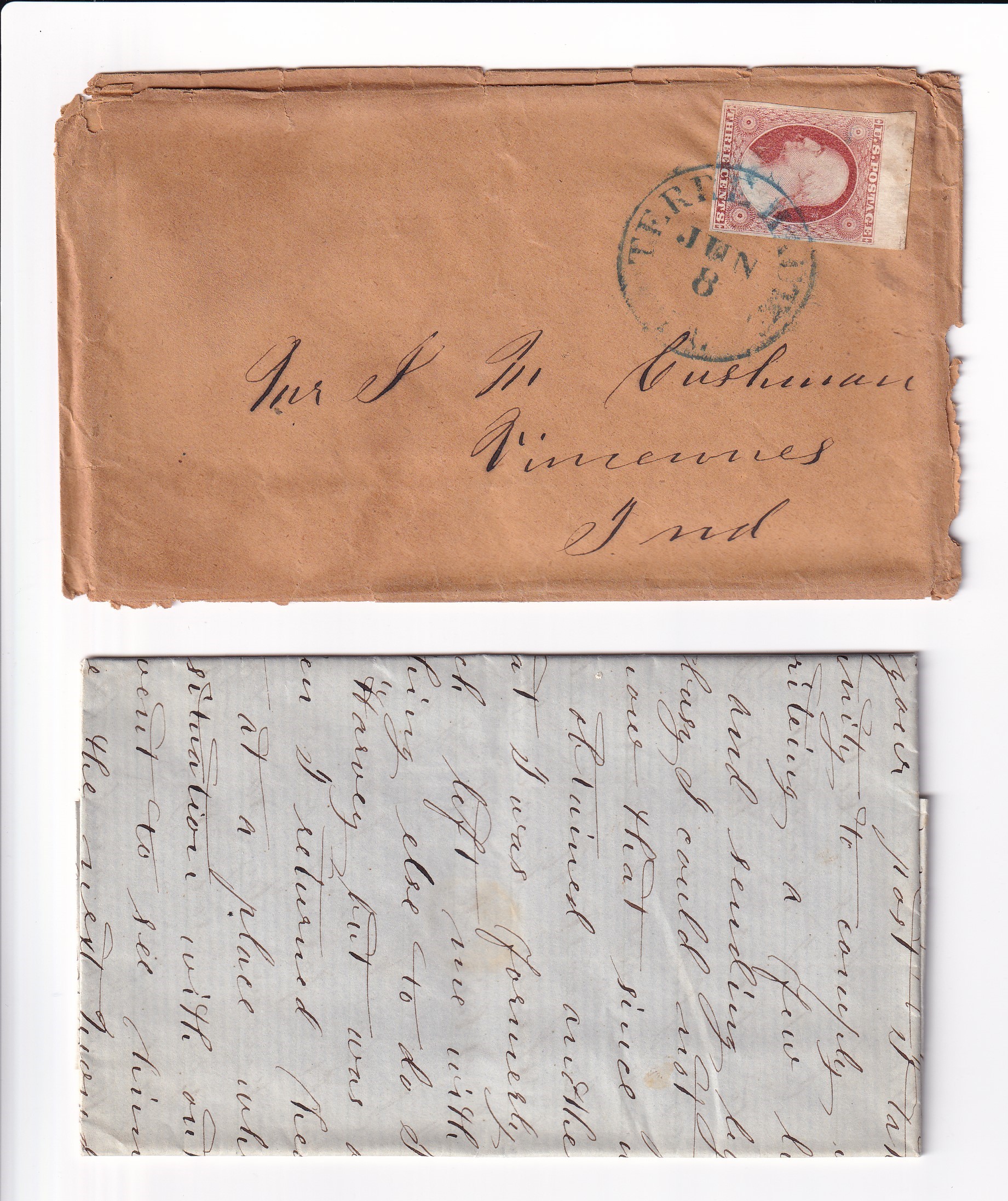 1852 Terre Haute to Vincennes, IN w/Letter Sc # 10A solo.