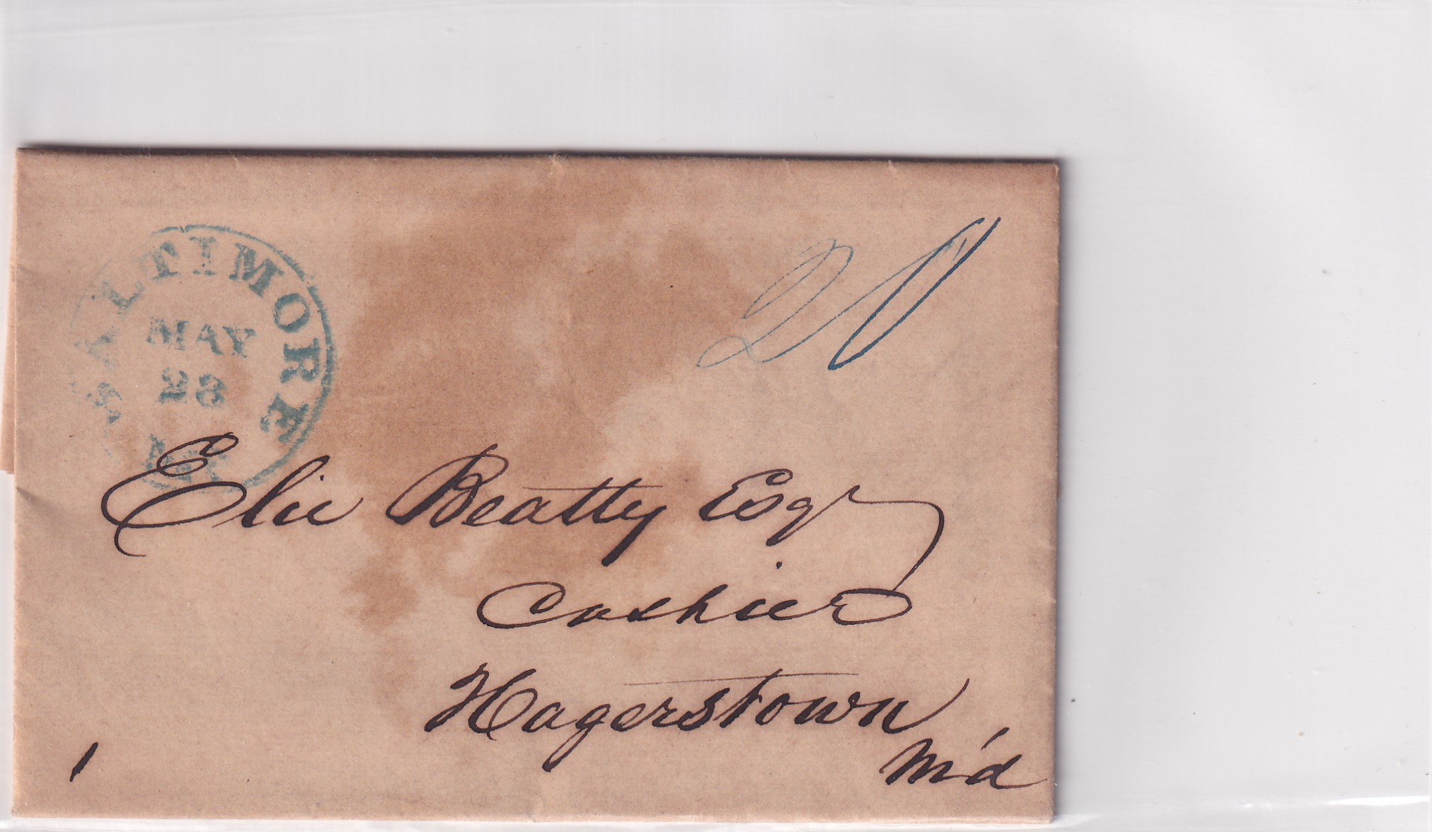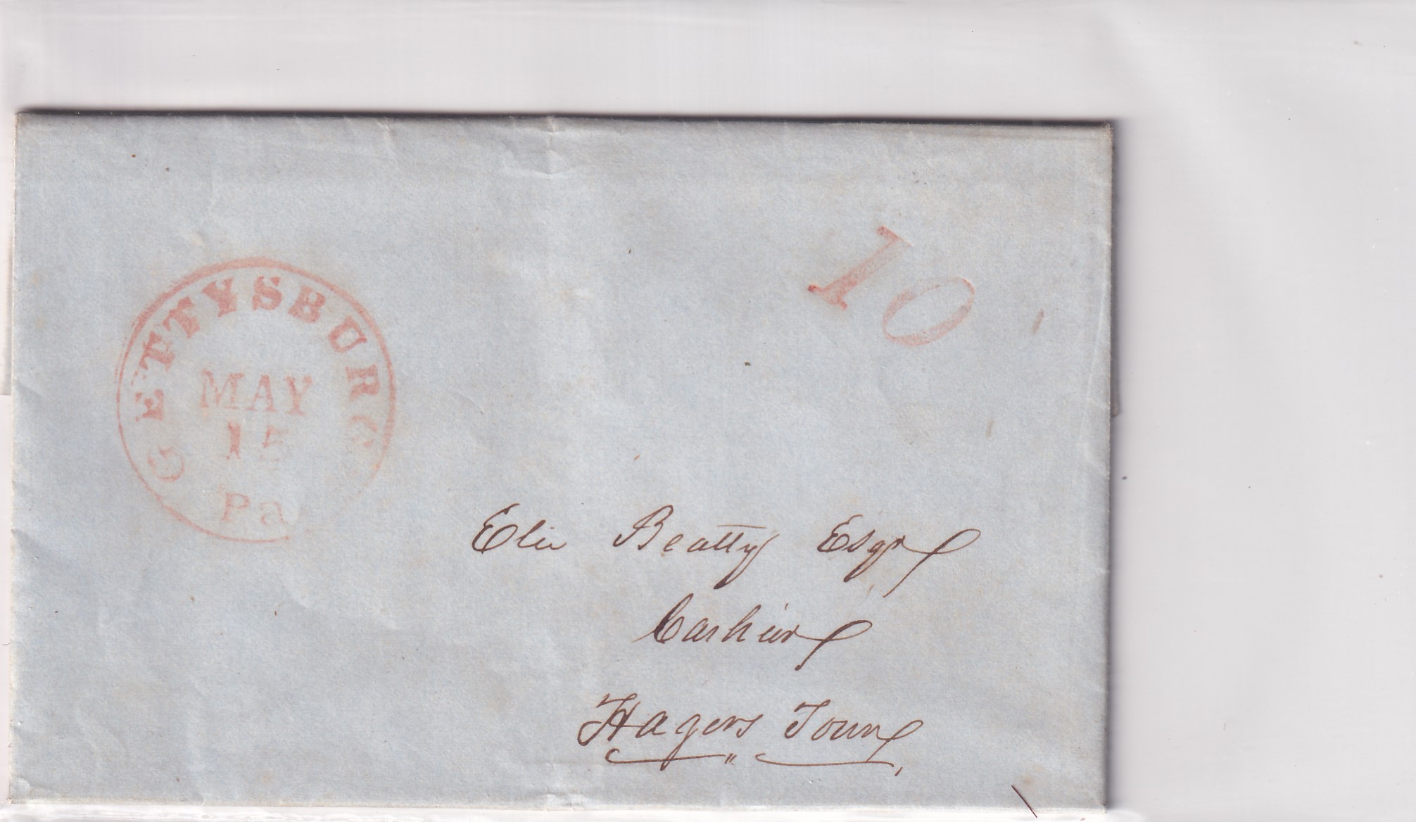 Stampless: 1851 Gettysburg, Pa to Hagerstown, MD.