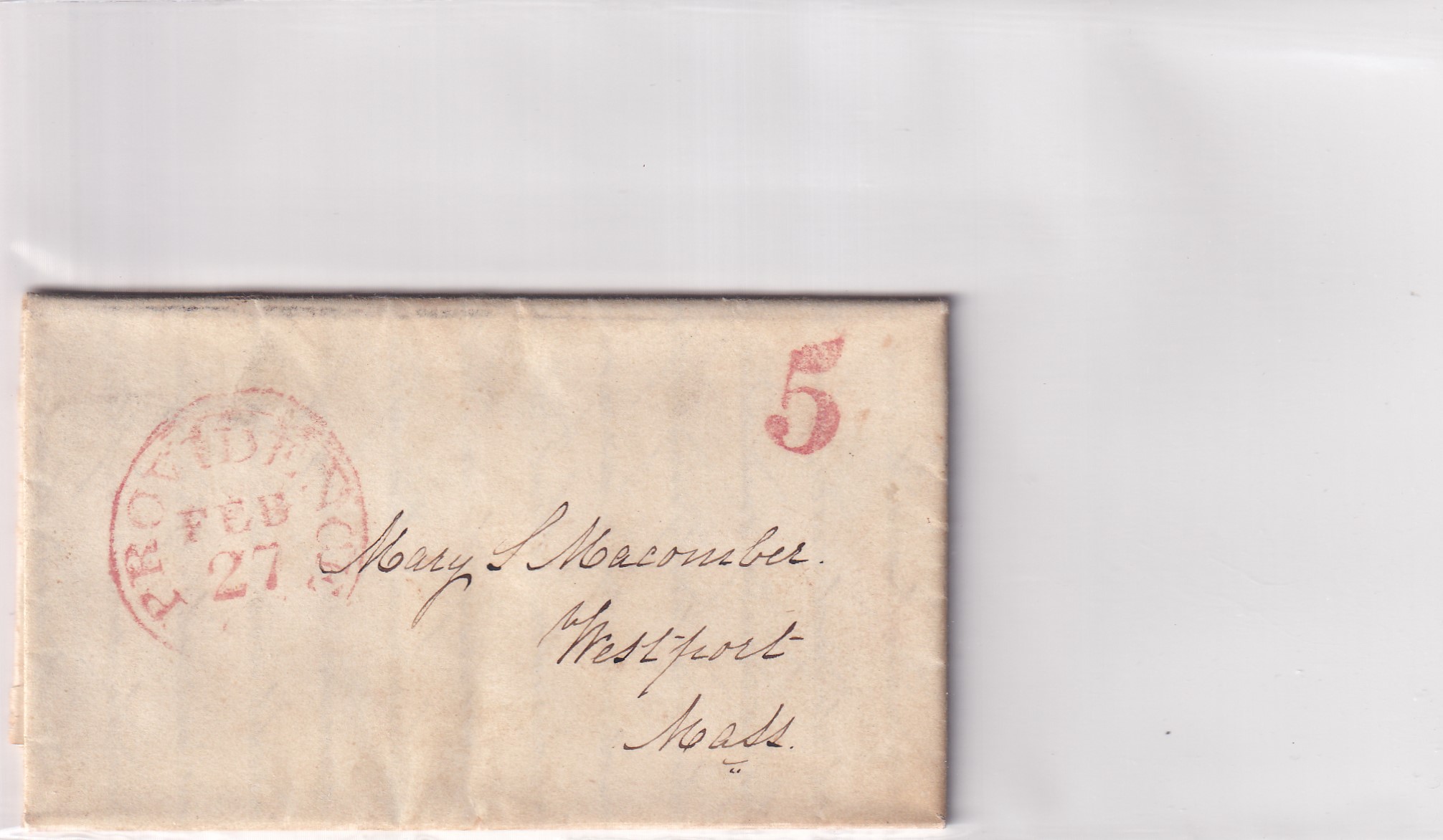 Stampless: 1849 Providence, RI to Westport, Ma.
