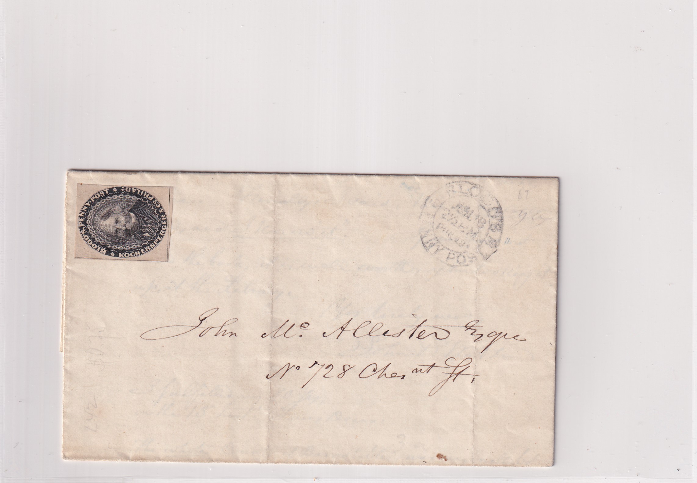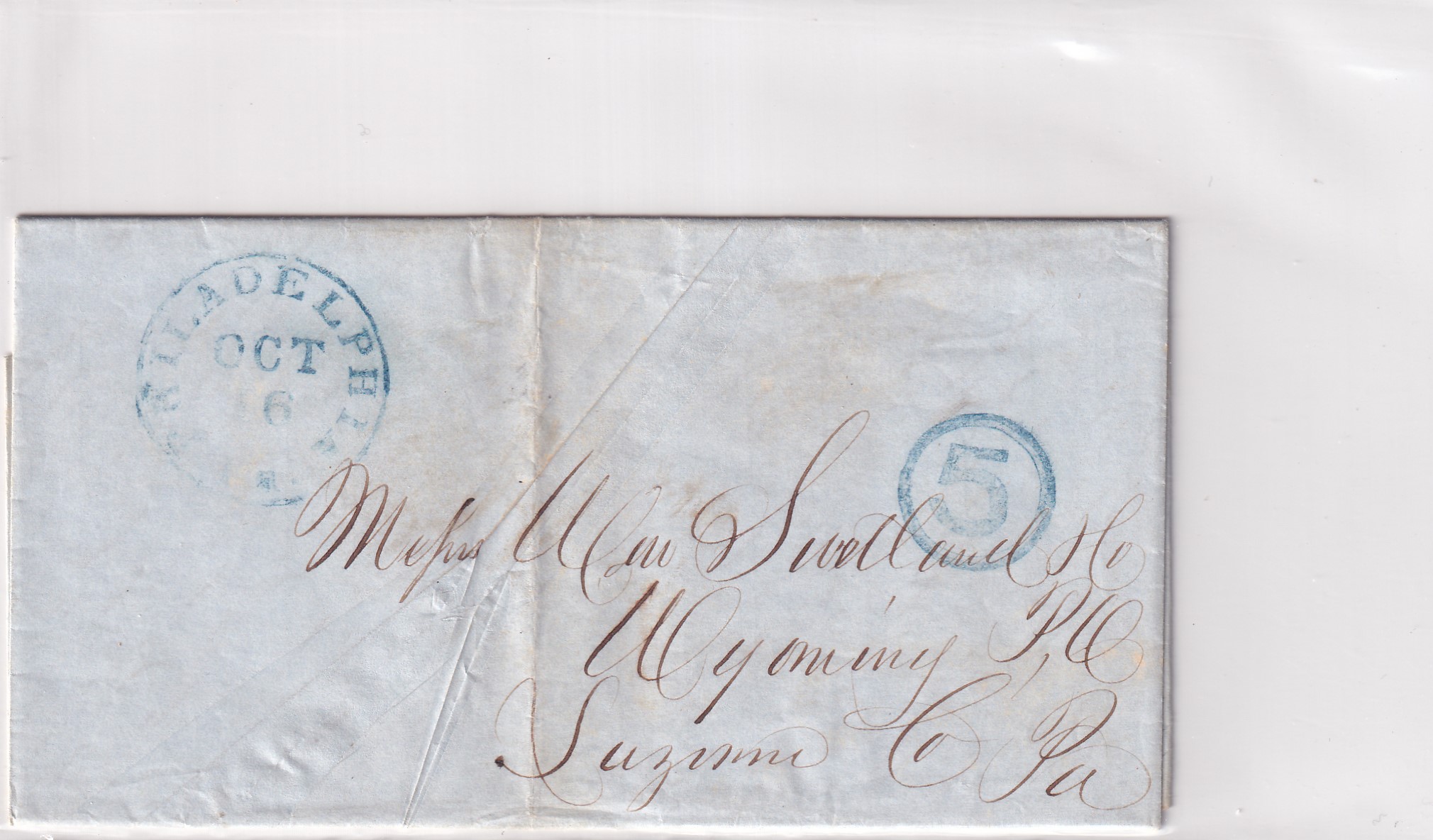 Stampless: 1845 Philadelphia to Wyoming, Pa.