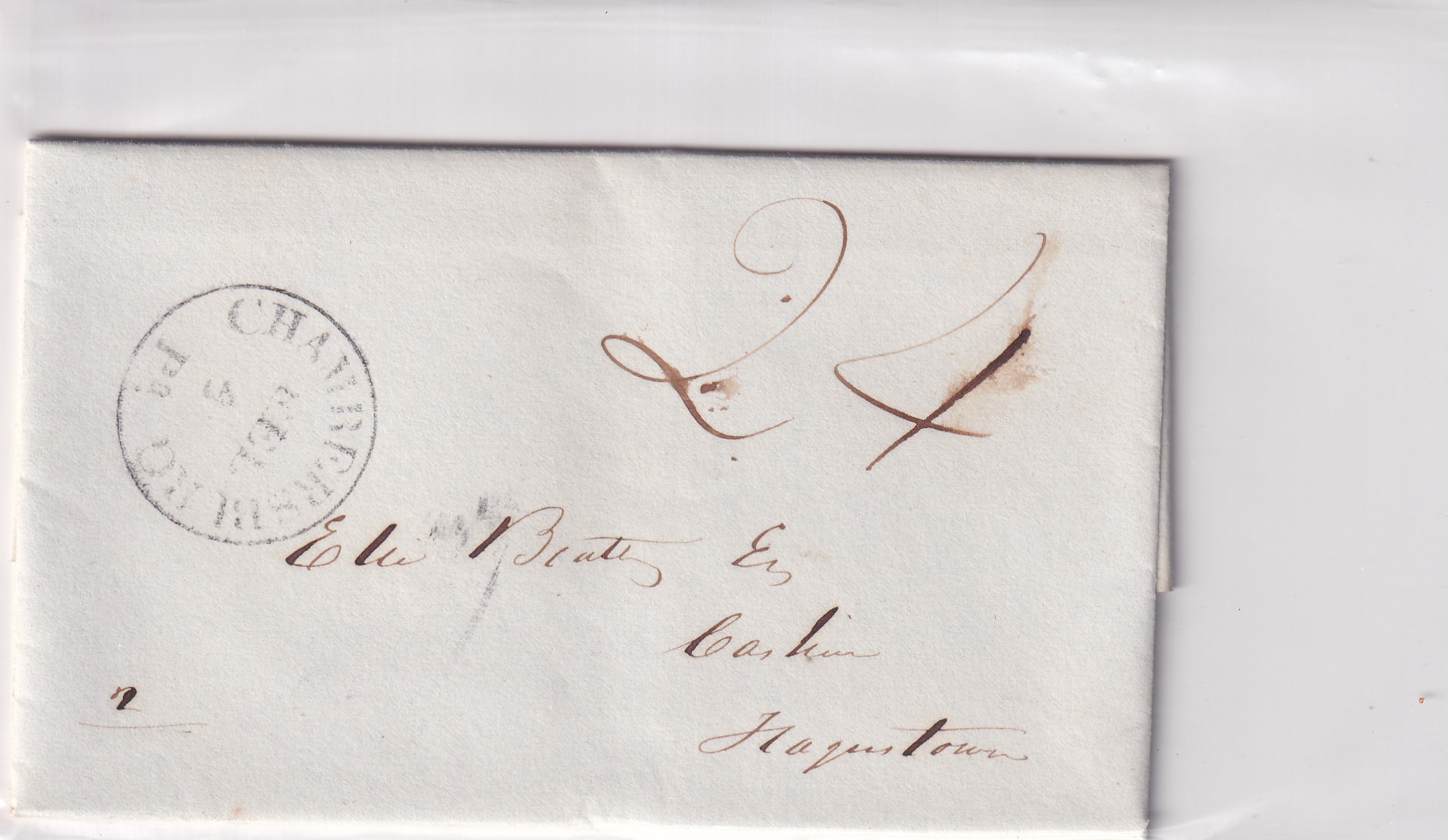 Stampless: 1838 Chambersburg, Pa to Hagerstown, MD.