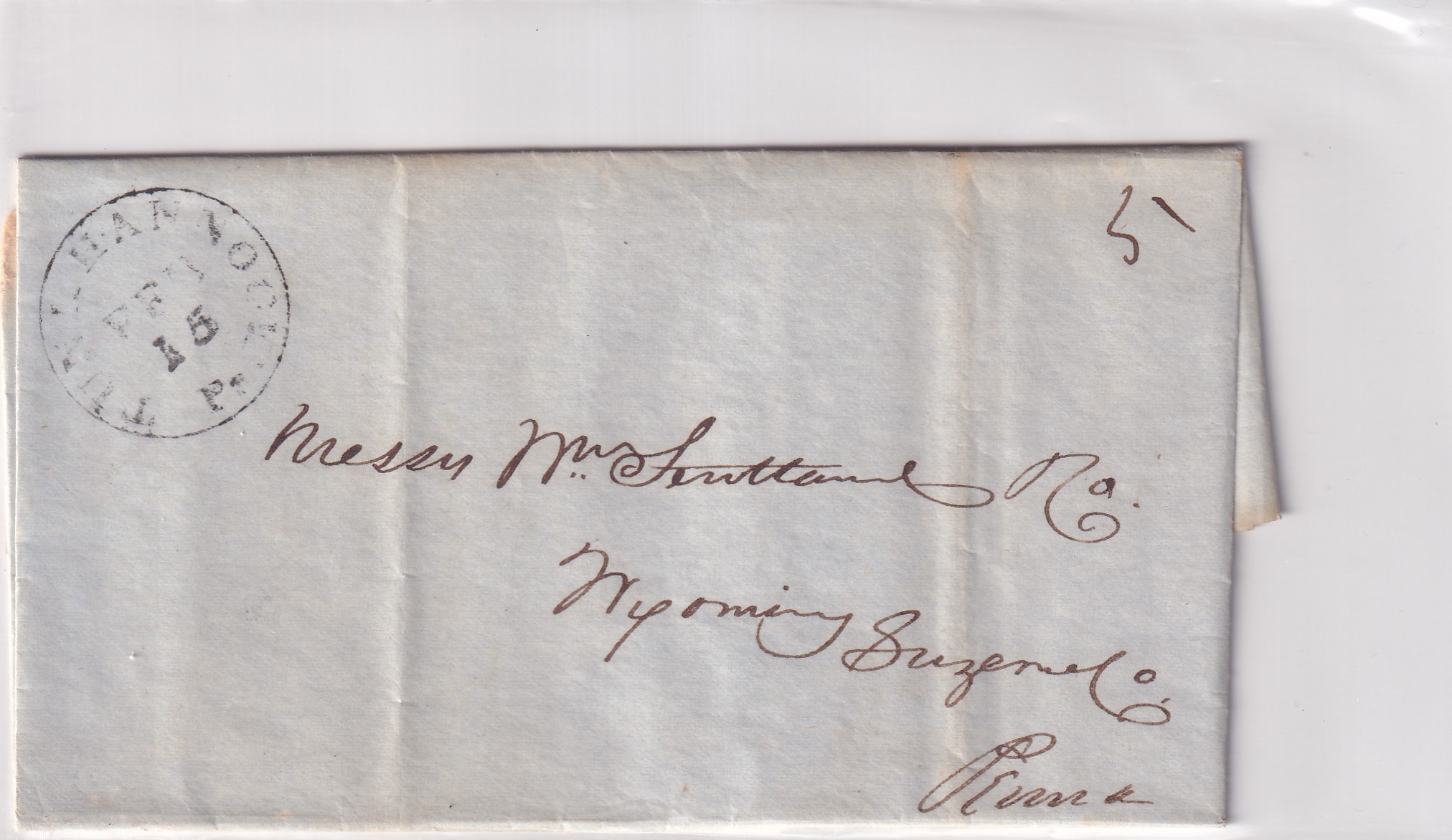 Stampless: 1848 Tunkhannock to Wyoming, Pa.