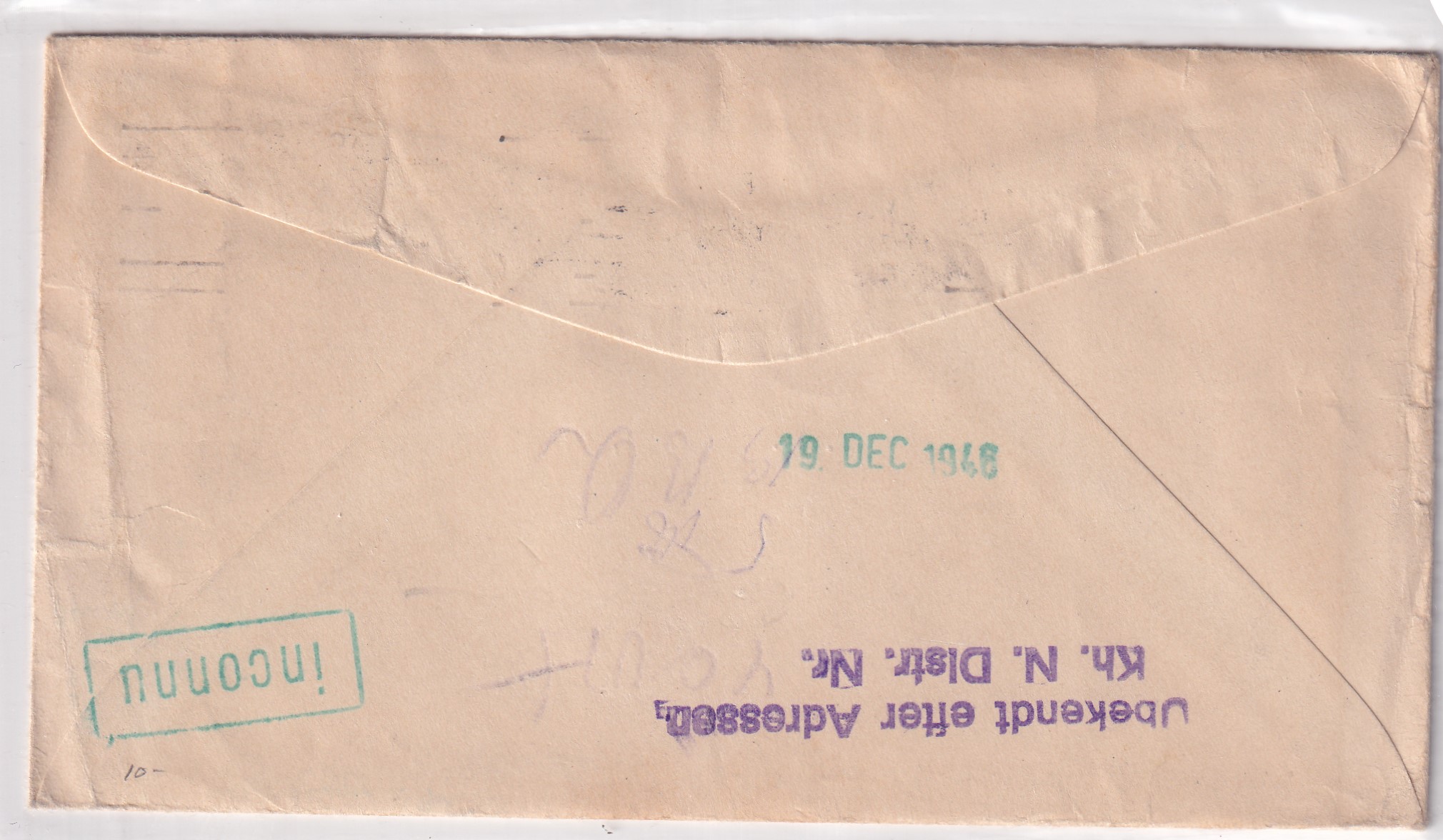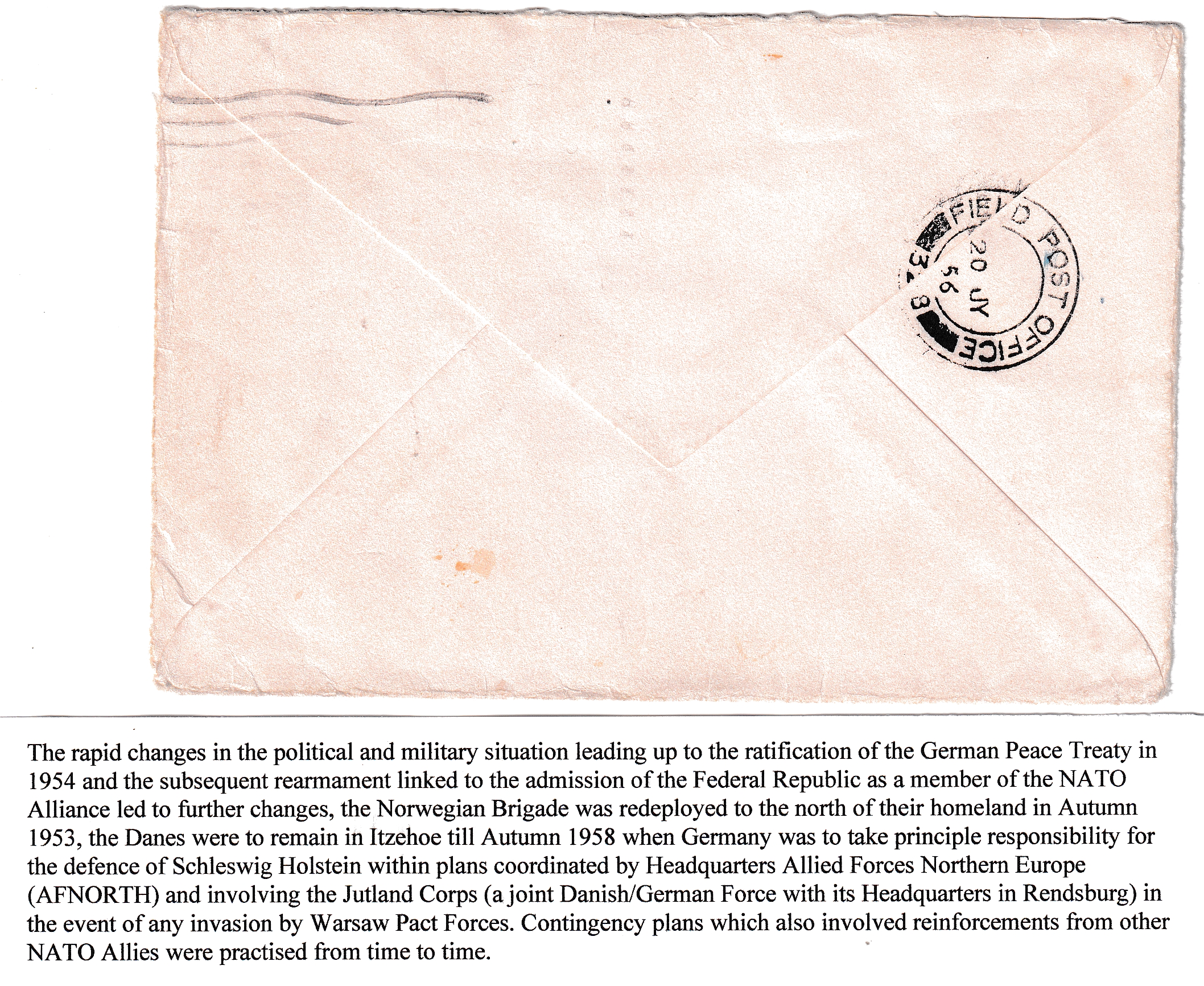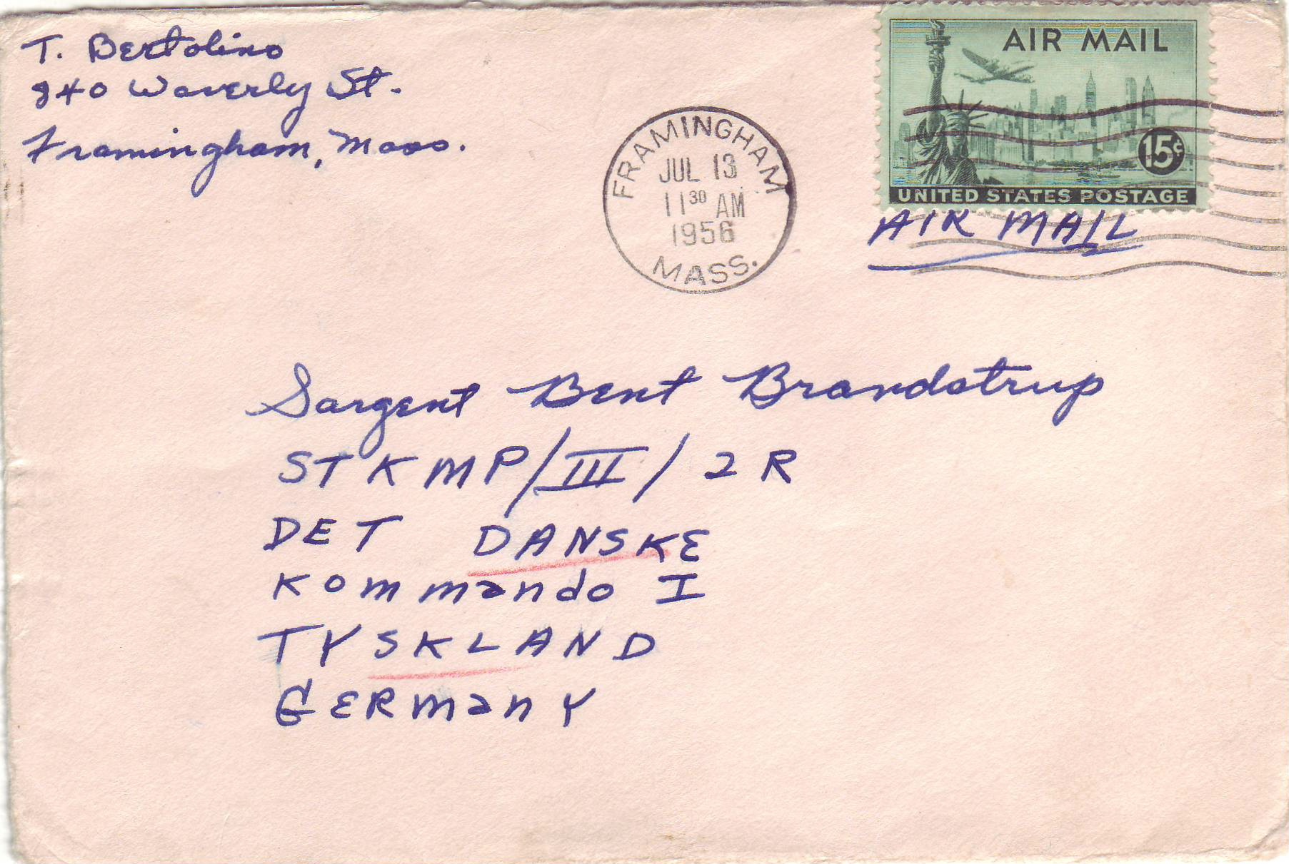 1956 Farmington, Ma to Danish Commando Unit, FPO 328, British Zone, Germany. back stamped FPO 328.