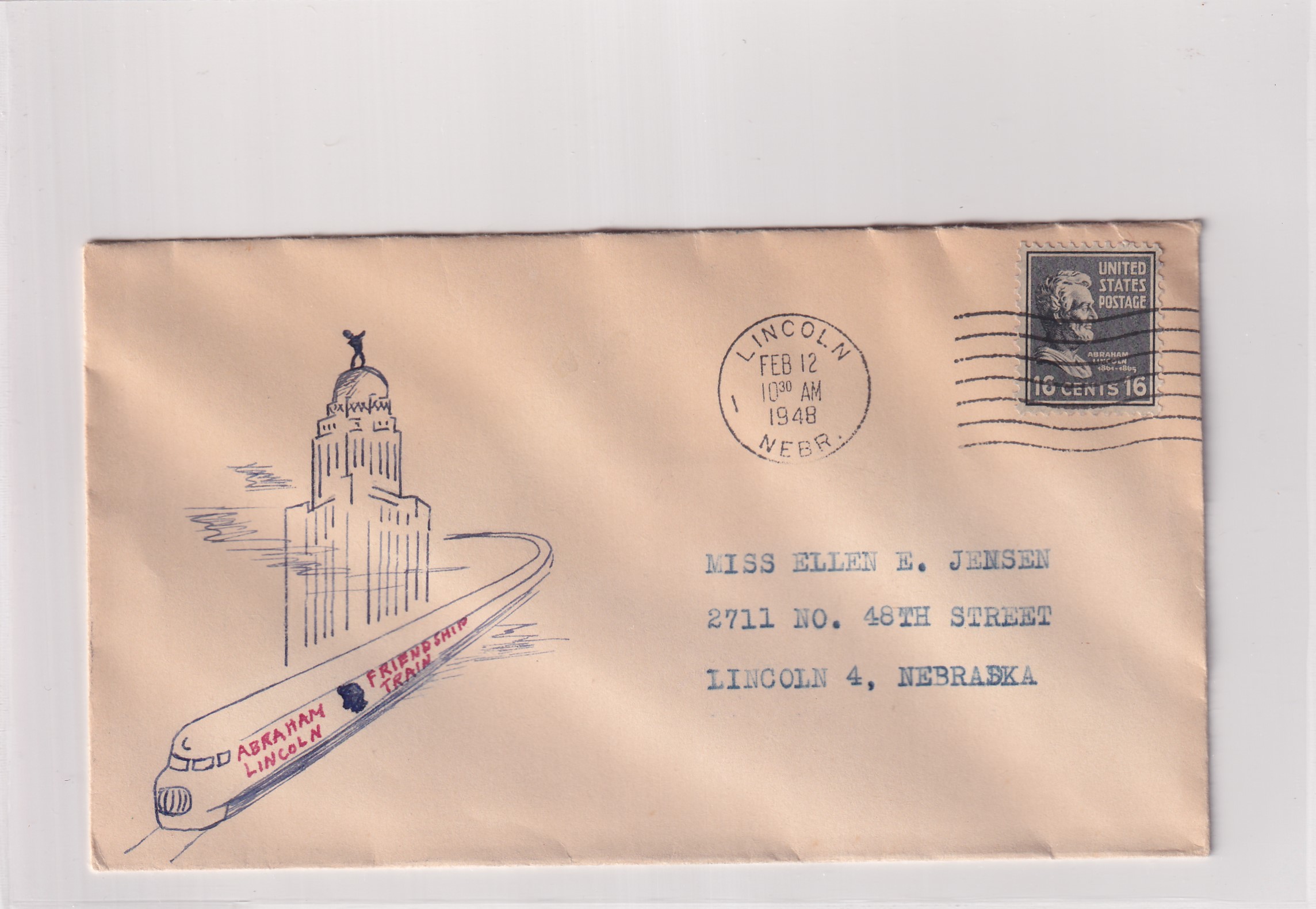 1946 Lincoln to Lincoln, Ne solo 16c Prexie, Lincoln Friendship Train.