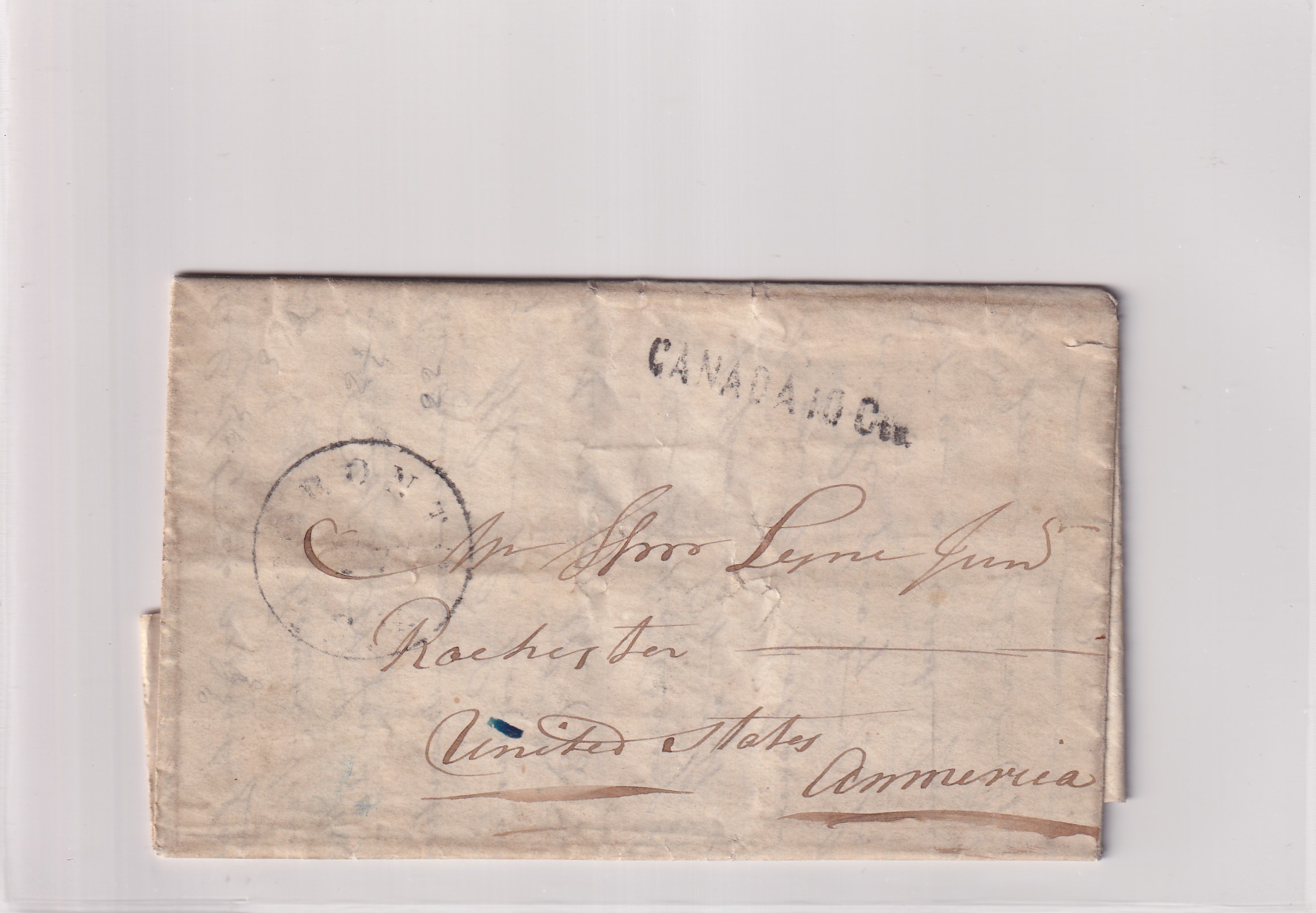Stampless: 1855 Toronto, Canada to Rochester, NY.