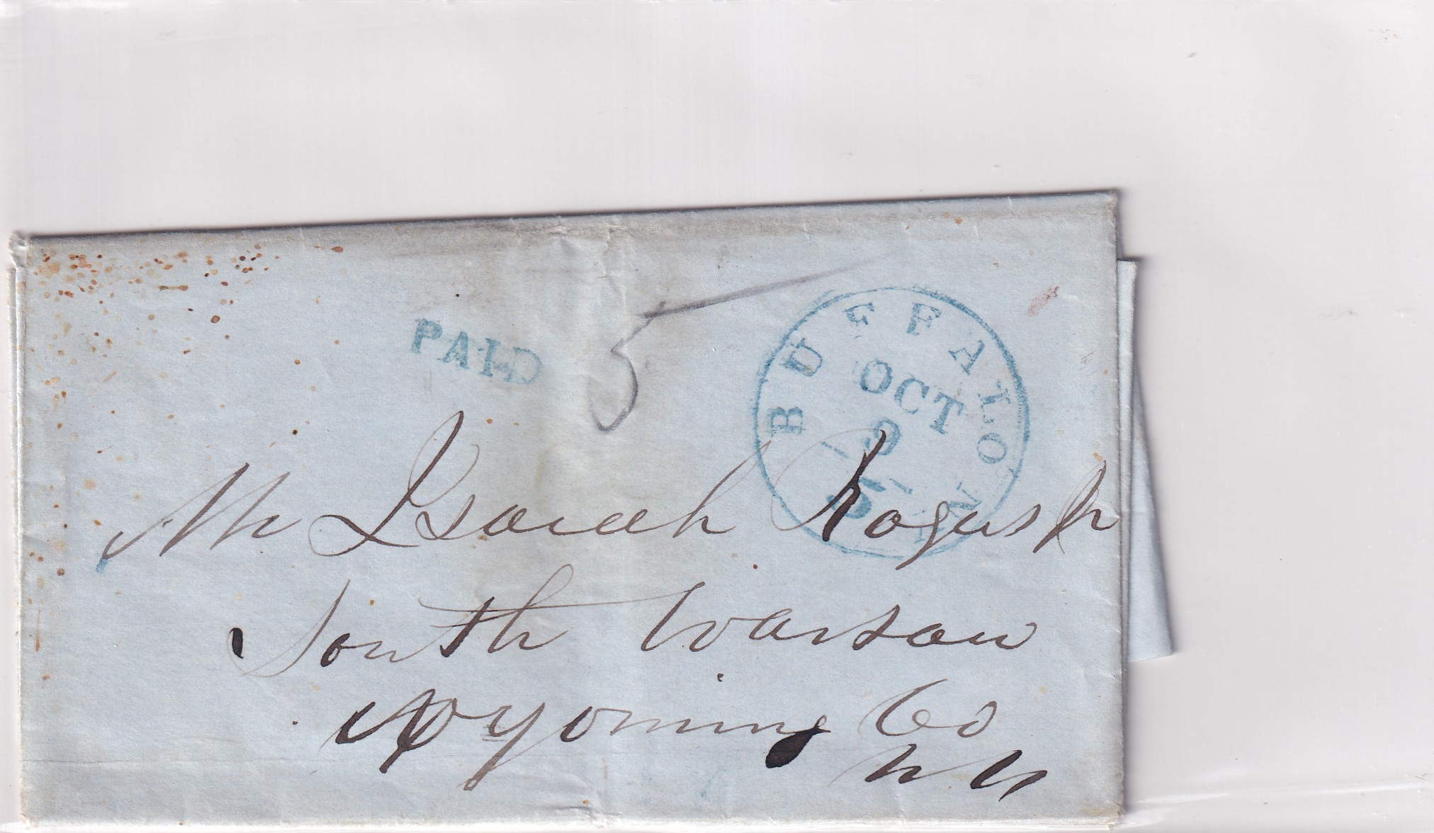 Stampless: 1849 Buffalo to South Warsaw, NY.