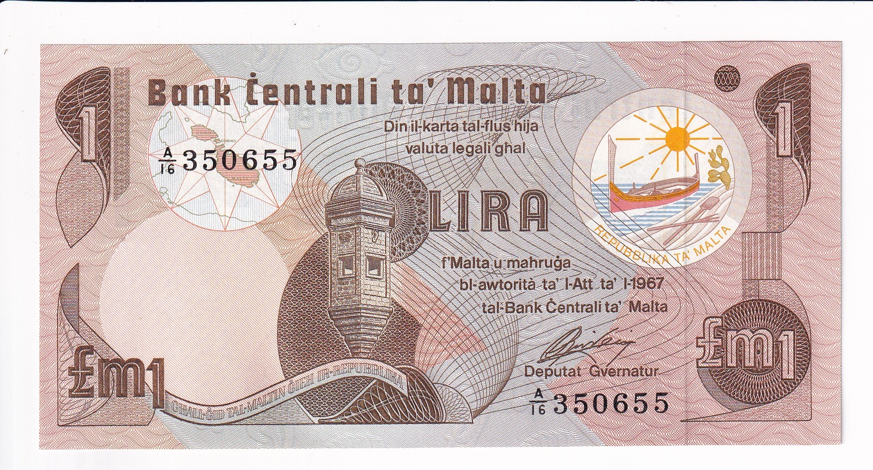 | Malta: 1 Lira Banknote: Kr #34b, UNC. Added Thursday, December 25, 2025 | Price: $50.00