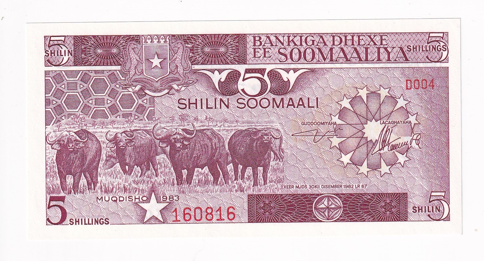 | Somalia: 5 Shilling Banknote, Kr #31a, UNC. Added Thursday, December 25, 2025 | Price: $7.00