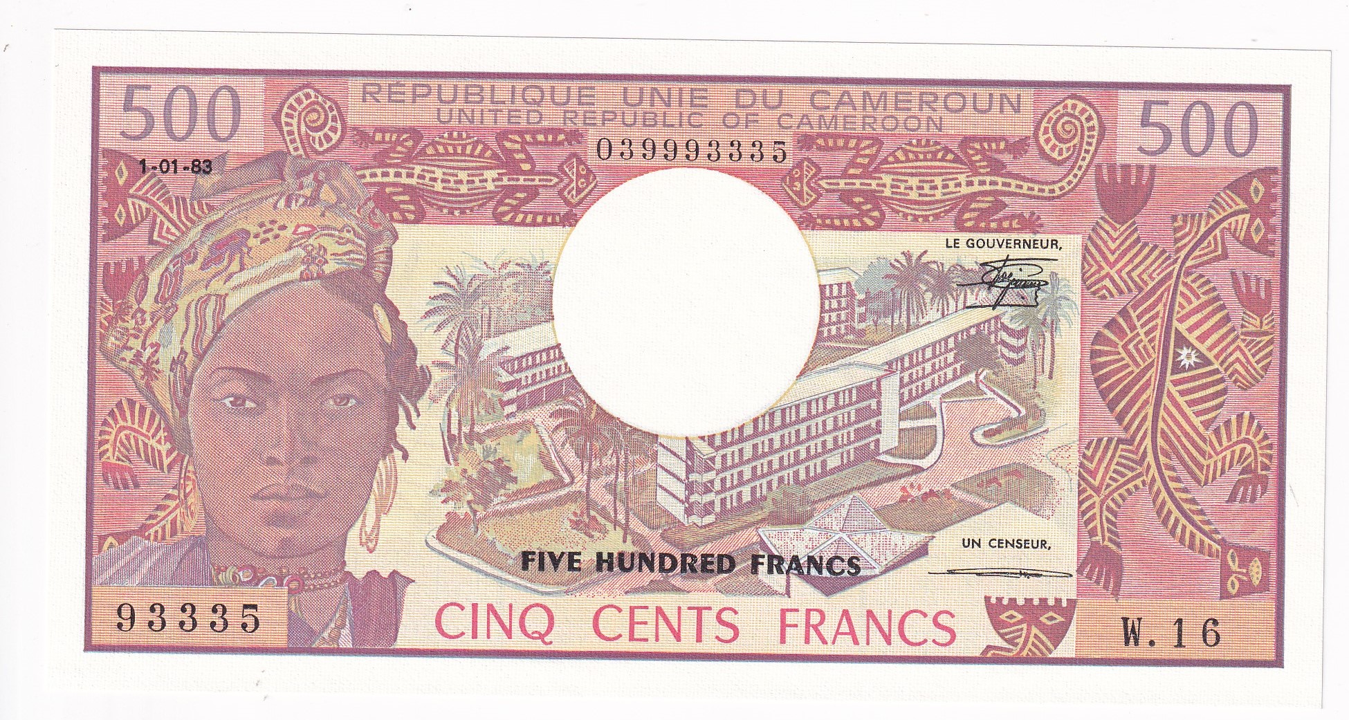 | Cameroun: 500 Francs Banknote, Kr #15d, UNC. Added Thursday, December 25, 2025 | Price: $25.00