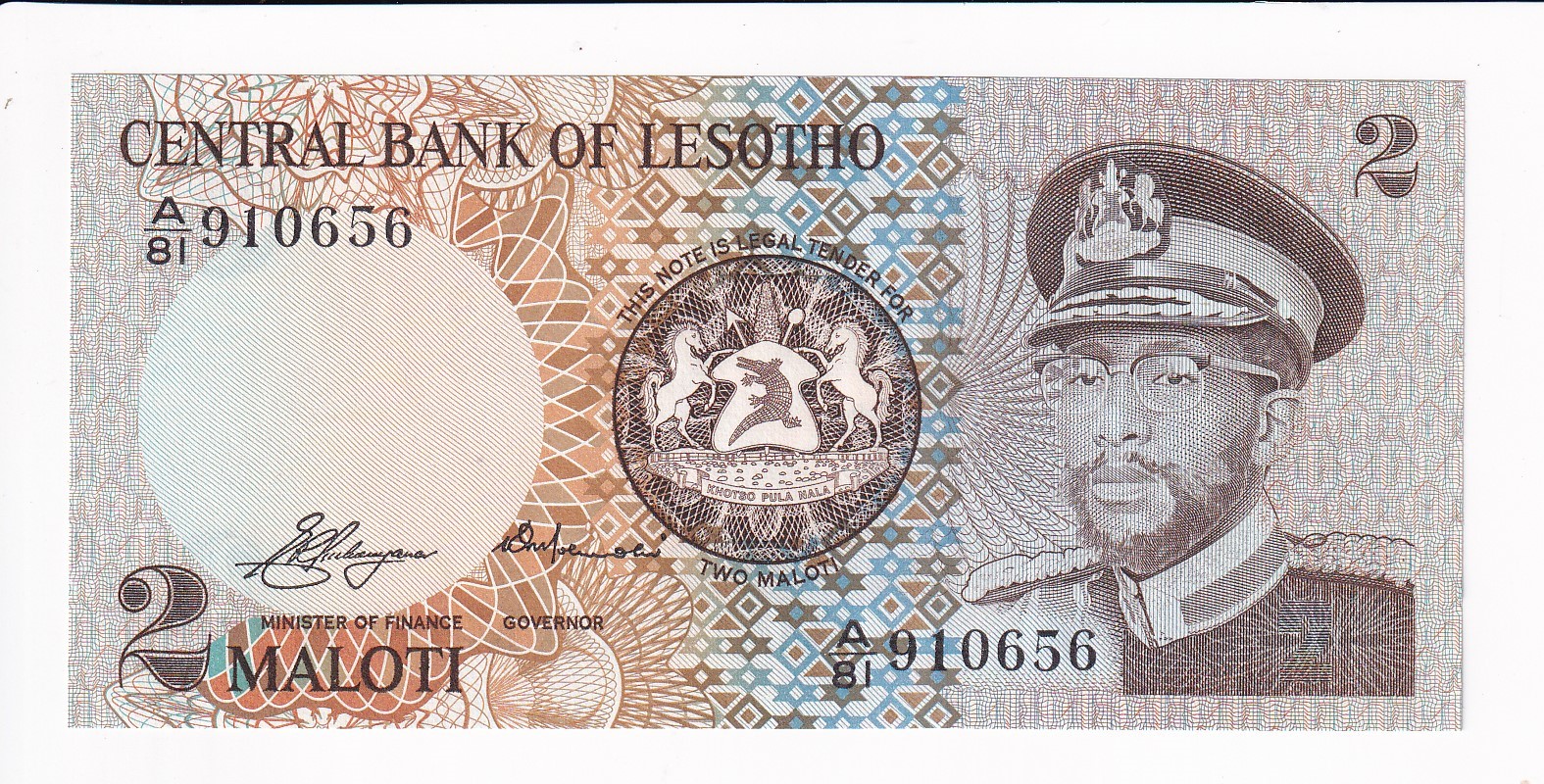 | Lesotho: 2 Maloti Banknote, Kr #4a, UNC. Added Thursday, December 25, 2025 | Price: $15.00