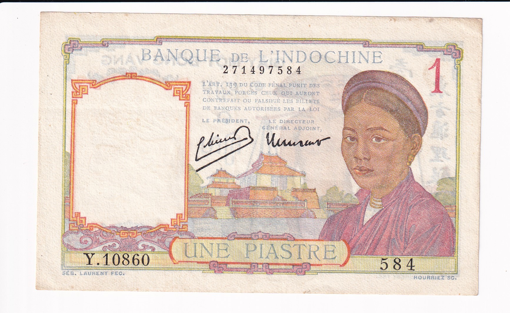 | French Indochina: 1 Piastre Banknote, KR #52 AU. Added Thursday, December 25, 2025 | Price: $100.00