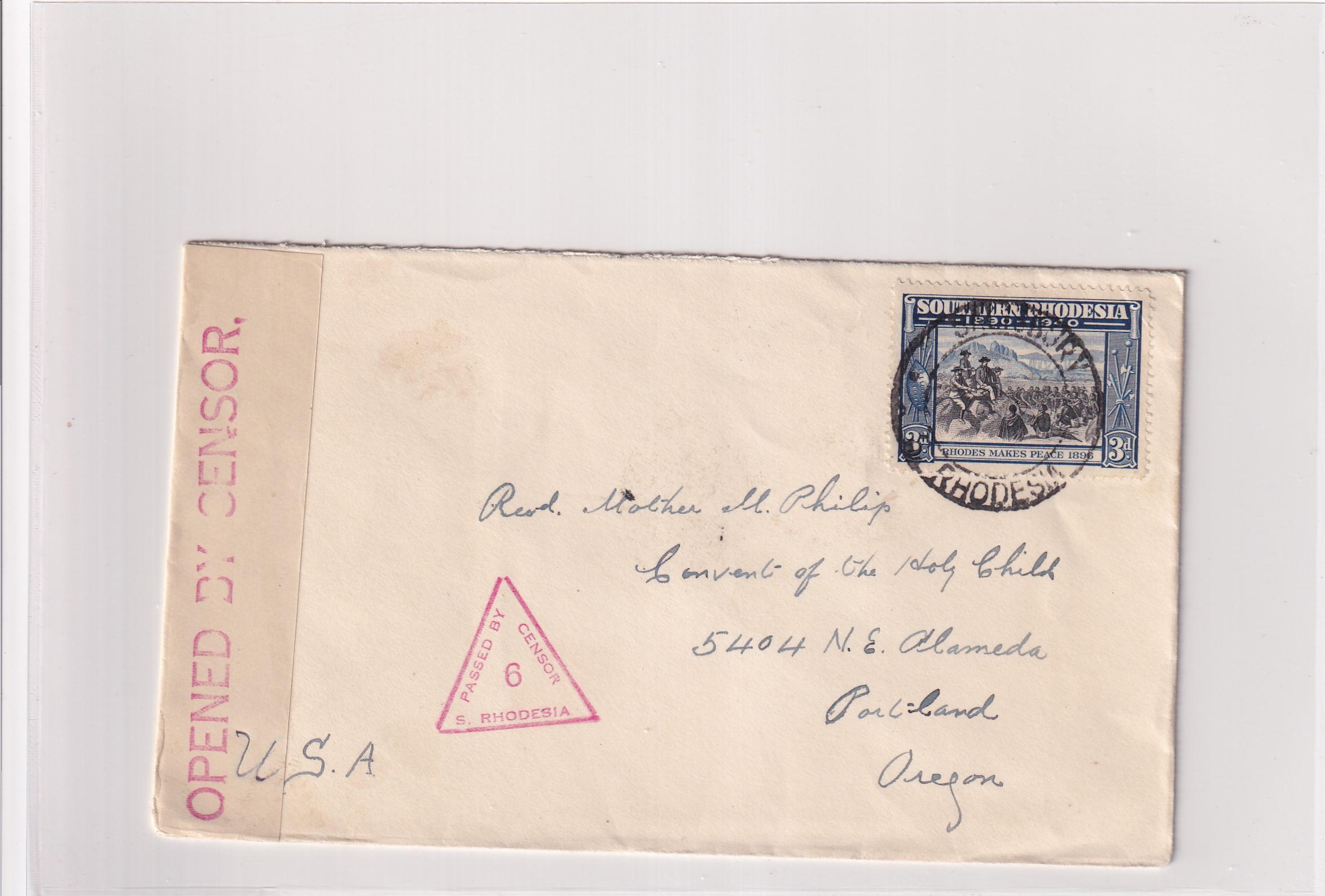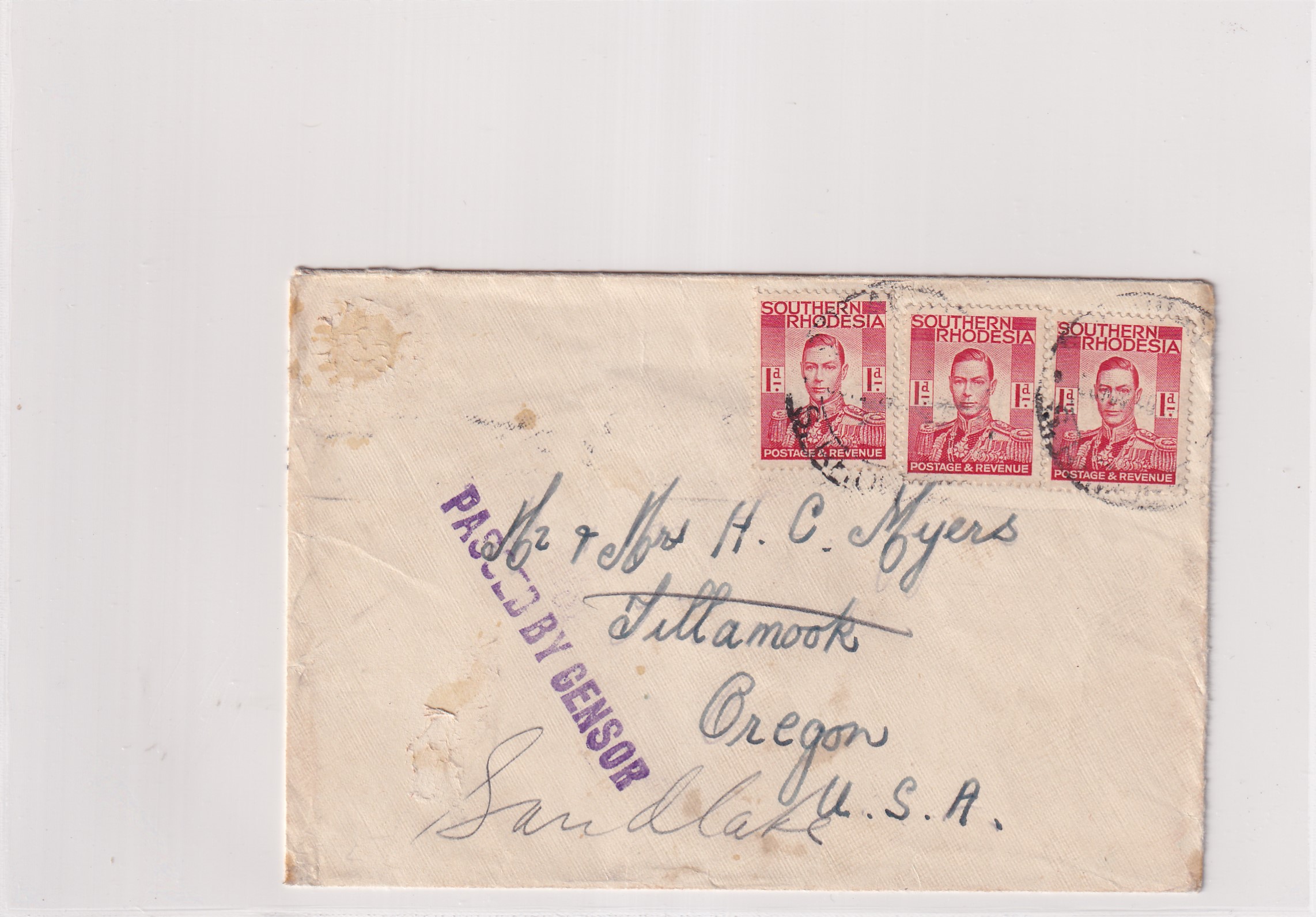 194x Southern Rhodesia, to Tillamook Or Censored. back stamped Tillamook. Censor ty IIIA, sc 7. Added Wednesday, February 18, 2026