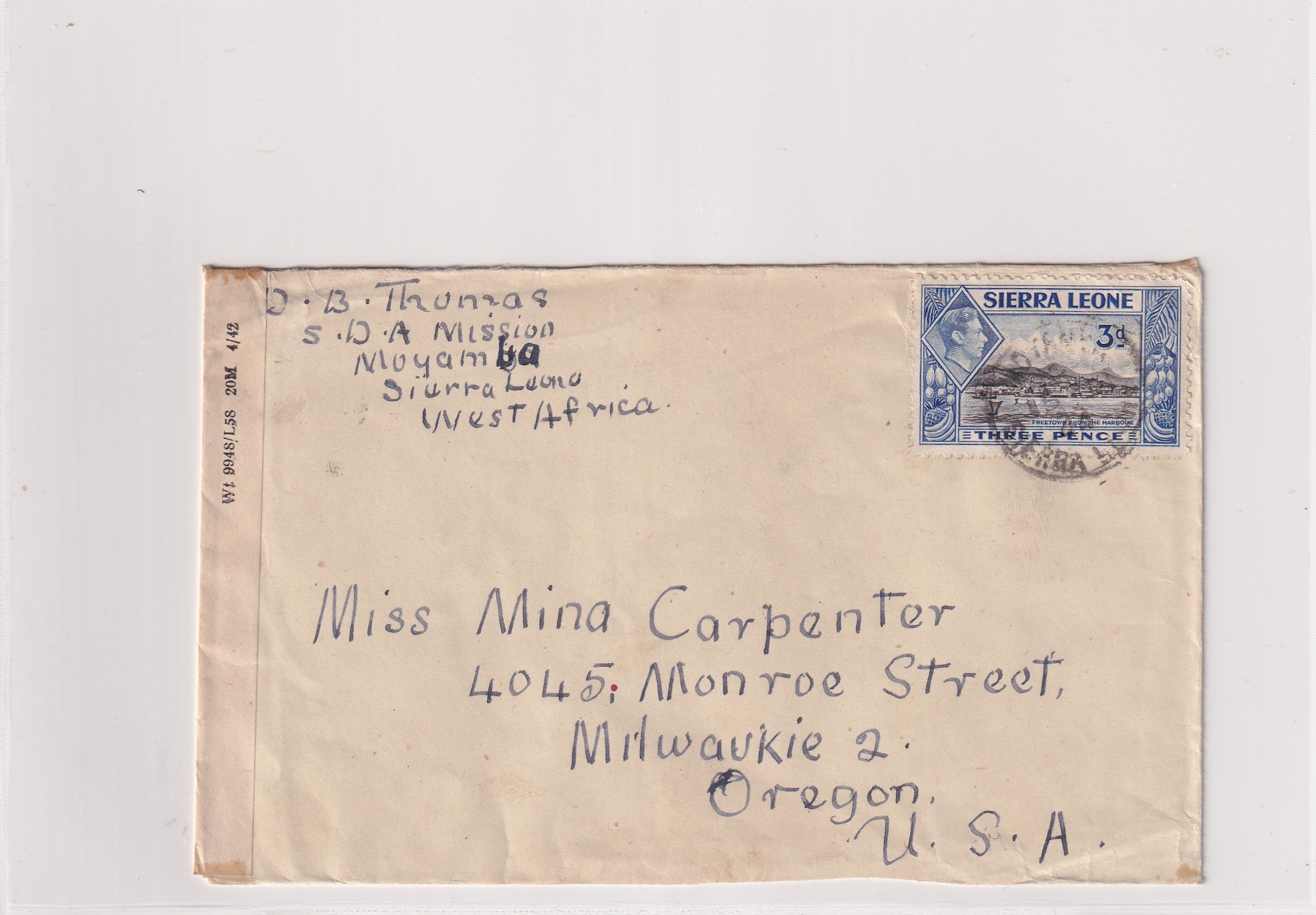 1940 Moyamba, Sierra Leone to Milwaukie, Or Censored. back stamped Freetown. Censor ty III, sc 7. Added Wednesday, February 18, 2026