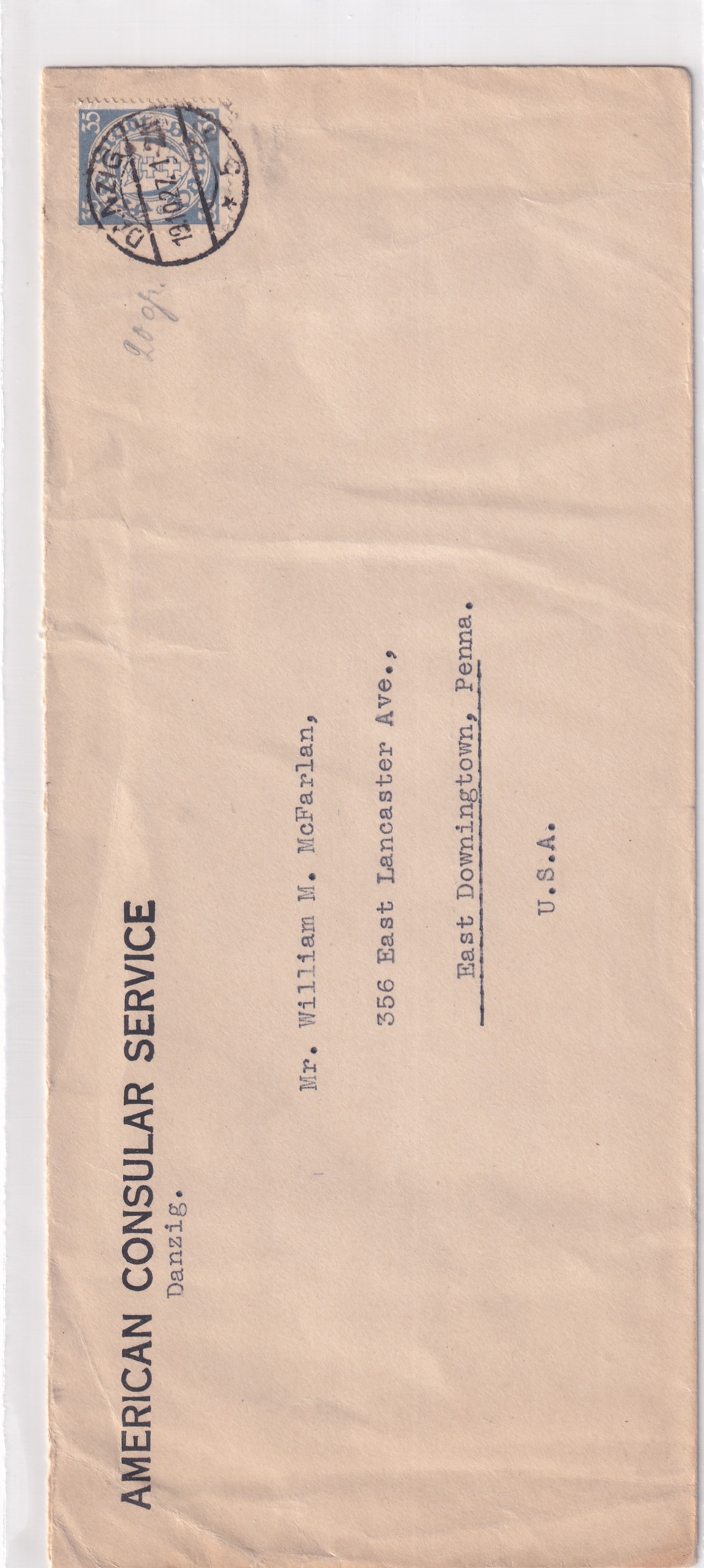 | 1927 U.S. Embassy Danzig to East Downington, Pa. #10. Added Tuesday, March 17, 2026 | Price: $15.00