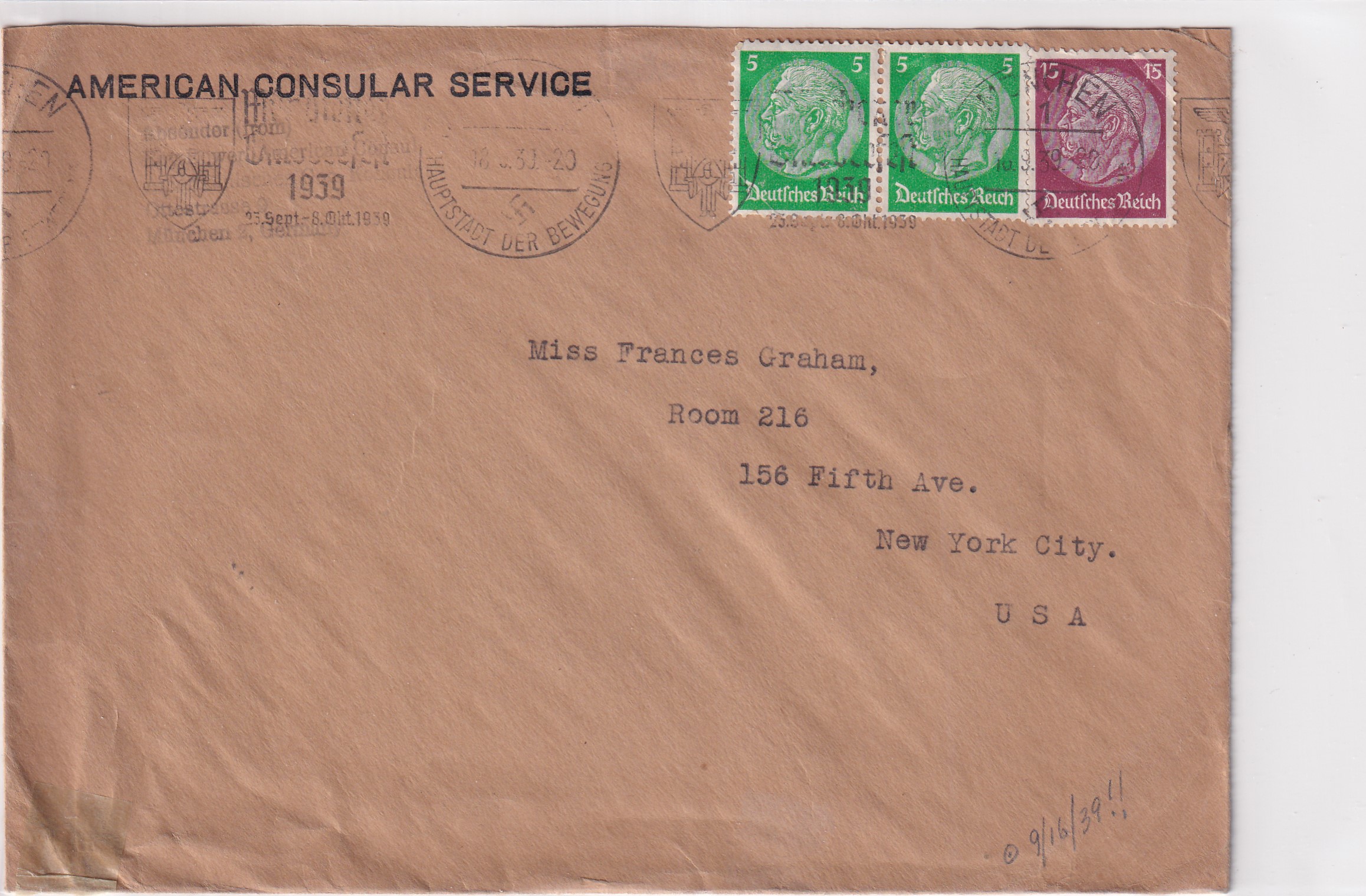 | 1938 U.S. Embassy Munich, Germany to New York, NY. Added Tuesday, March 17, 2026 | Price: $15.00