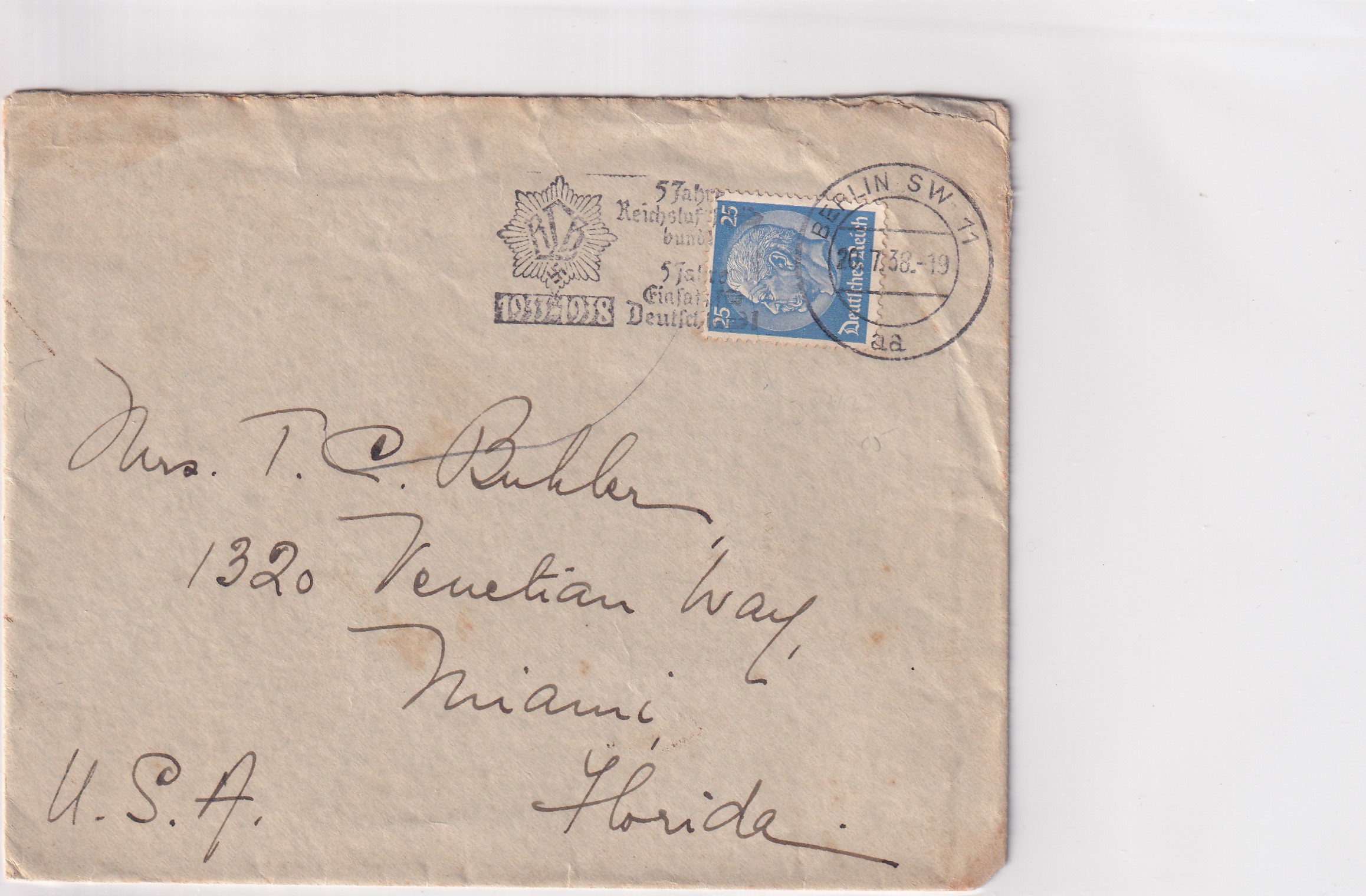 | 1938 U.S. Embassy Berlin, Germany to Miami, Fl. Added Tuesday, March 17, 2026 | Price: $15.00