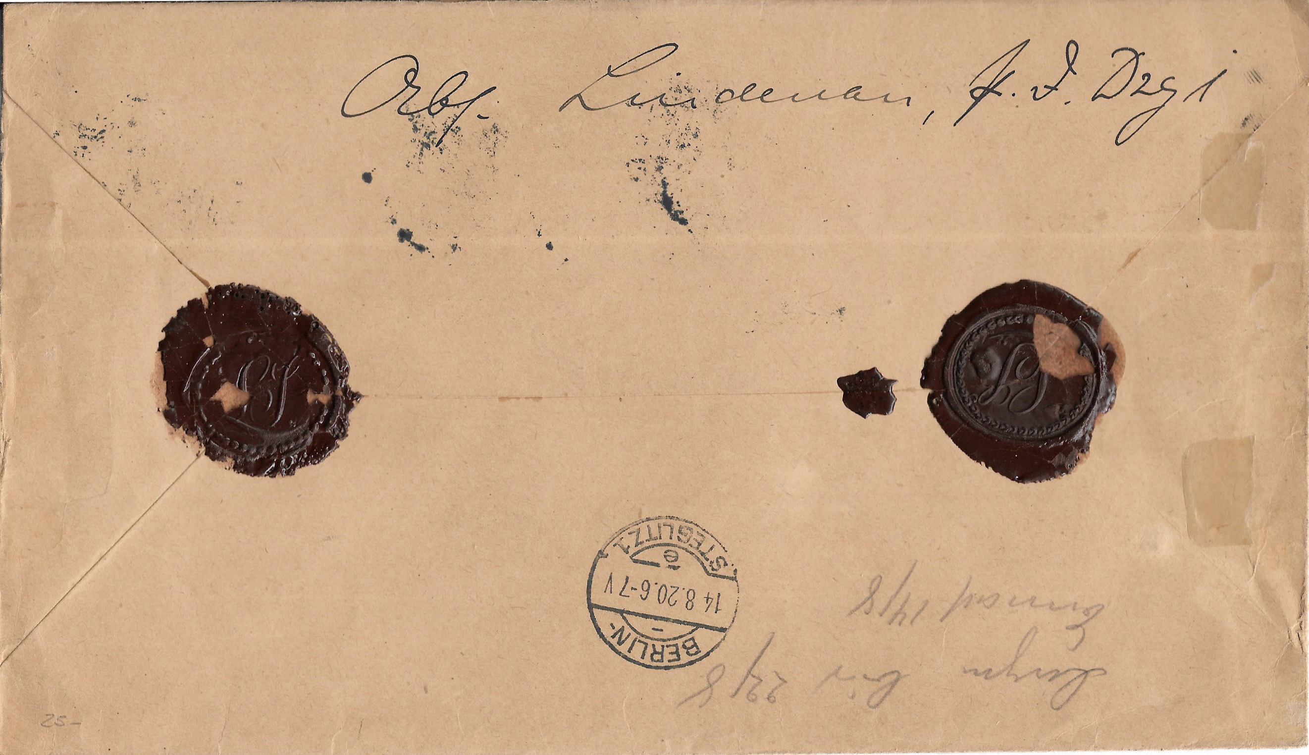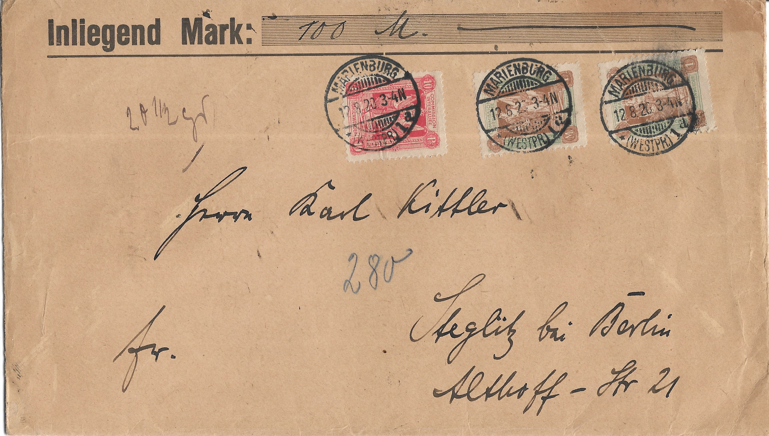 1920 Marienburg to Berlin, Germany. large cover. Added Sunday, November 9, 2025