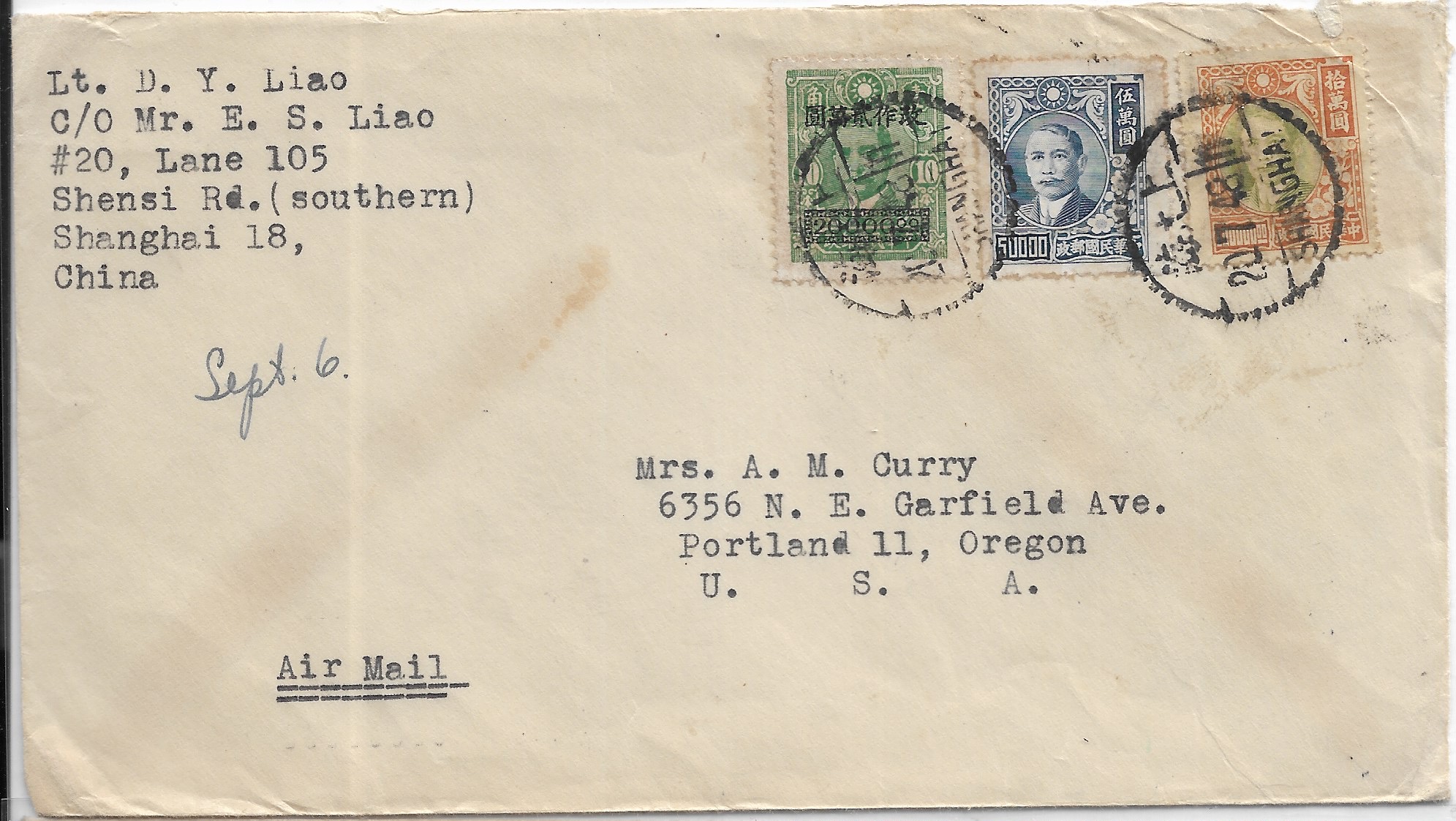 1948 Shanghai, China to Portland, Or Airmail. Added Monday, November 10, 2025