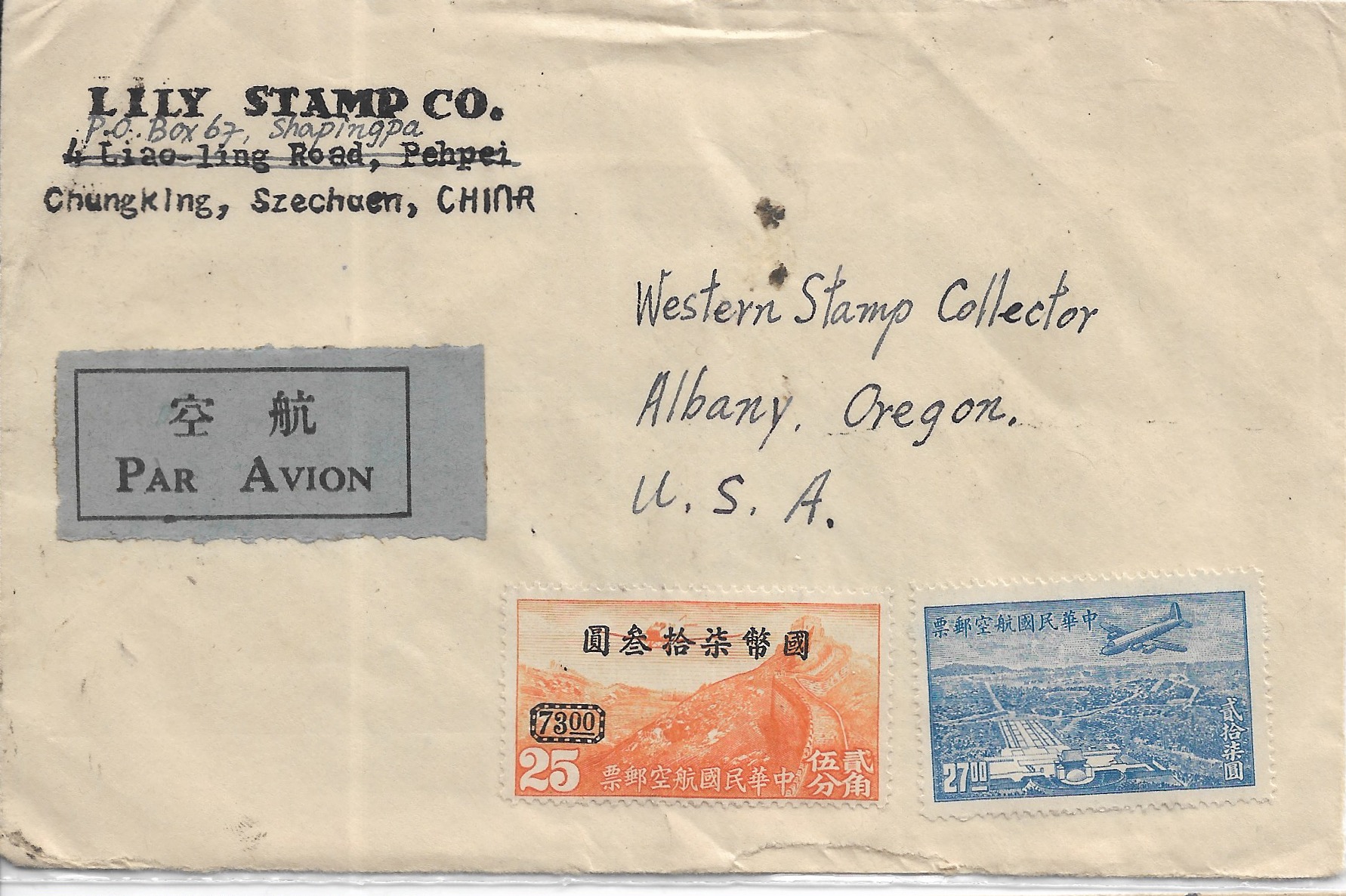 193x Chungking, China to Albany, Or Airmail. Added Sunday, November 16, 2025