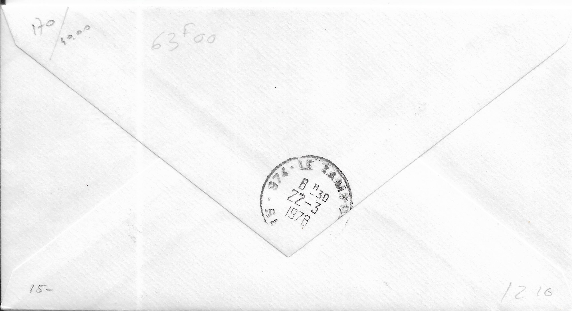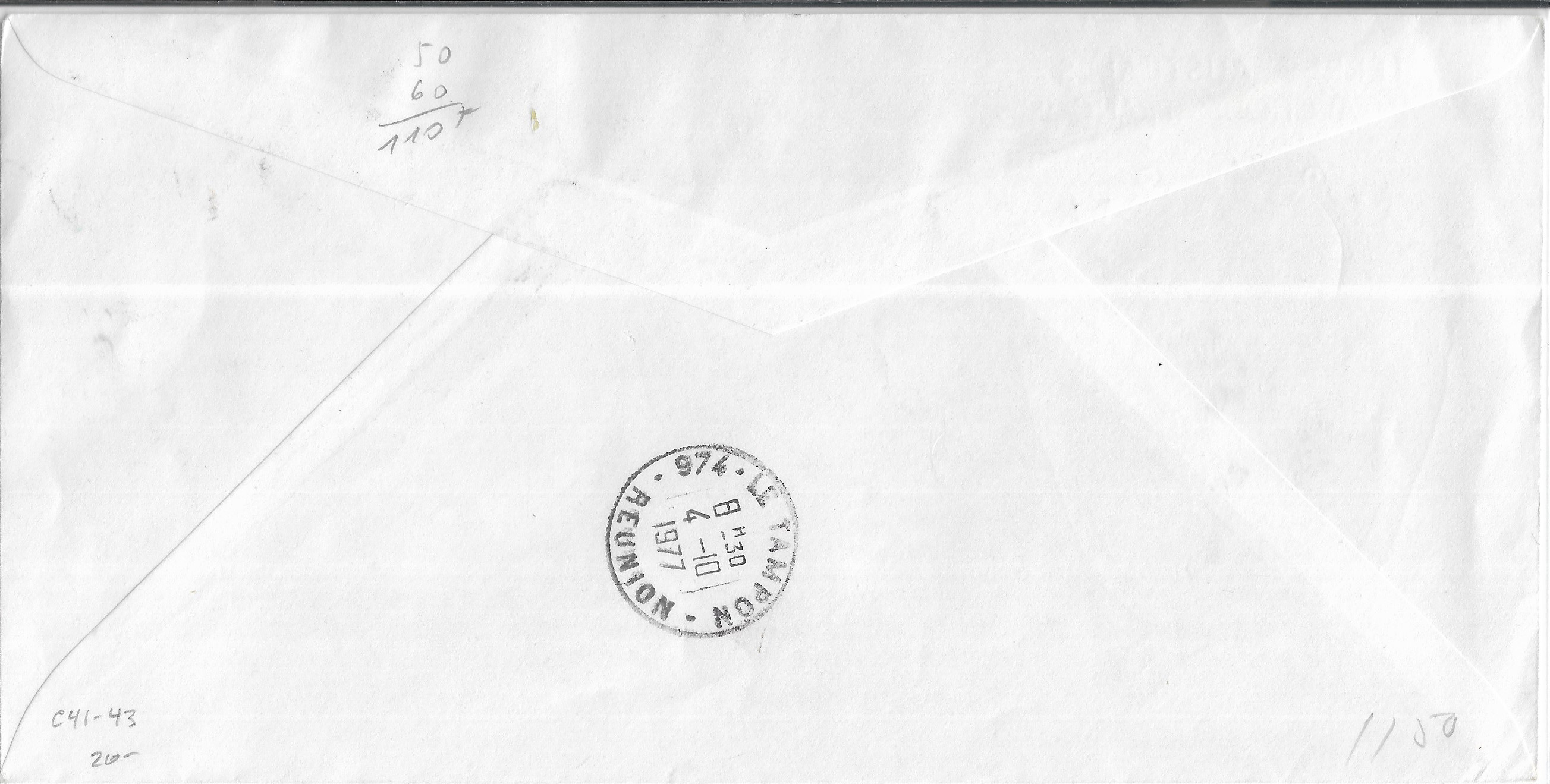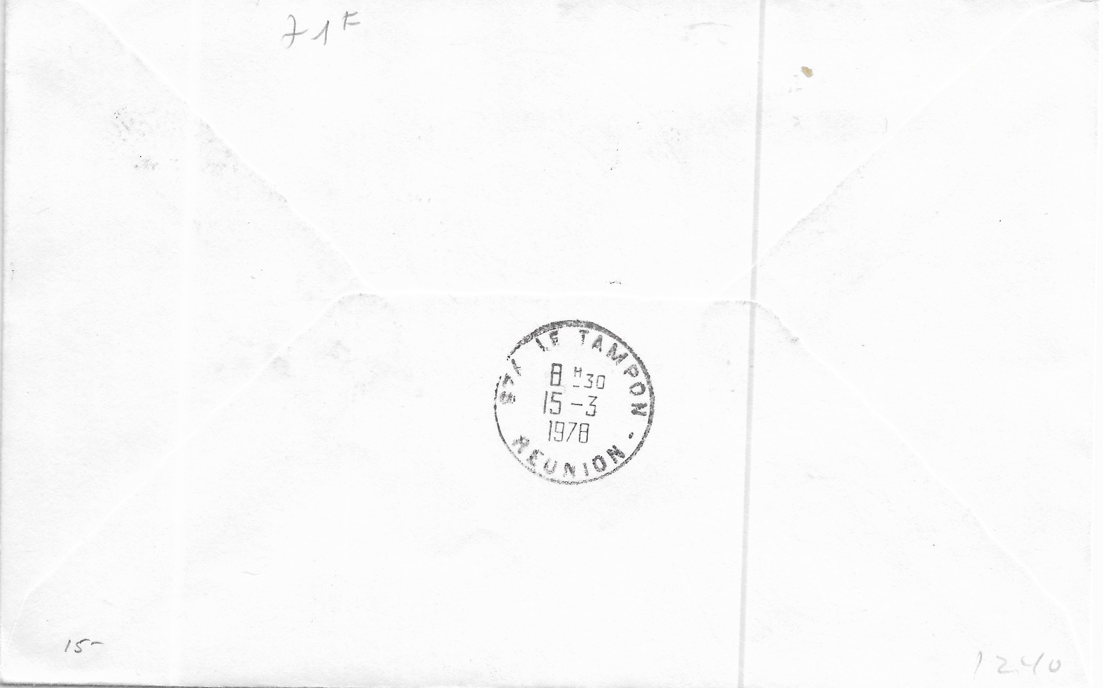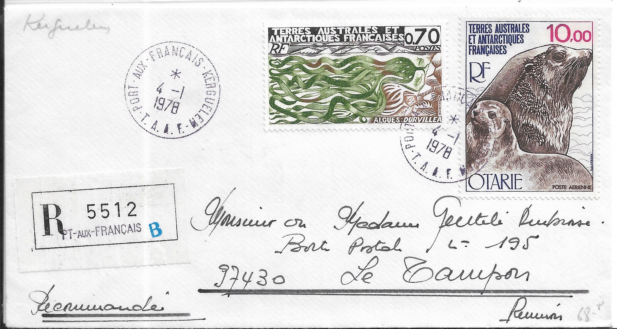 1978 Port-aux-Francis, Kerguelen, French Southern and Antarctic Territory to Reunion Registered. back stamped Reunion. Added Saturday, November 8, 2025