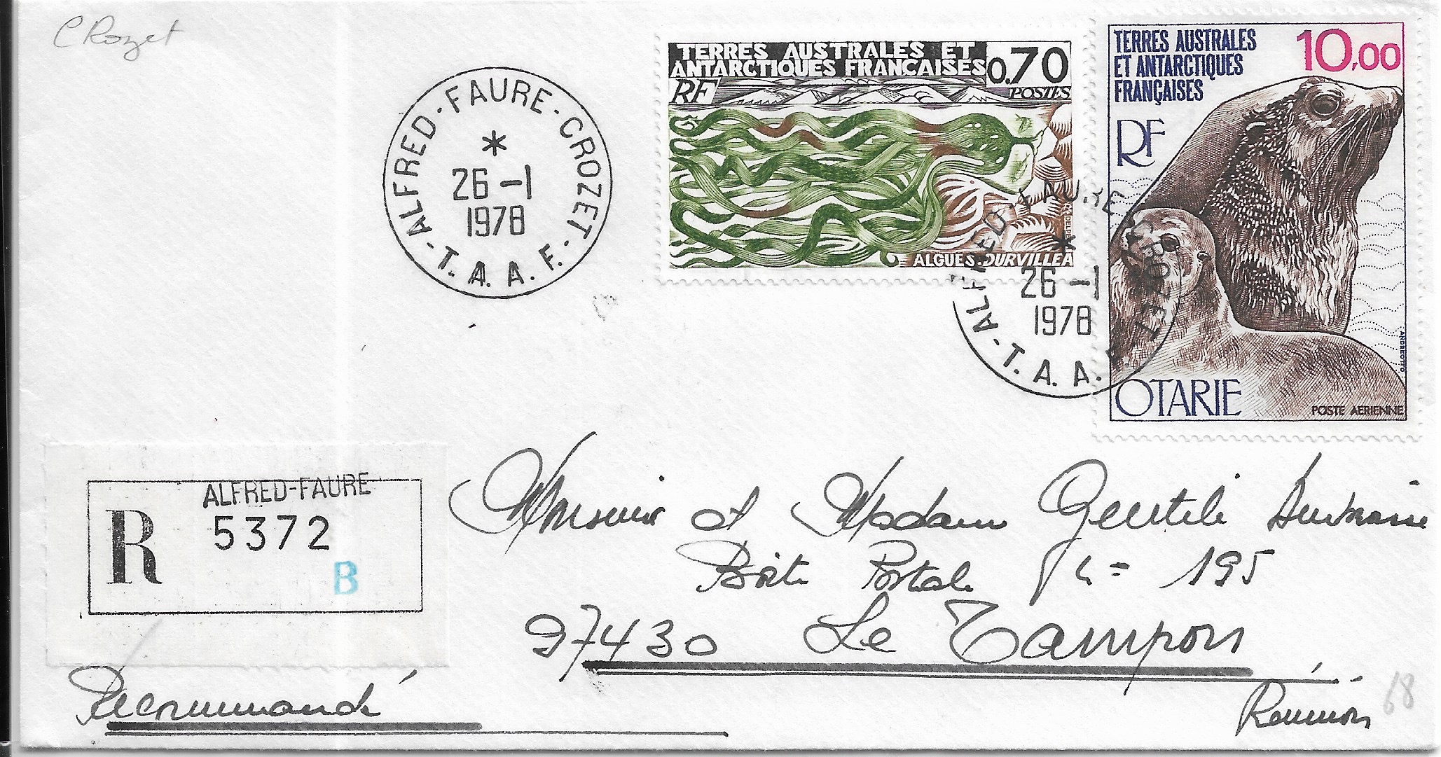 1978 Alfred-Faure, Crozet, French Sounthern and Antarctic Territory to Reunion Registered. Added Saturday, November 8, 2025