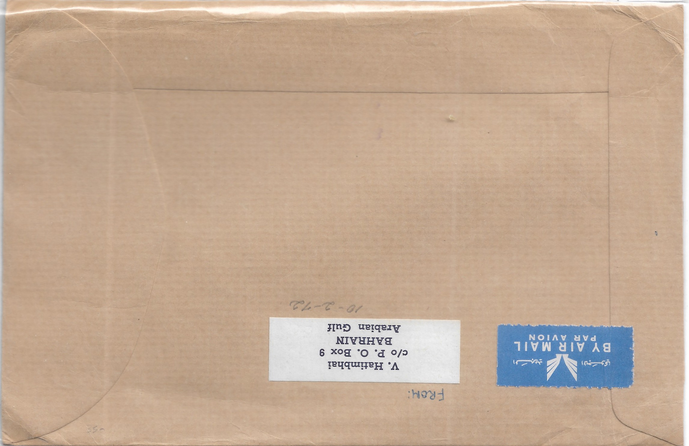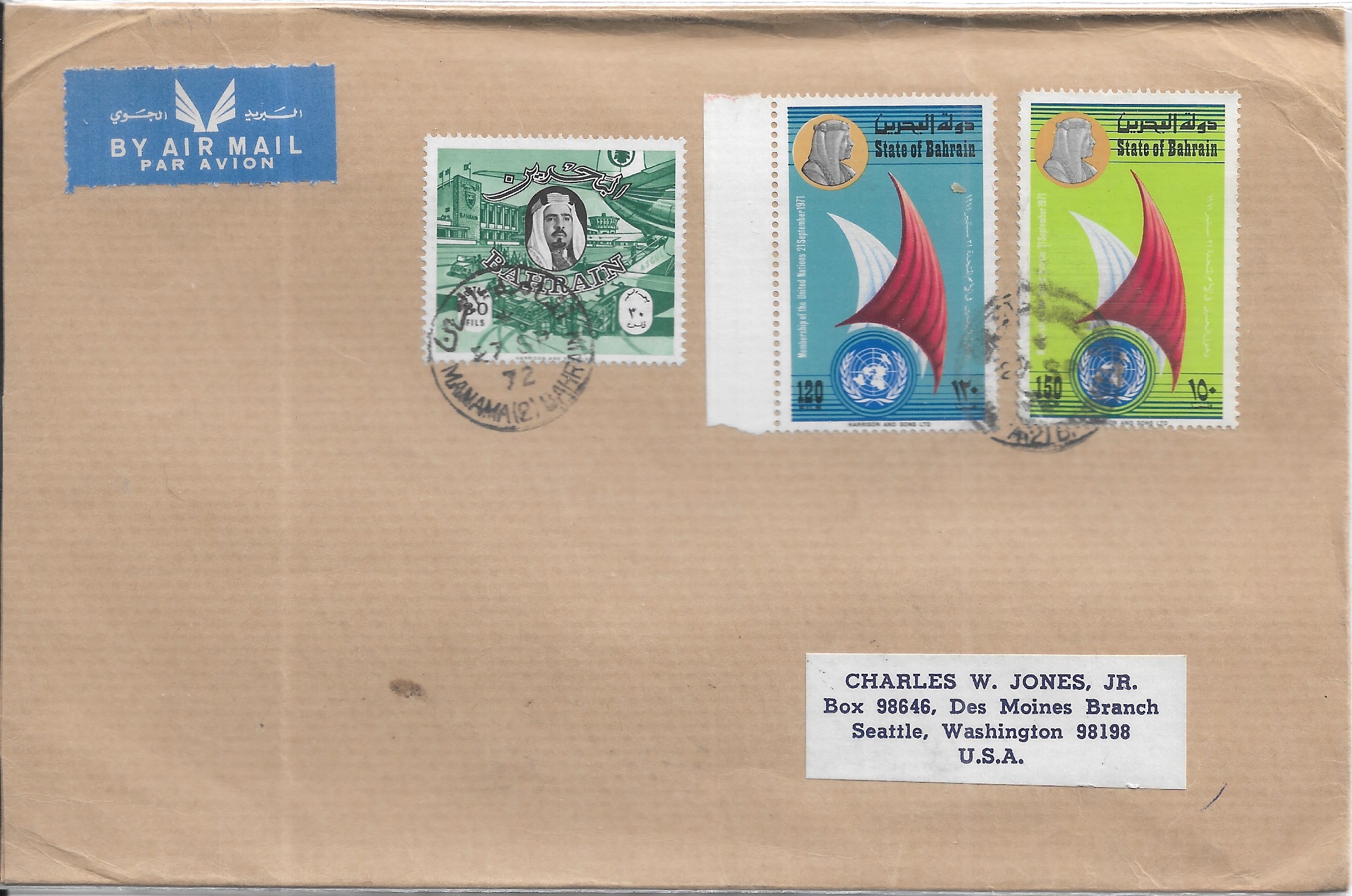 1972 Manama, Bahrain to Seattle, Wa Airmail. Added Sunday, November 9, 2025