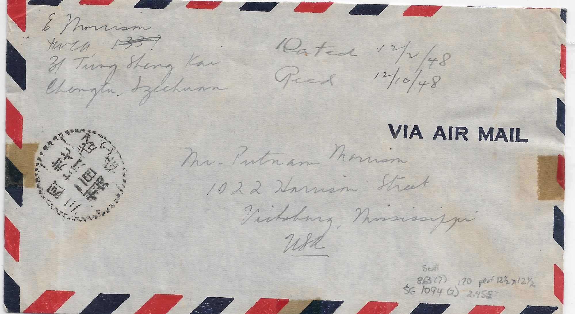 1948 Chengtn, China to Vicksburg, Ms AIrmail. Added Sunday, November 16, 2025