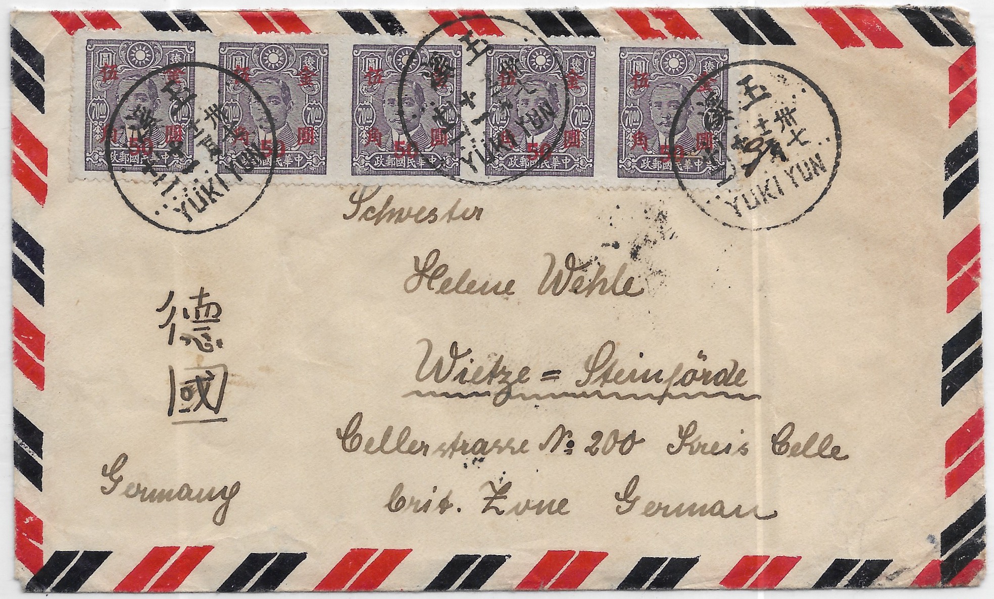 194x, Yuki Yun, China to Weitz, Germany Airmail. back stamped Kunming. Added Sunday, November 16, 2025