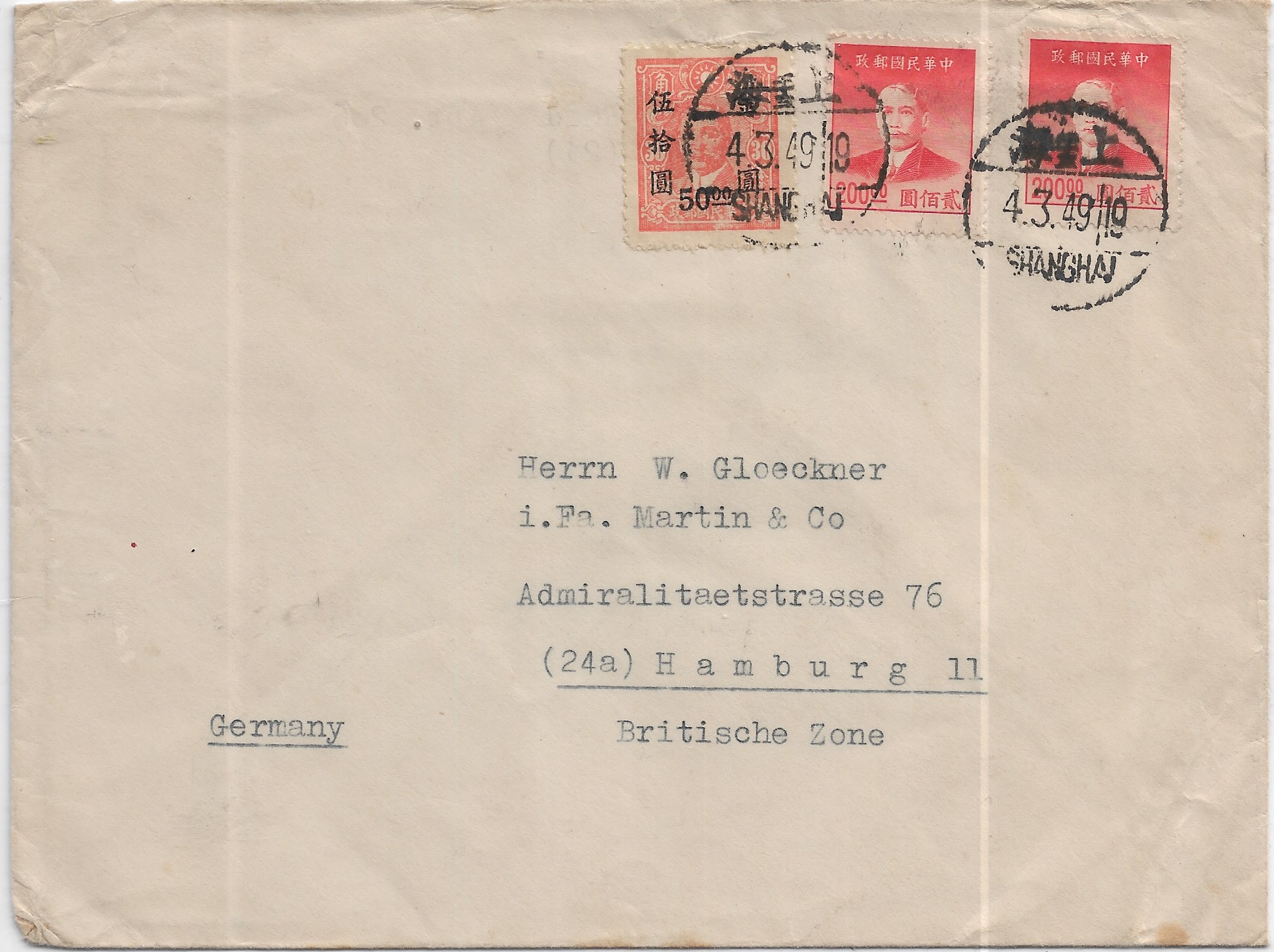 1949 Shanghai, China to Hamburg, Germany Airmail. Added Monday, November 10, 2025