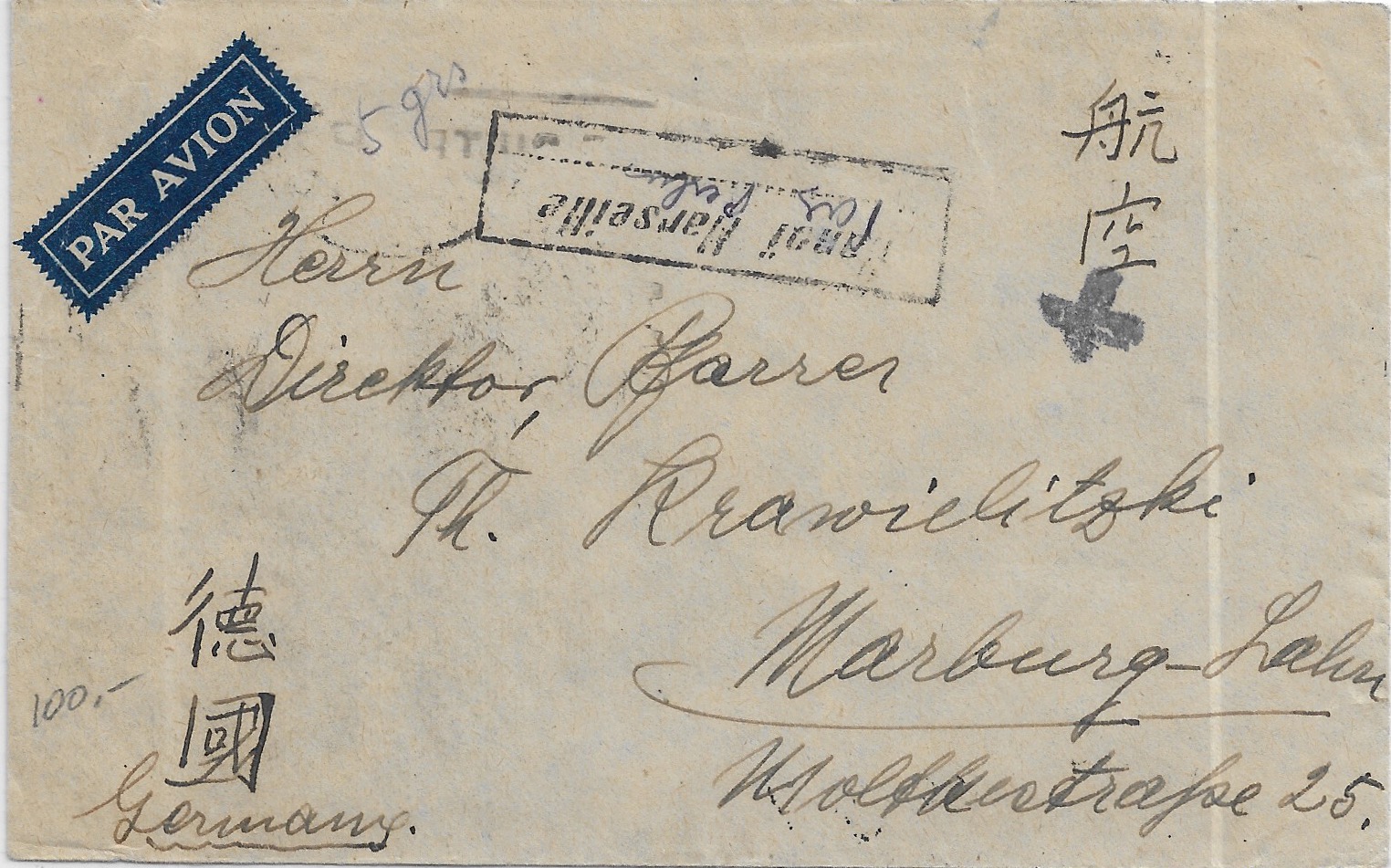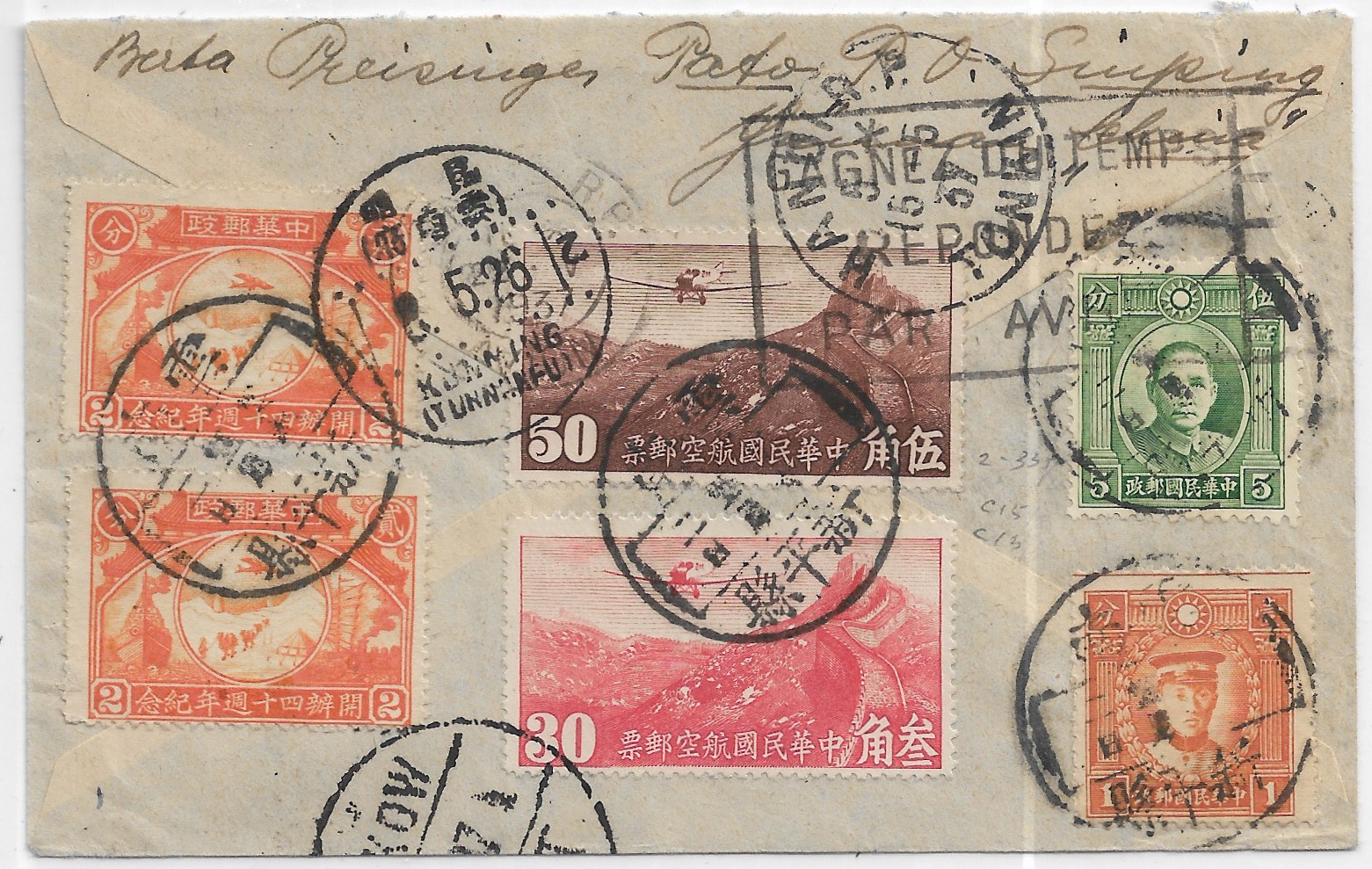 1925 Kunming, China to Marburg, Germany Airmail. Added Monday, November 10, 2025