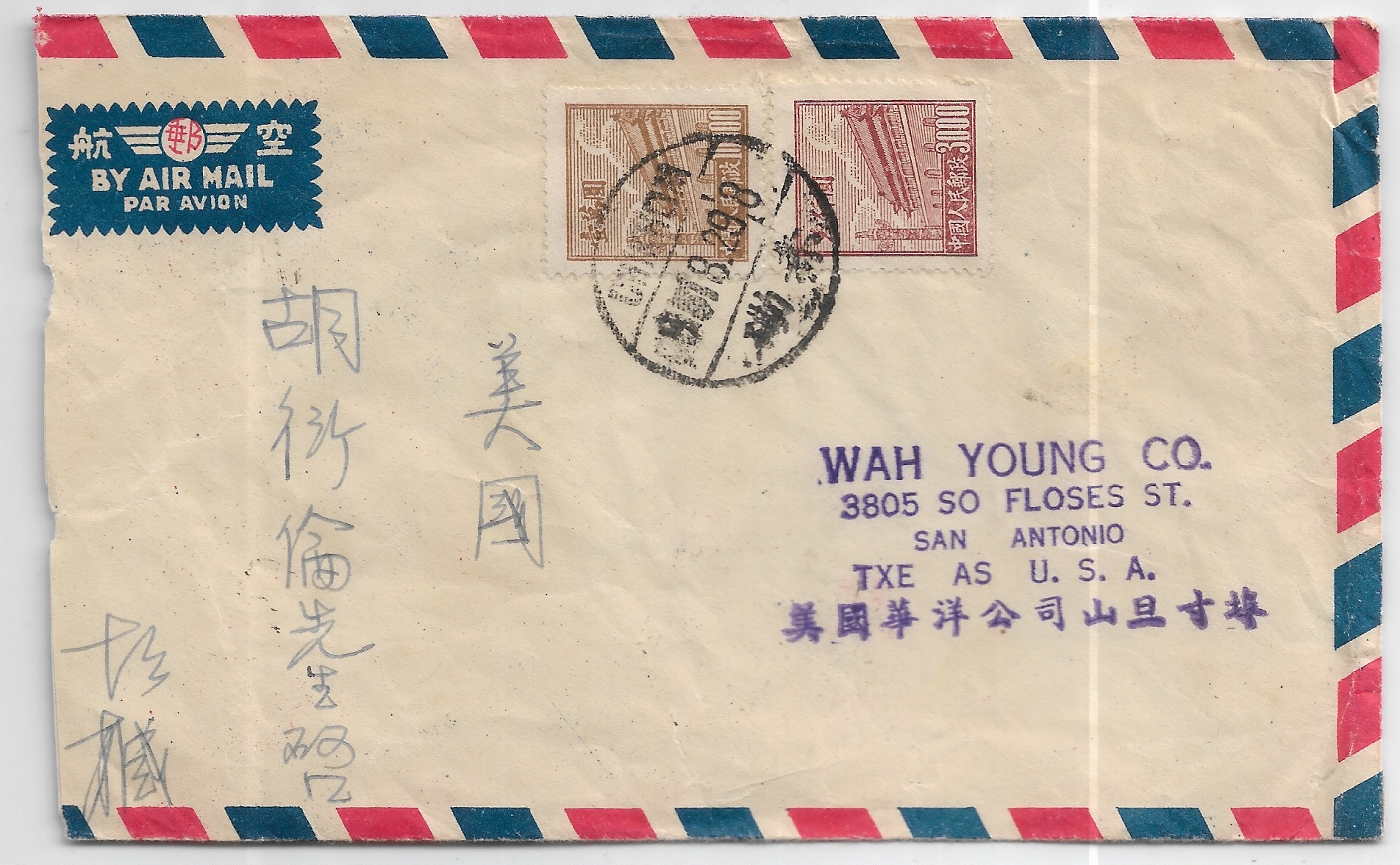 1951 Canton, China to San Antonio, TX Airmail. Added Monday, November 10, 2025
