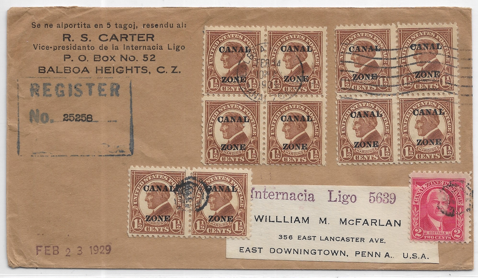 1929 Balboa Height, Canal Zone to Downingtown, Pa Registered. back stamped Balboa Heights, New Orleans, & Downingtown. Added Sunday, November 16, 2025