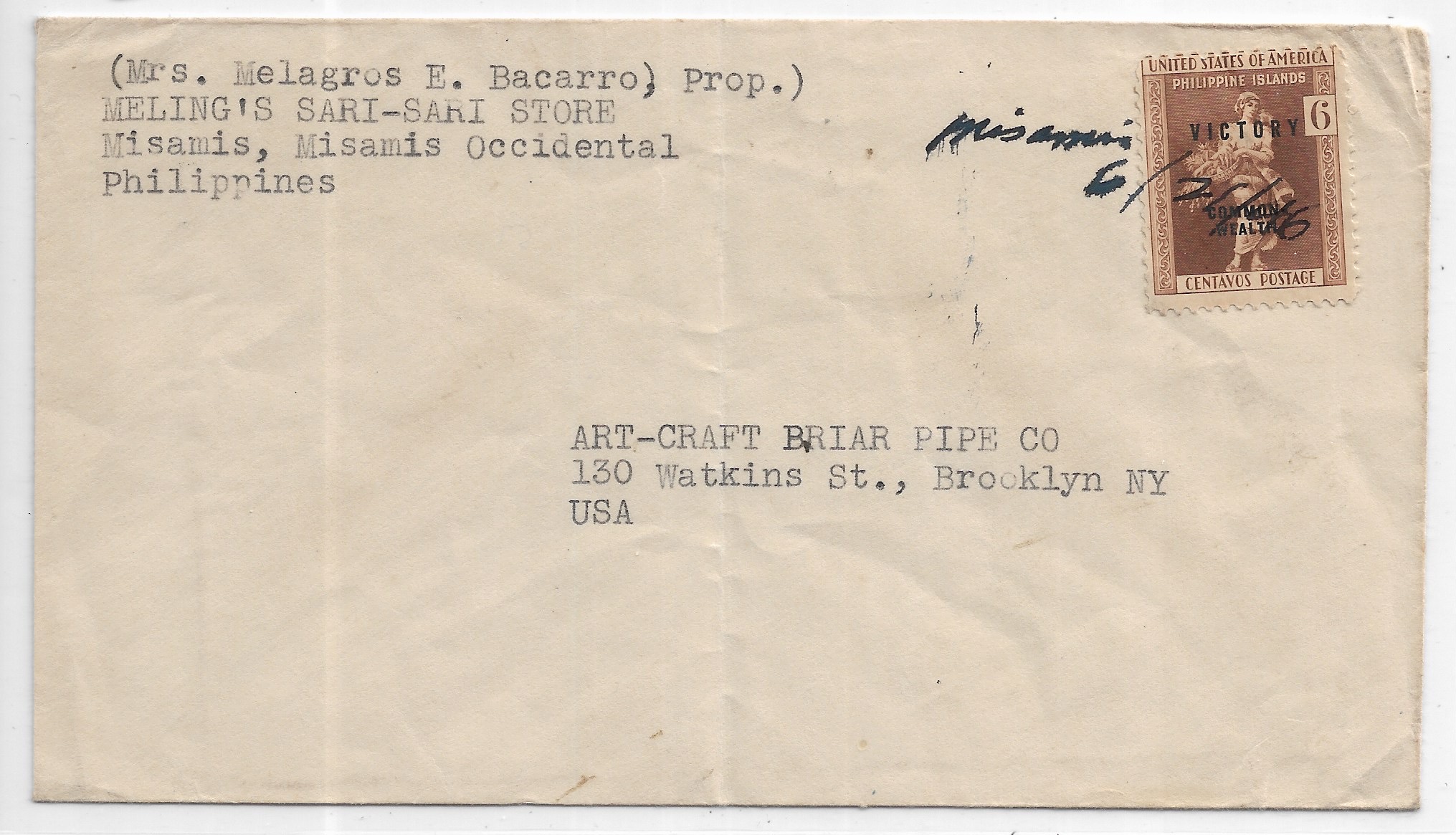 1946 Misamis, Philippines to Brooklyn, NY Manuscript canx. Scarce post-war usage. Added Sunday, November 16, 2025