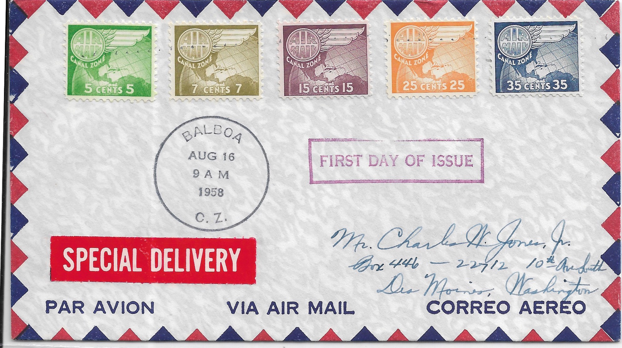1958 Balboa, Canal Zone to Des Moines, Wa Airmail Special Delivery FDC. Added Sunday, November 16, 2025