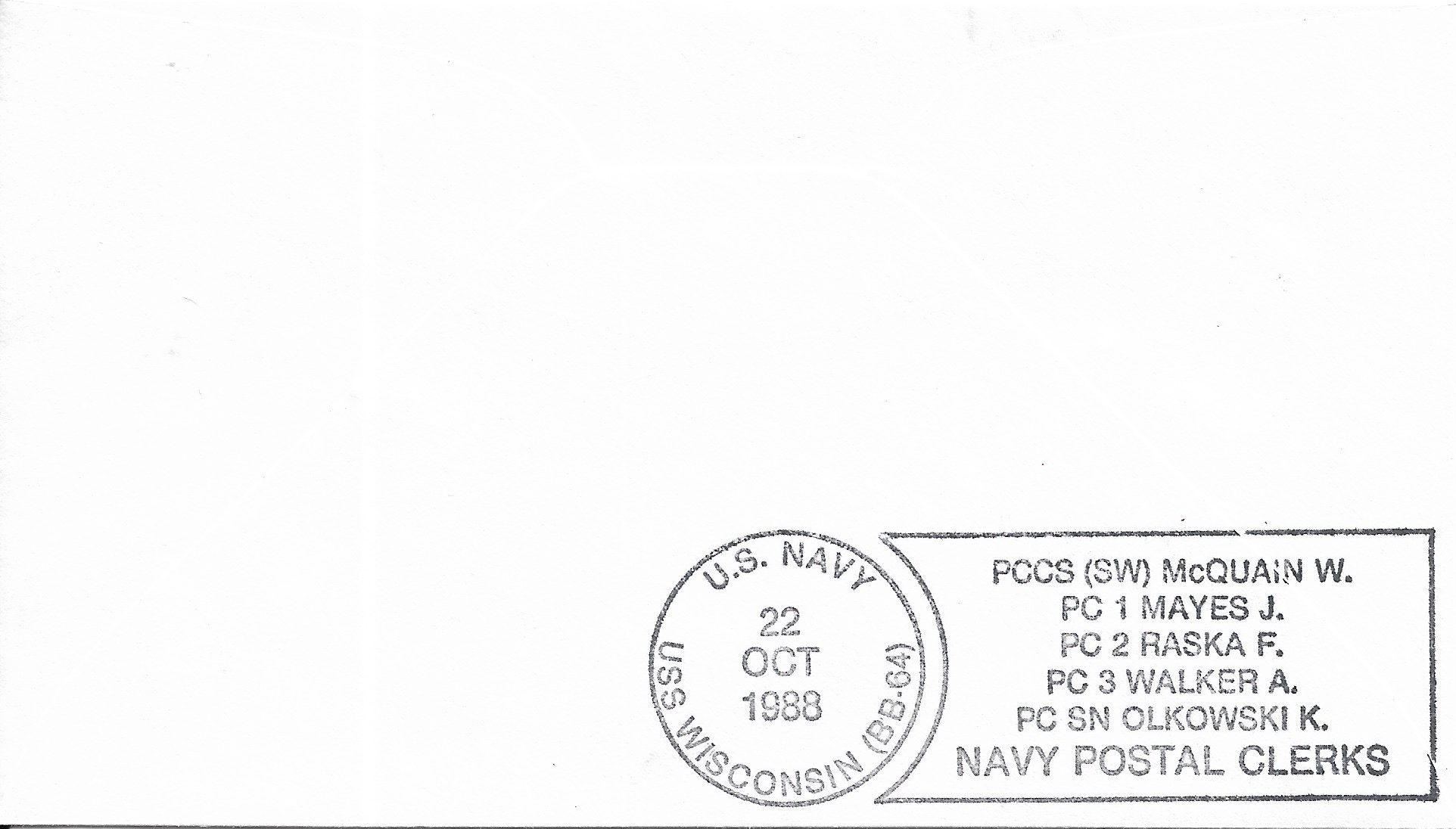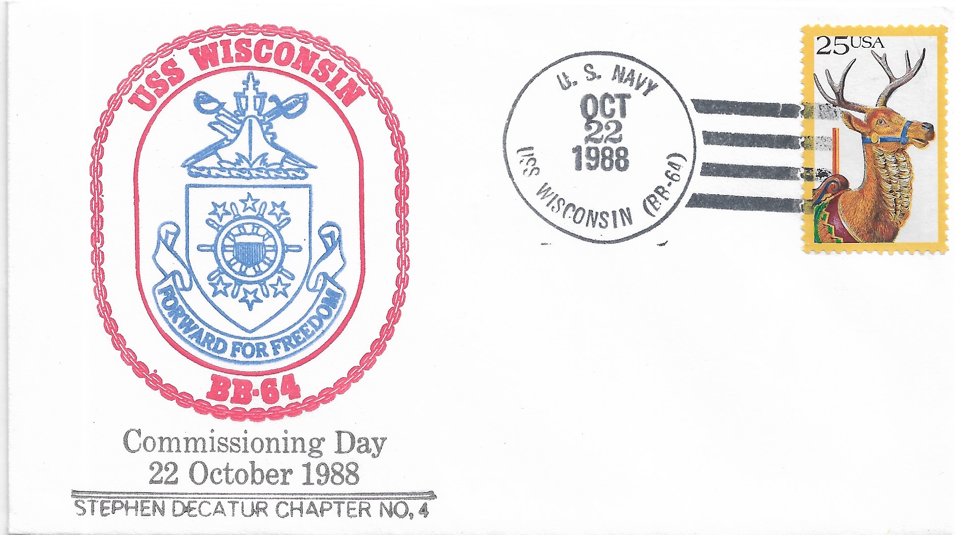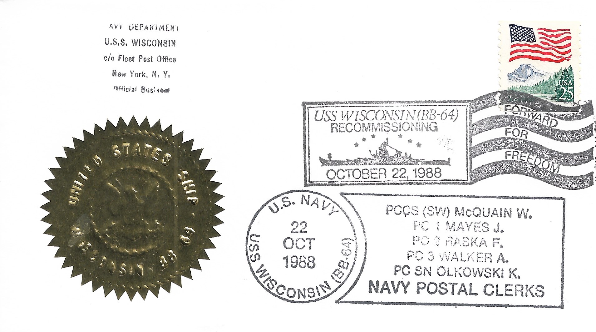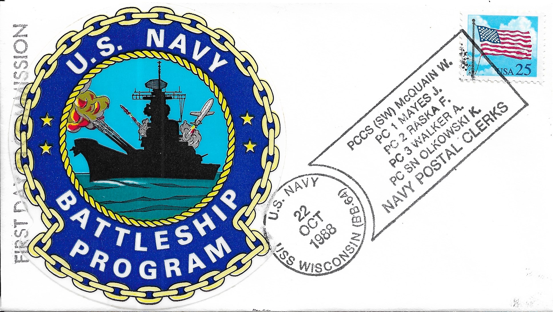 1988 USS Wisconsin BB-64, Recommissioned Hand Colored cachet. Added Sunday, October 12, 2025
