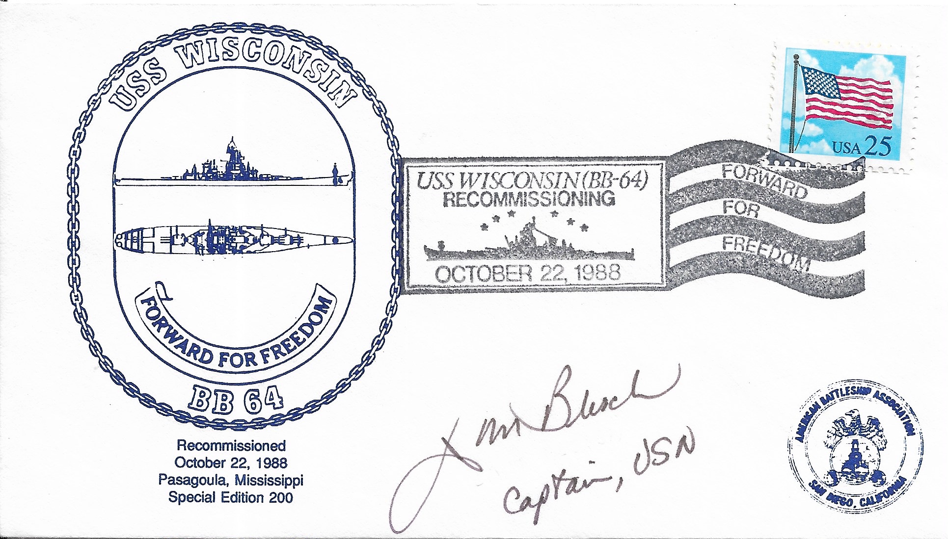 1988 USS Wisconsin BB-64, Recommissioning signed by C.O. Added Sunday, October 12, 2025
