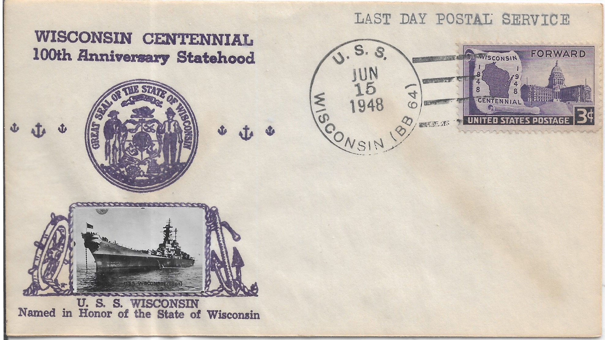 1948 USS Wisconsin BB-64, Last Day Postal Service. Added Sunday, October 12, 2025
