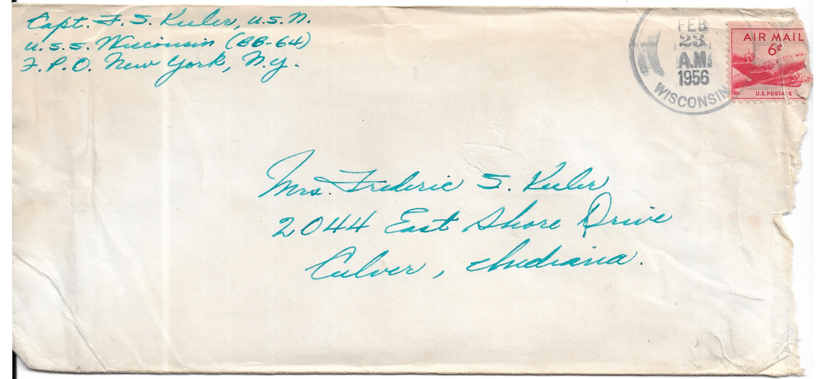 1956 USS Wisconsin BB-64 Culver, IN airmail. Added Sunday, October 12, 2025