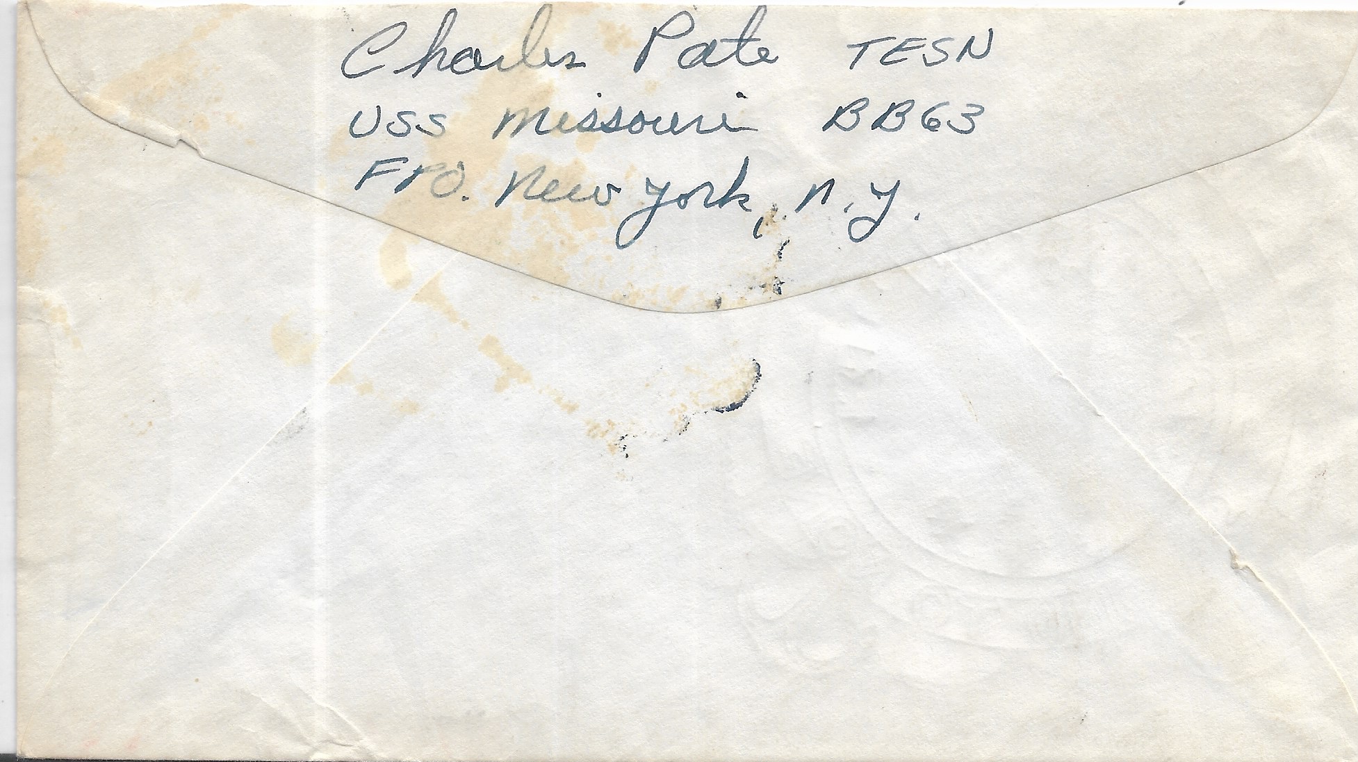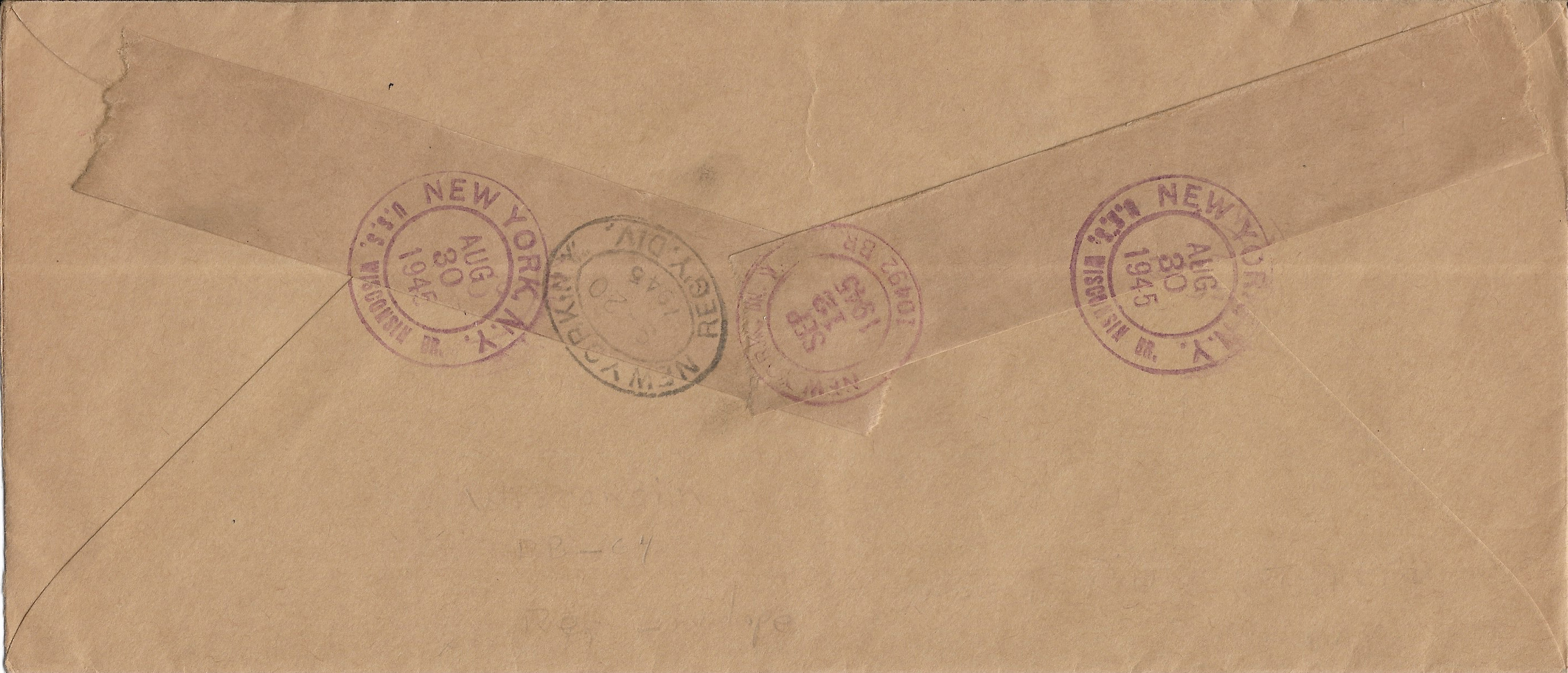 1945 USS Wisconsin BB-64 to New York, NY Registered. back stamped USS Wisconsin & New York. Added Sunday, October 12, 2025